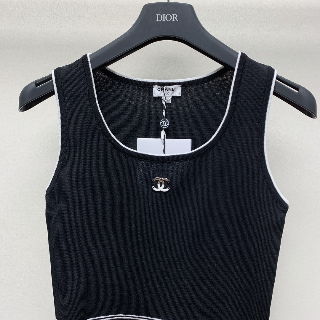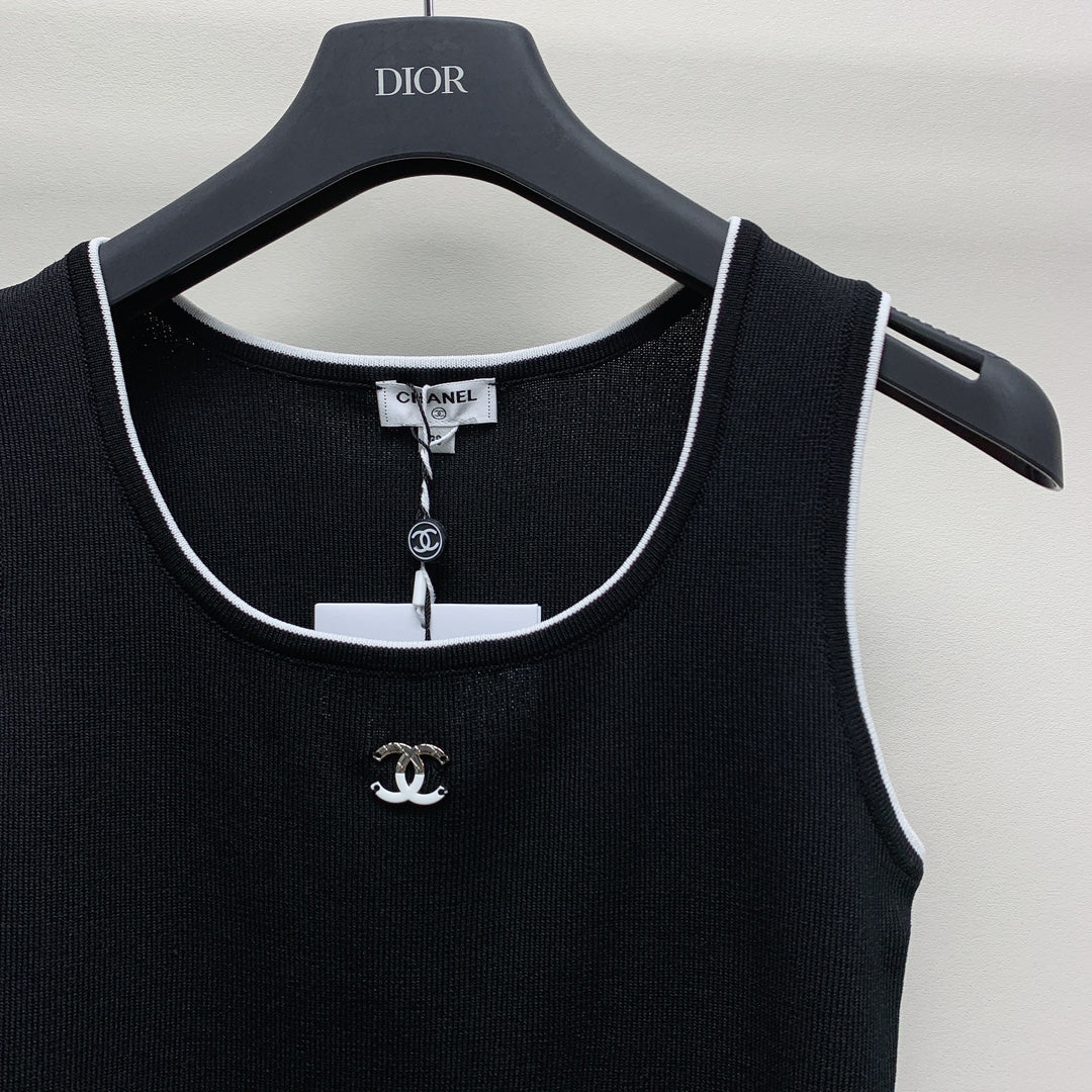 CC 25 Round Neck Knitted Embroidered Logo Vest in Black 277577