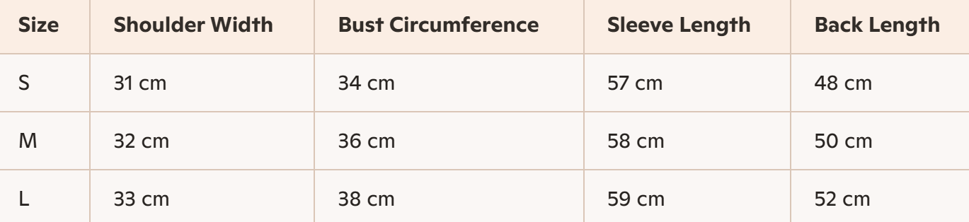 - Size : S, M,L