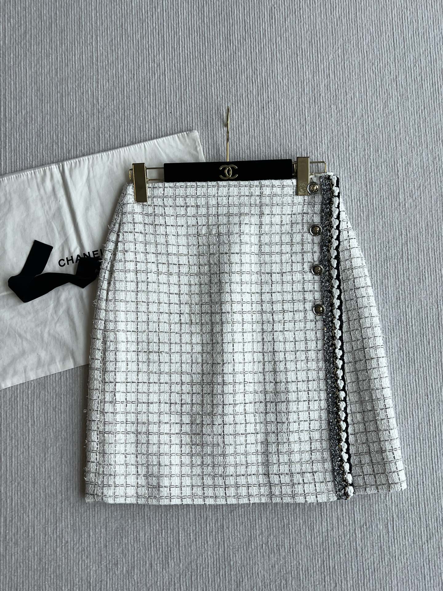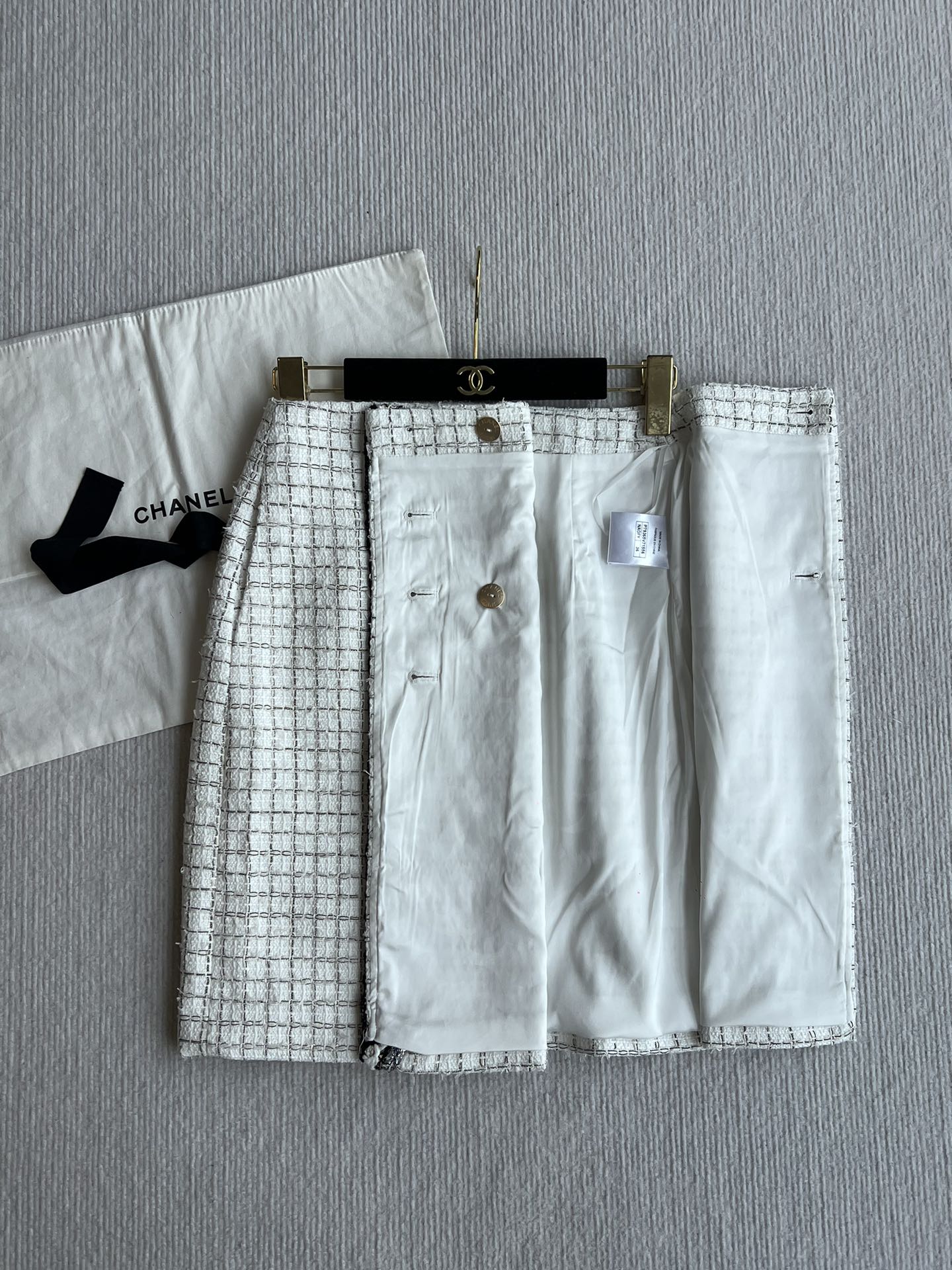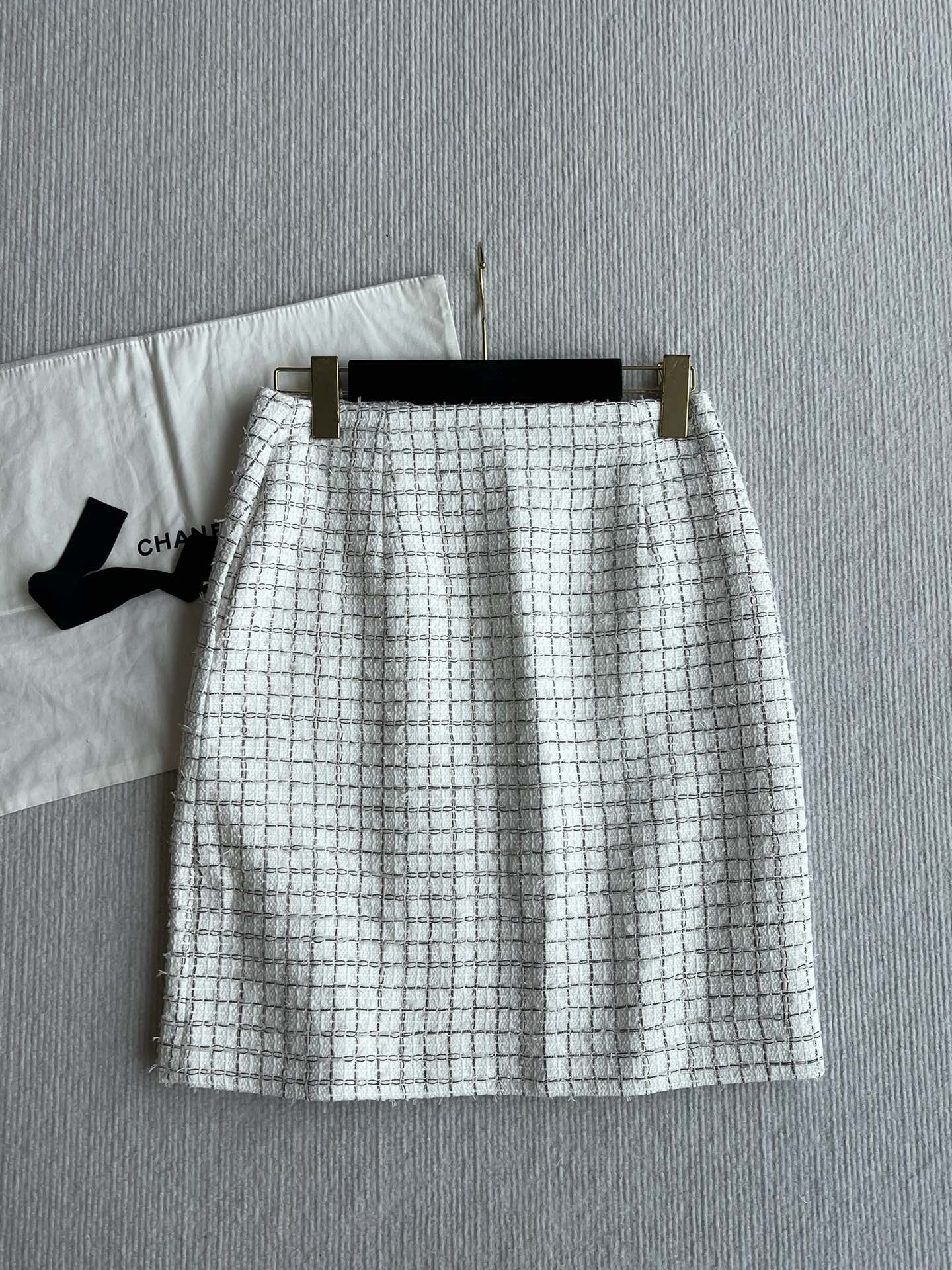 CC 25 Tweed Plaid Skirt White Cotton Polyester 244374