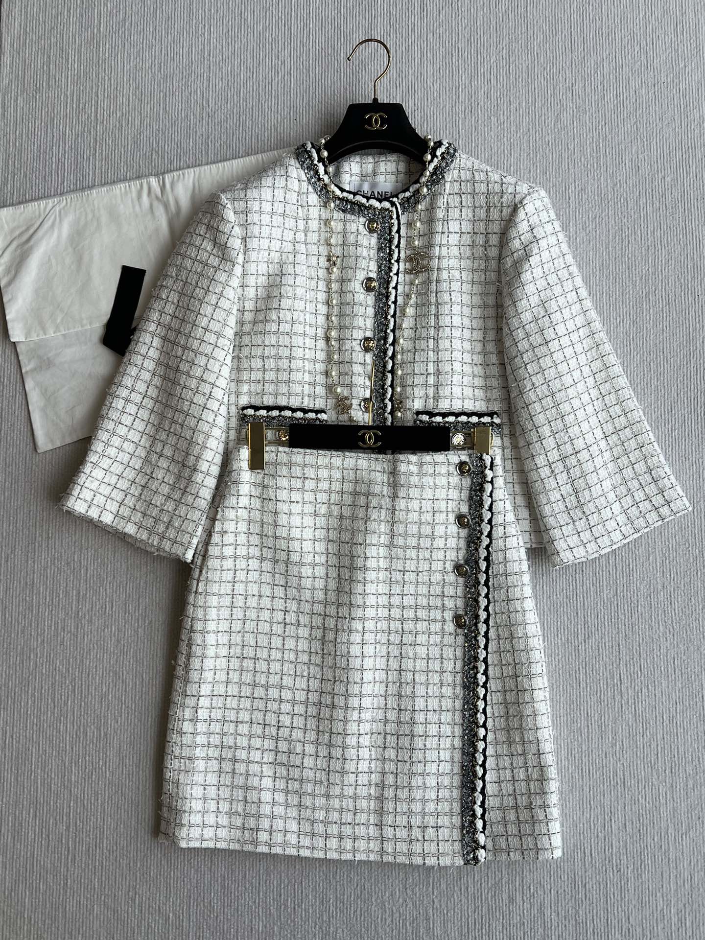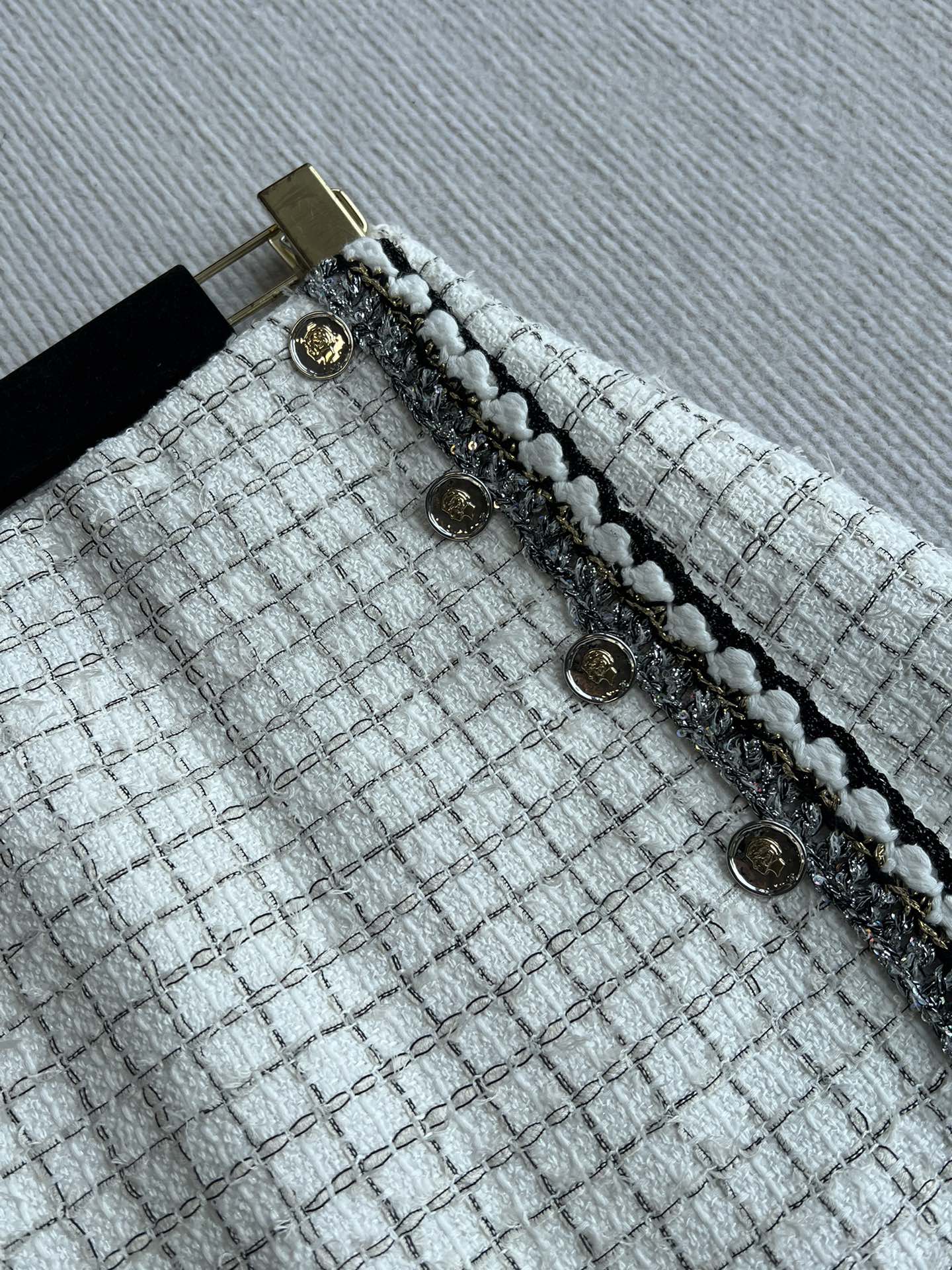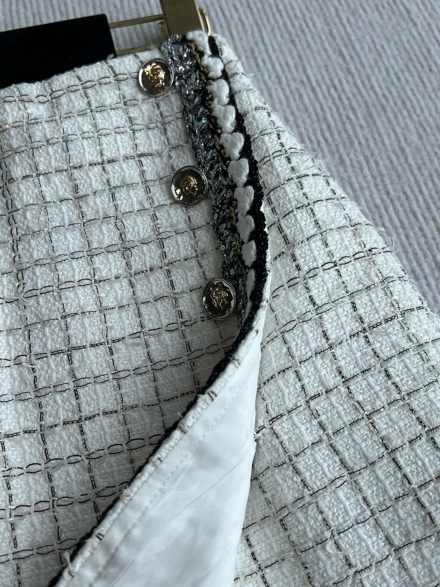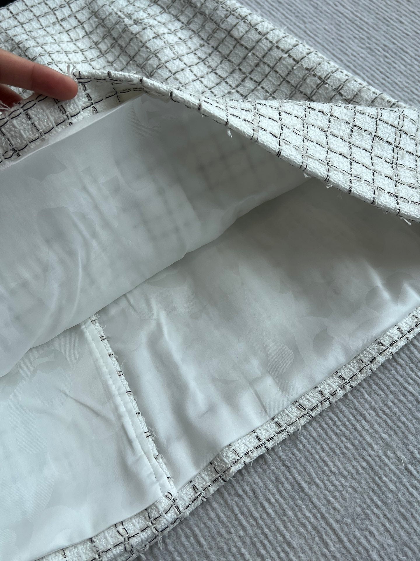 CC 25 Tweed Plaid Skirt White Cotton Polyester 244374