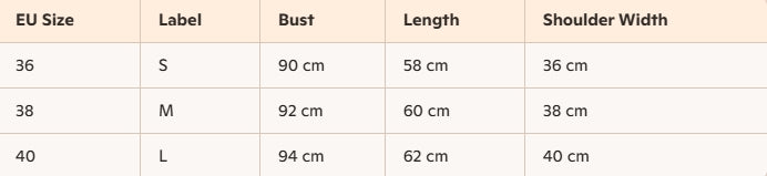 - For more information, please see the size guide below
