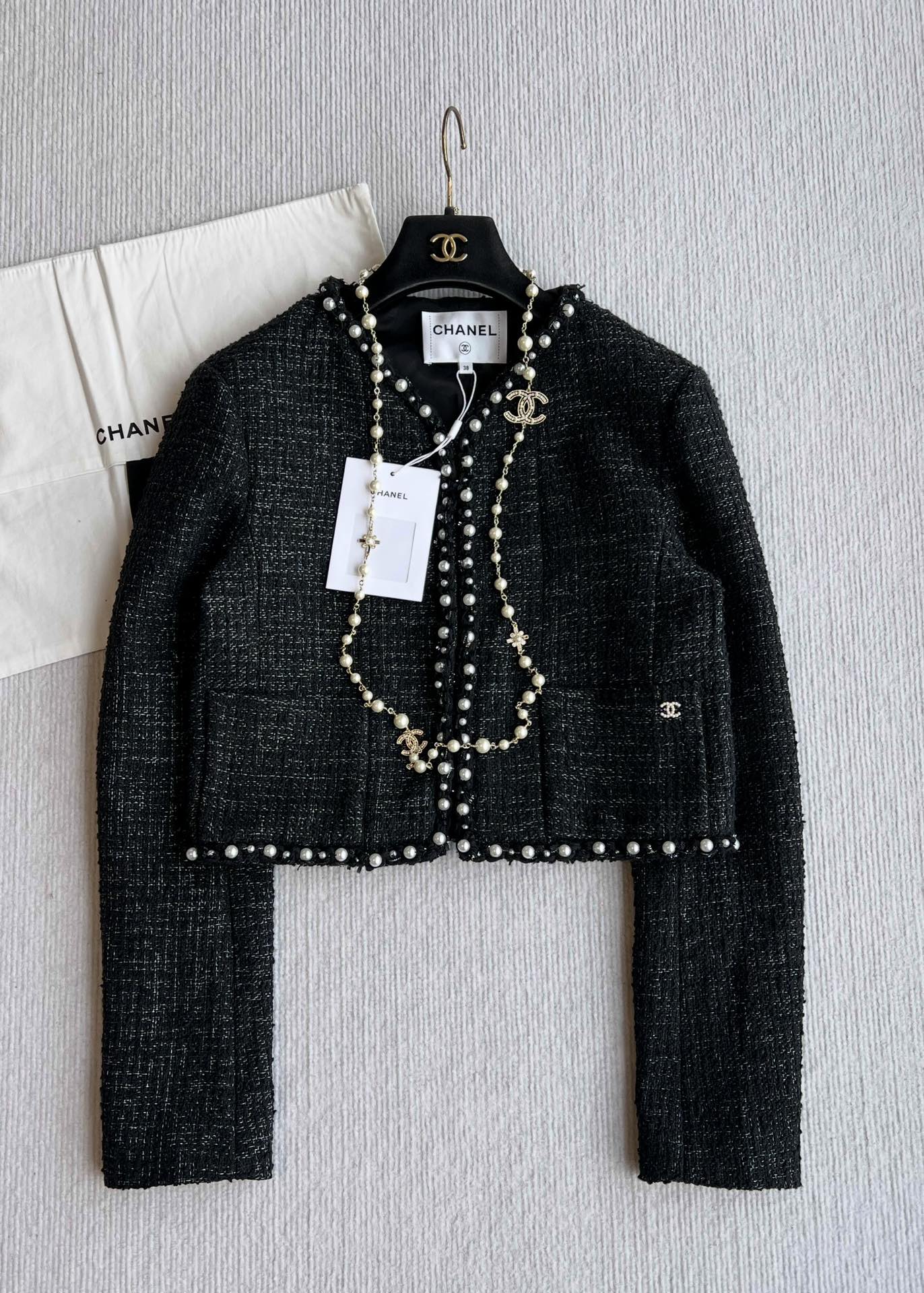CC 25 Tweed Short Jacket Black Viscose Cotton 235912