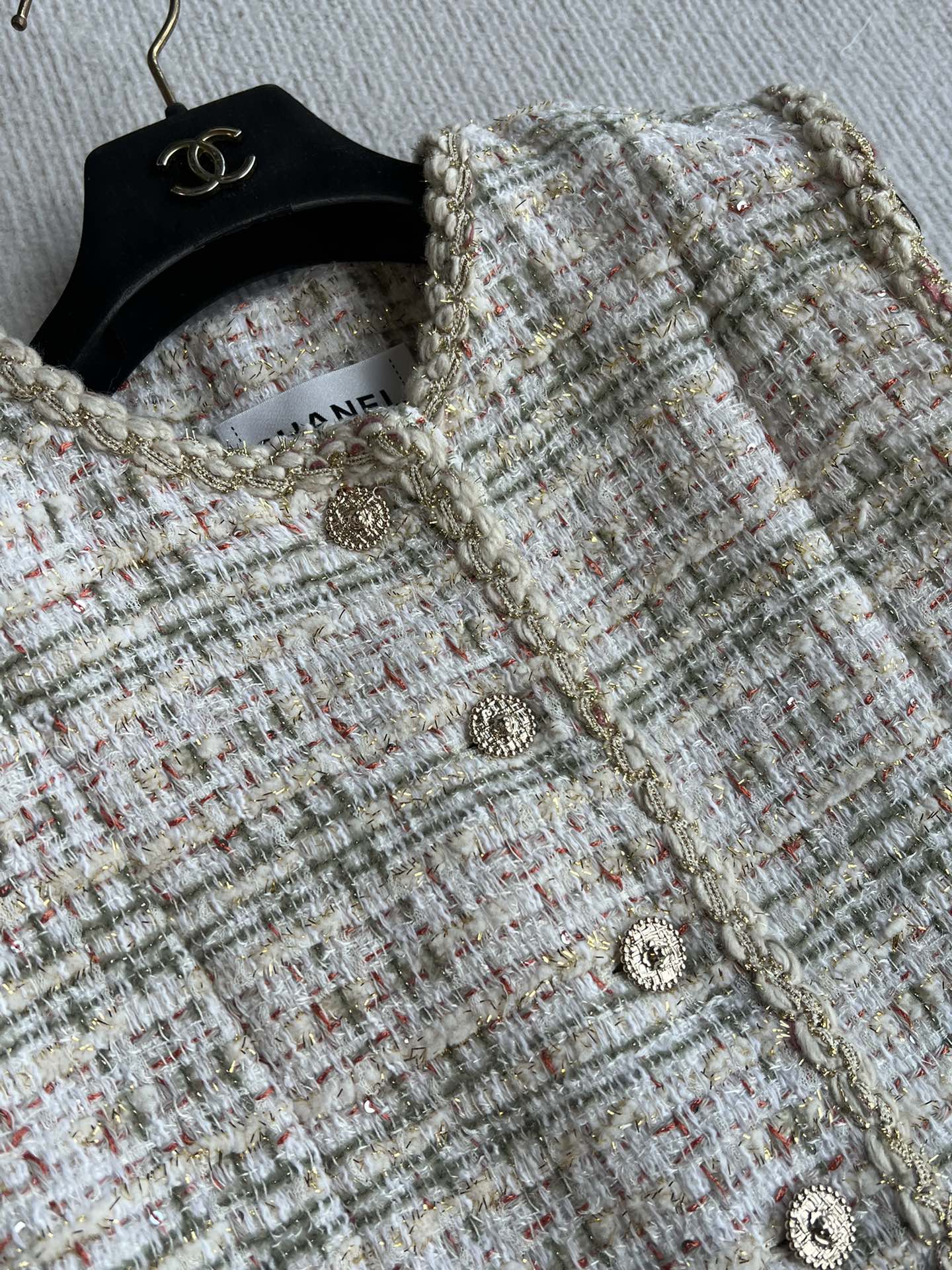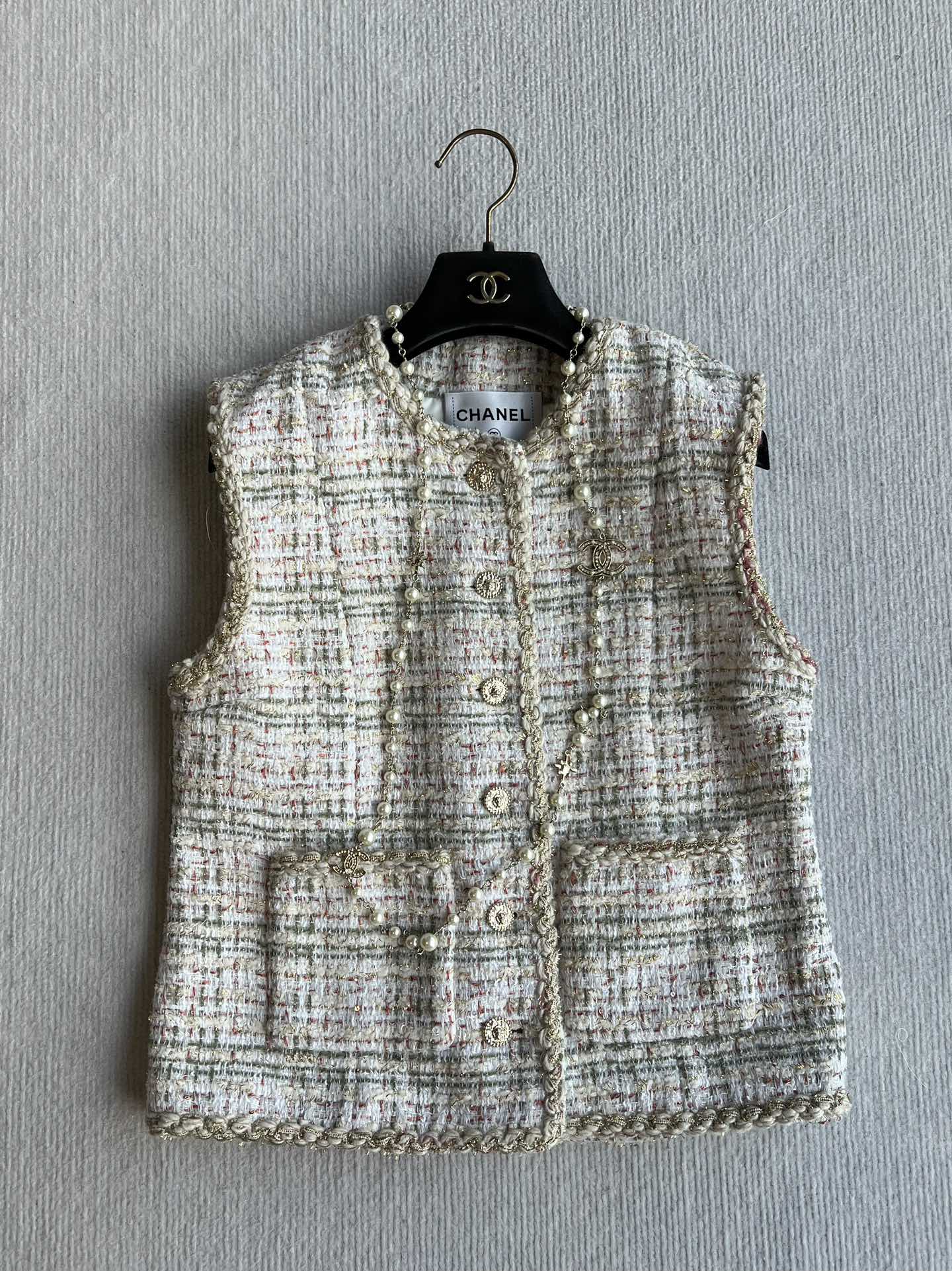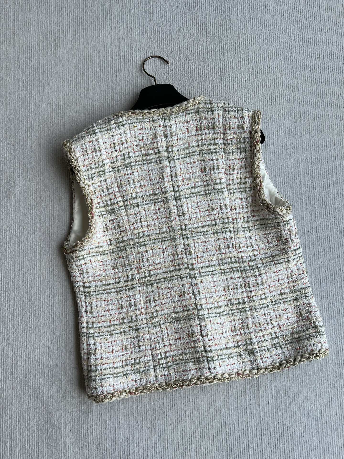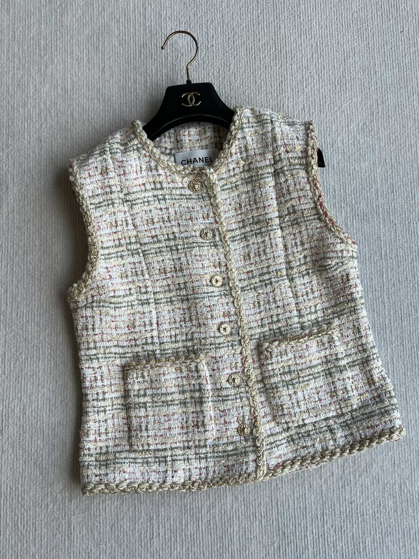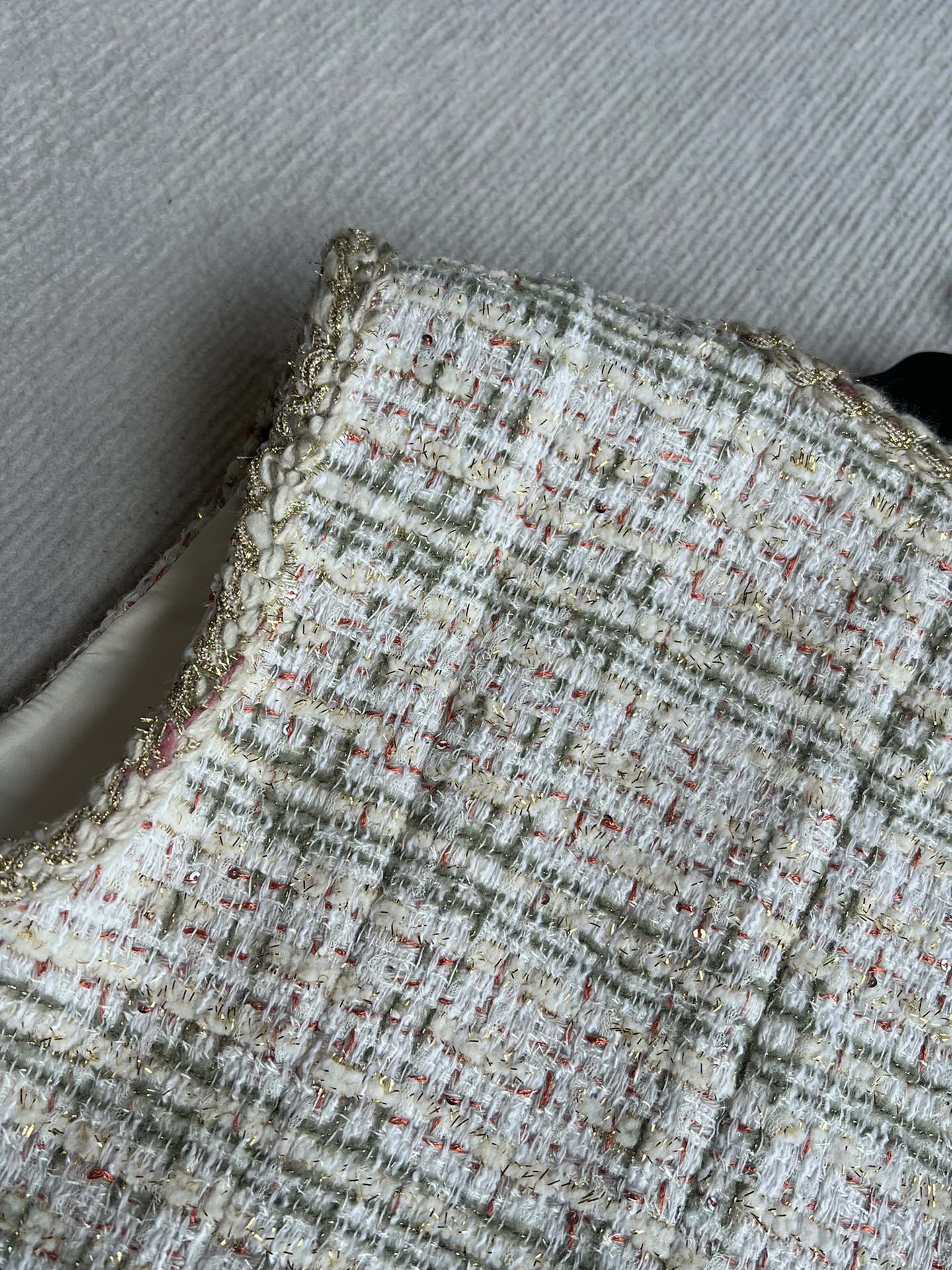 CC 25A Classic Round Collar Vest Jacket In Light Orange Pink Tweed 277181