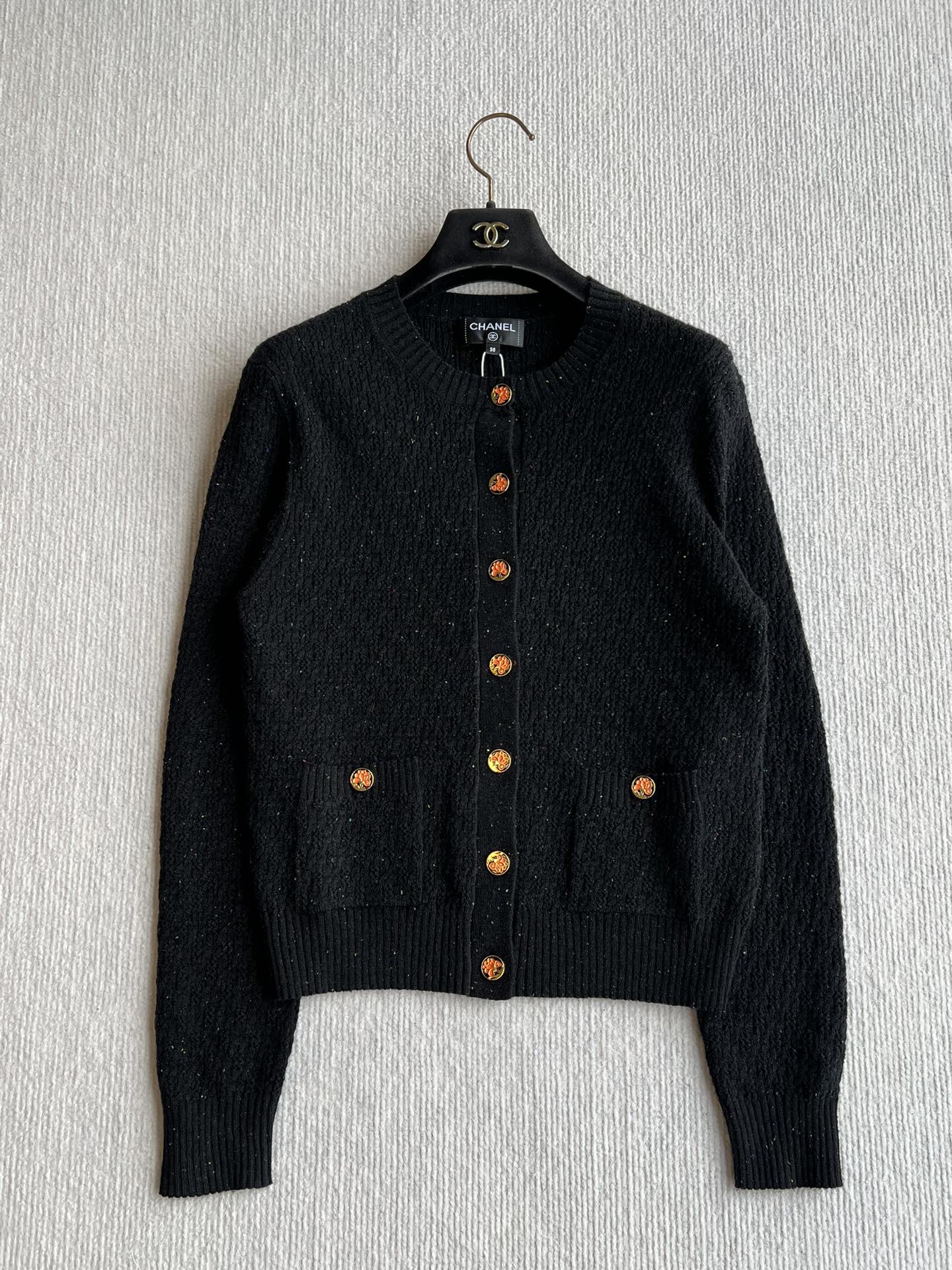 CC 25A Classic Round Neck Floral Wool Cardigan In Black 275516