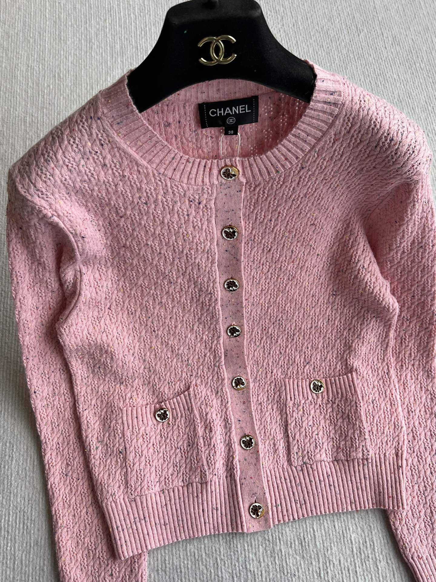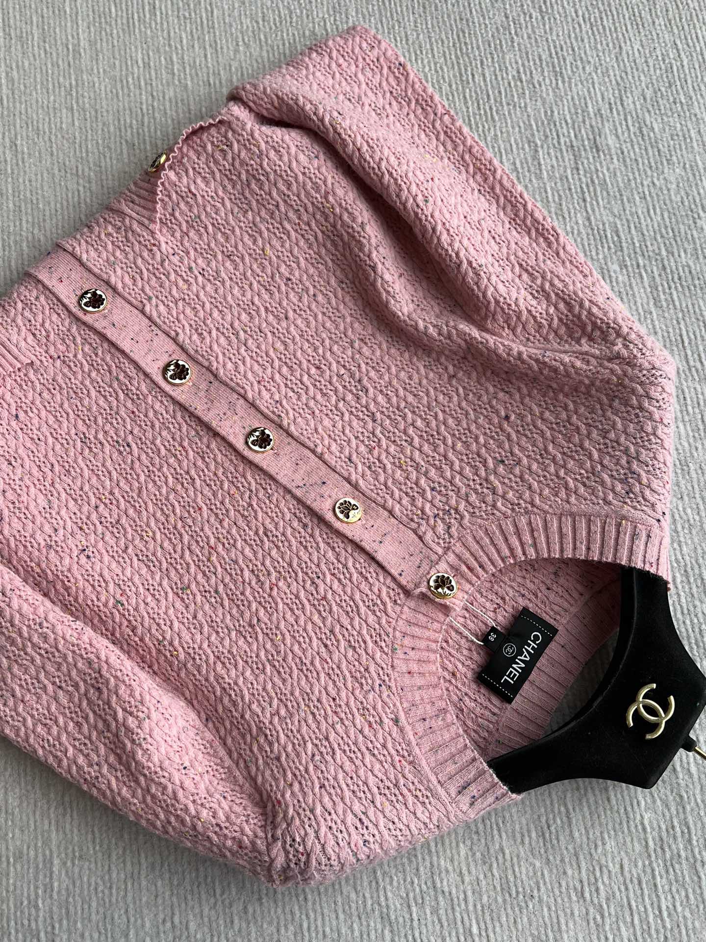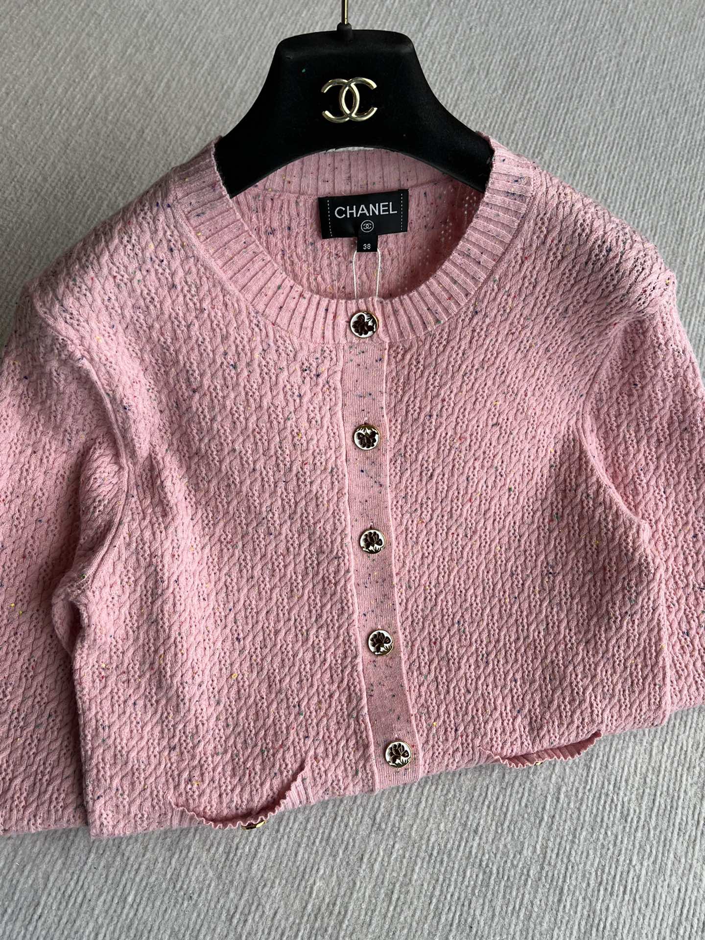 CC 25A Classic Round Neck Floral Wool Cardigan In Pink 275515