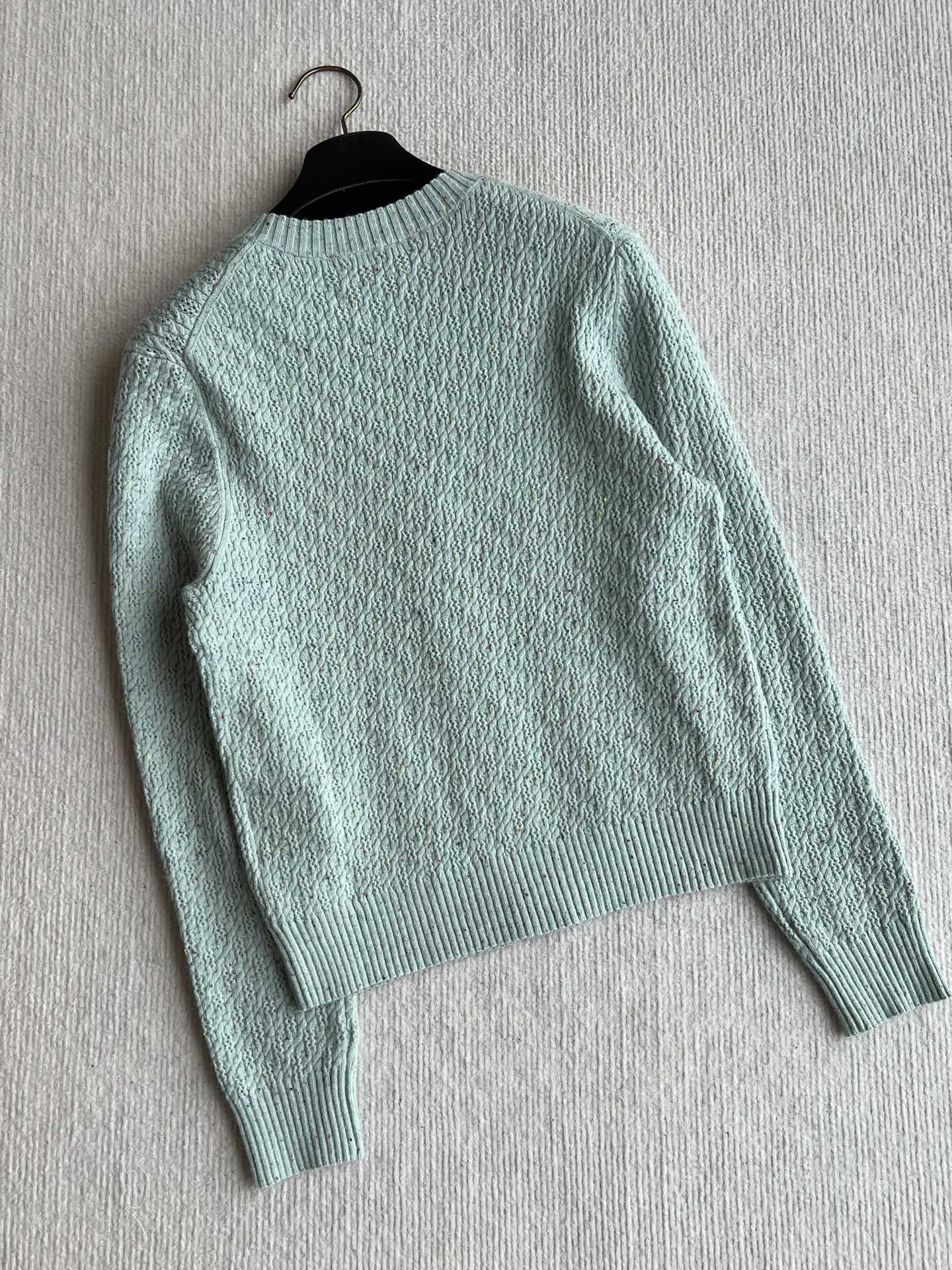 CC 25A Classic Round Neck Floral Wool Cardigan In Turquoise 275514