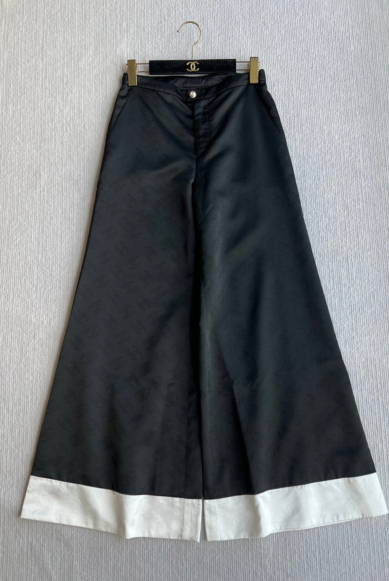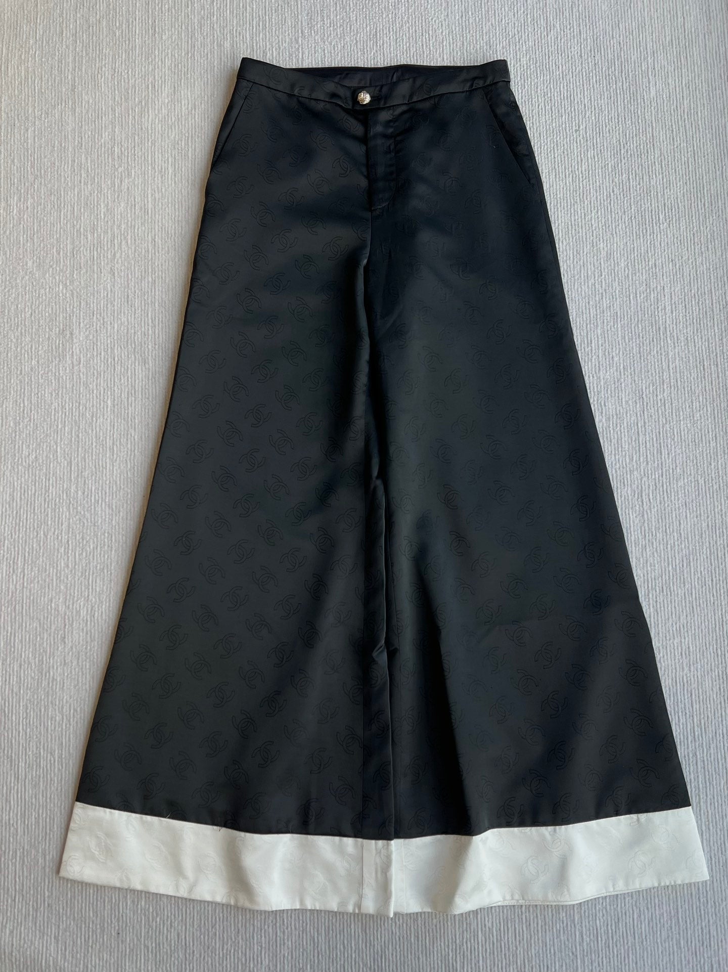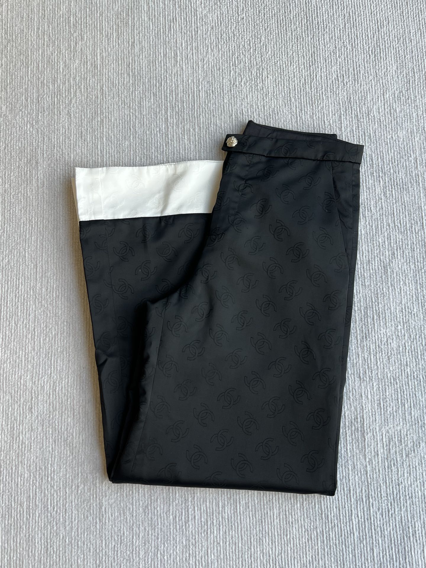 CC 25SS Double C Plaid Wide-Leg Pants In Black and White Silk 277145