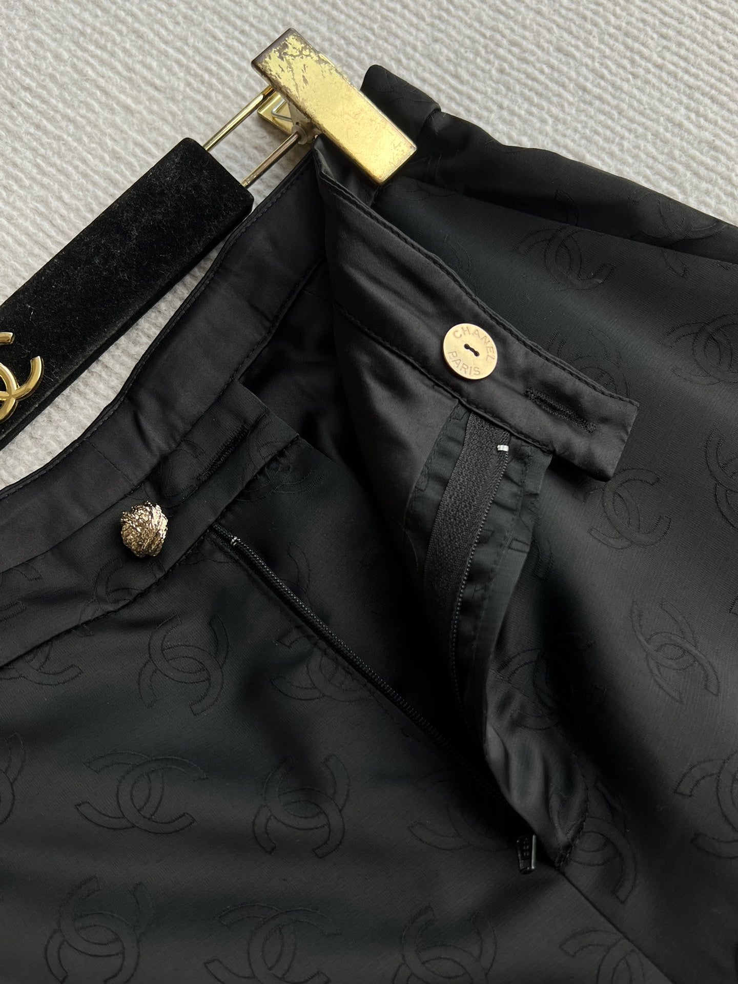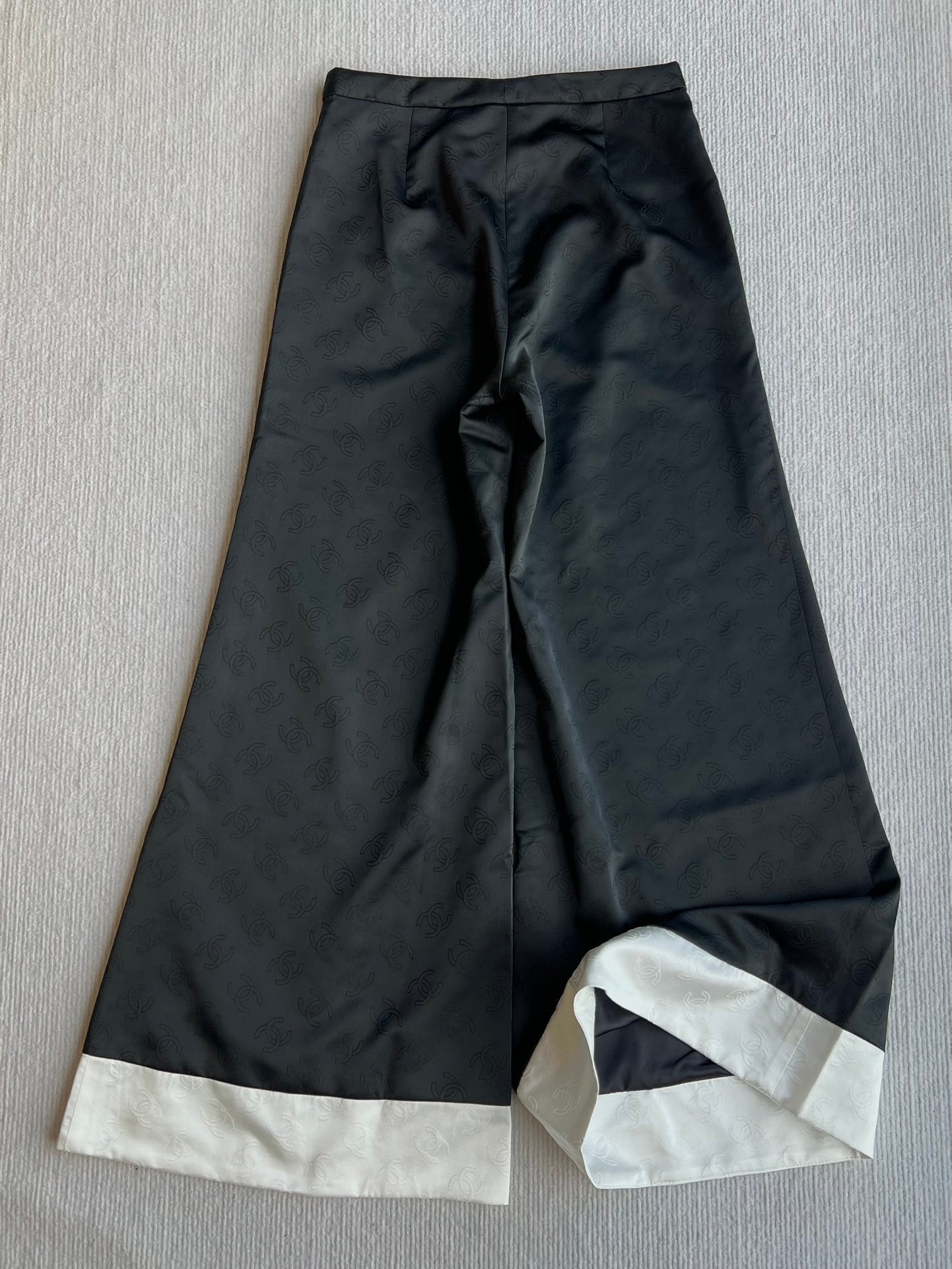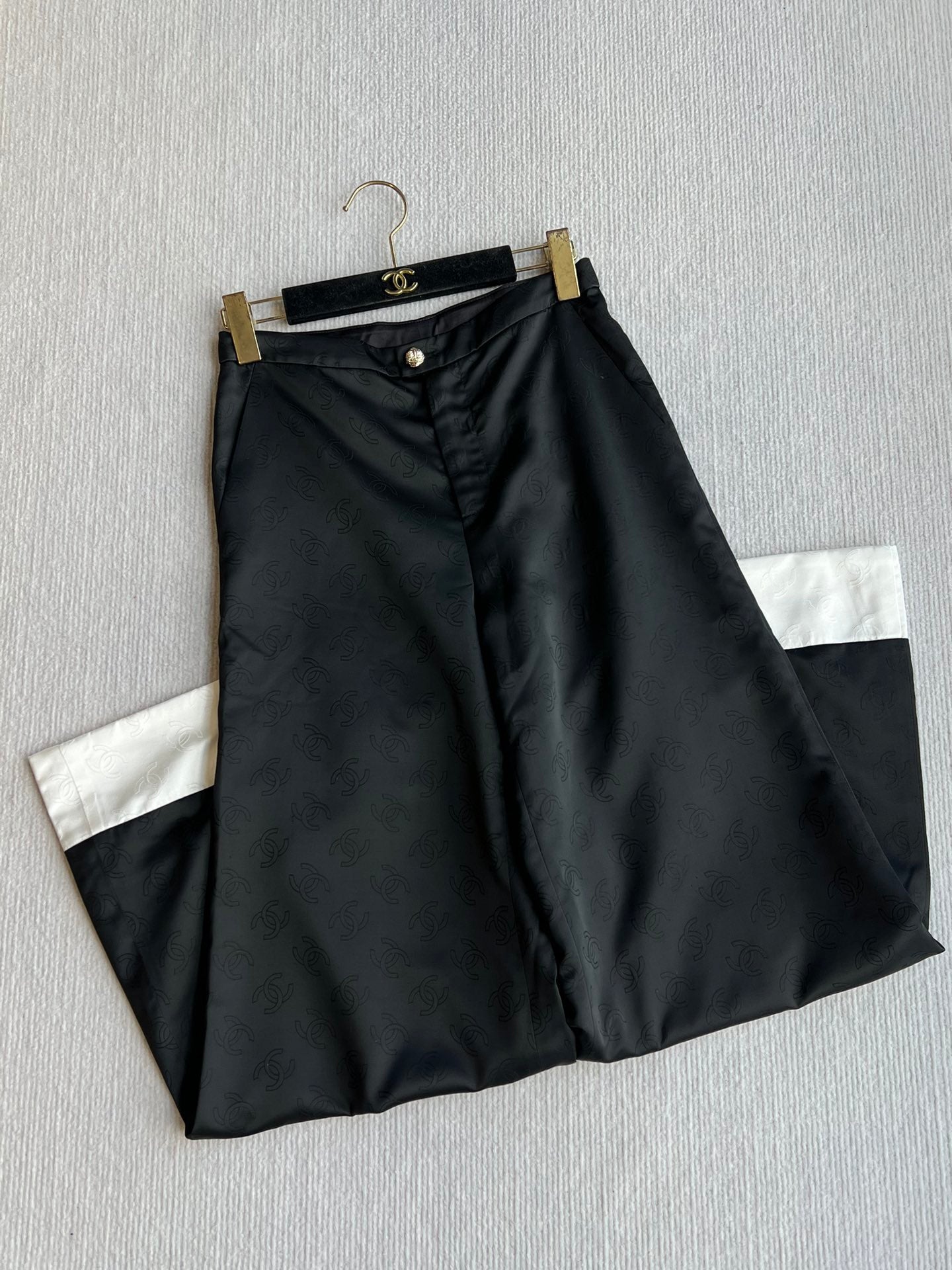 CC 25SS Double C Plaid Wide-Leg Pants In Black and White Silk 277145
