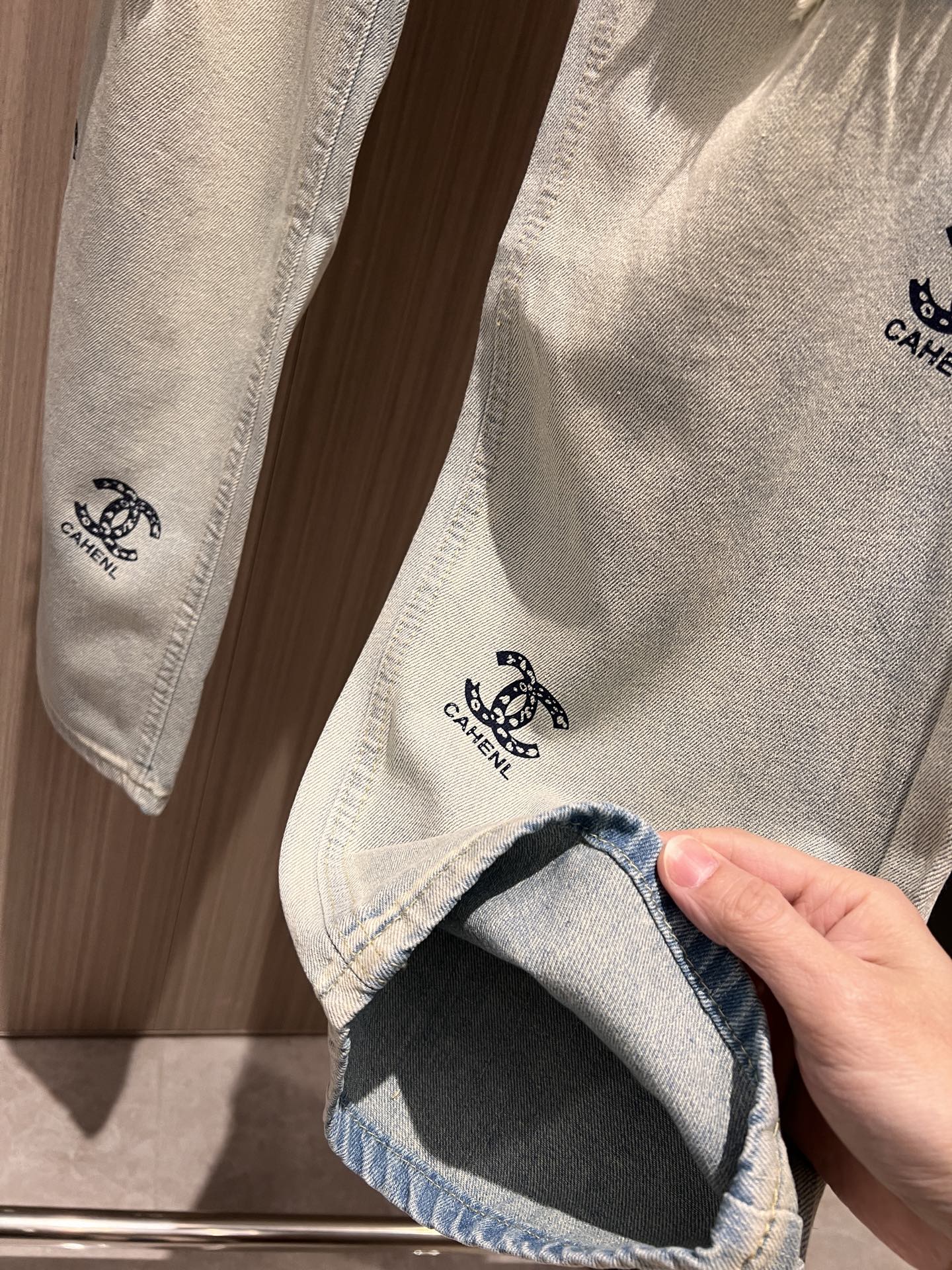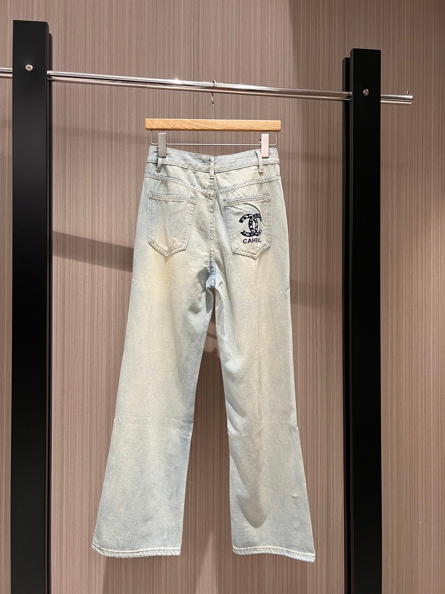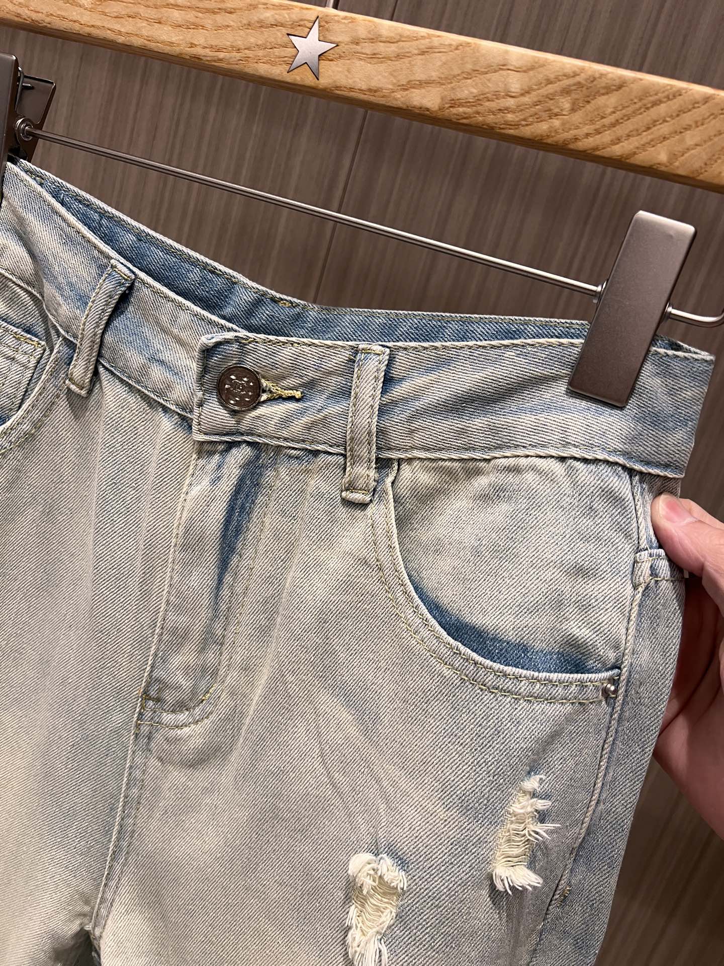 CC Double C Printed Ripped Jeans Retro Light Blue Cotton