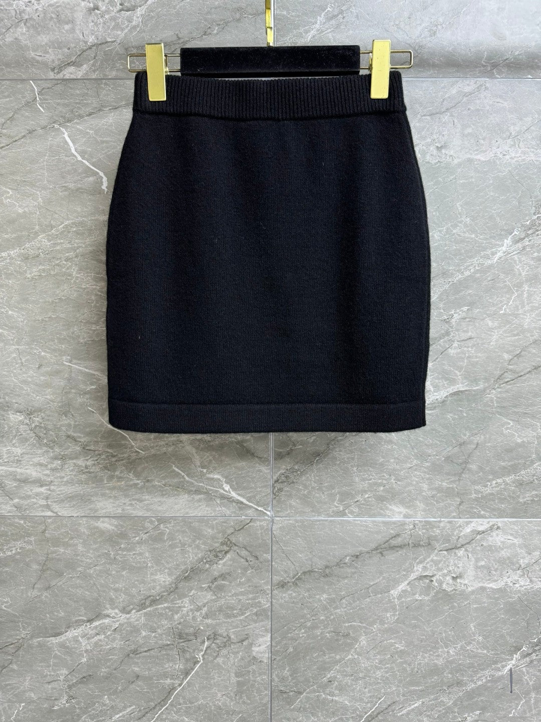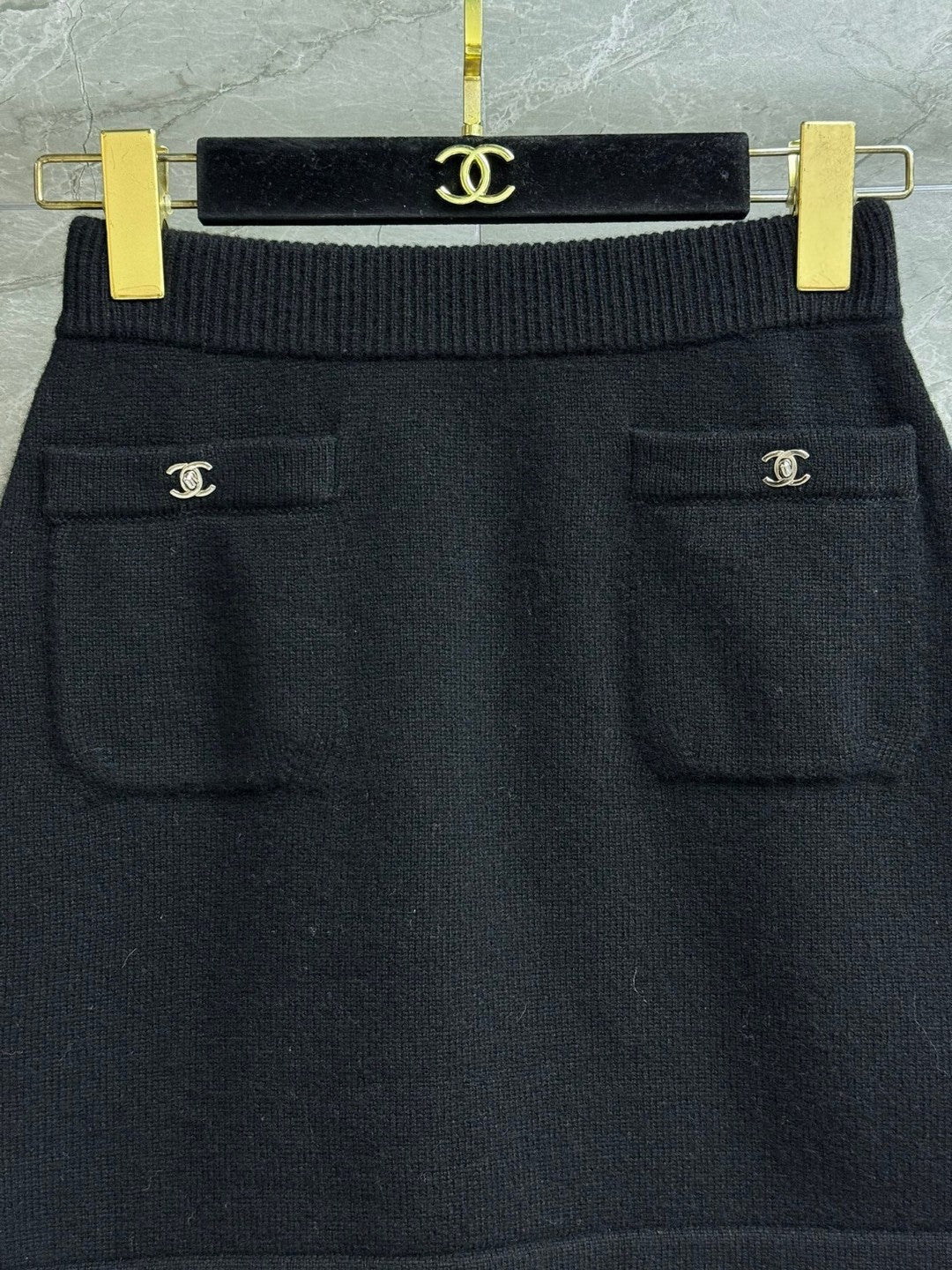 CC ICONIC SKIRT IN BLACK WOOL KNIT WITH FRONT POCKETS