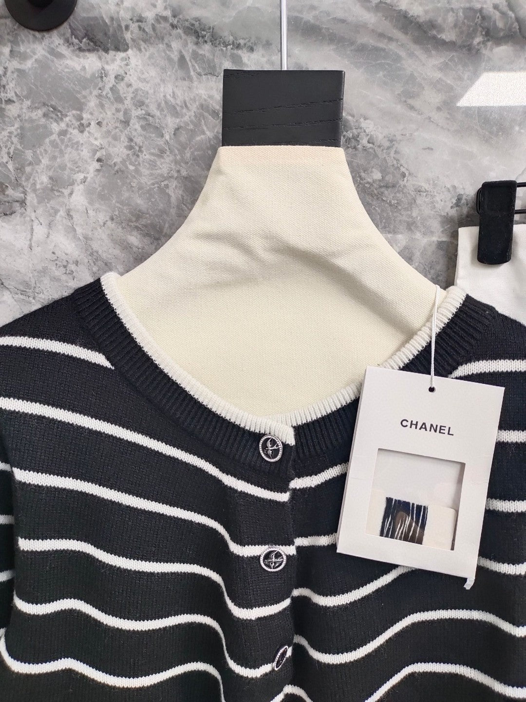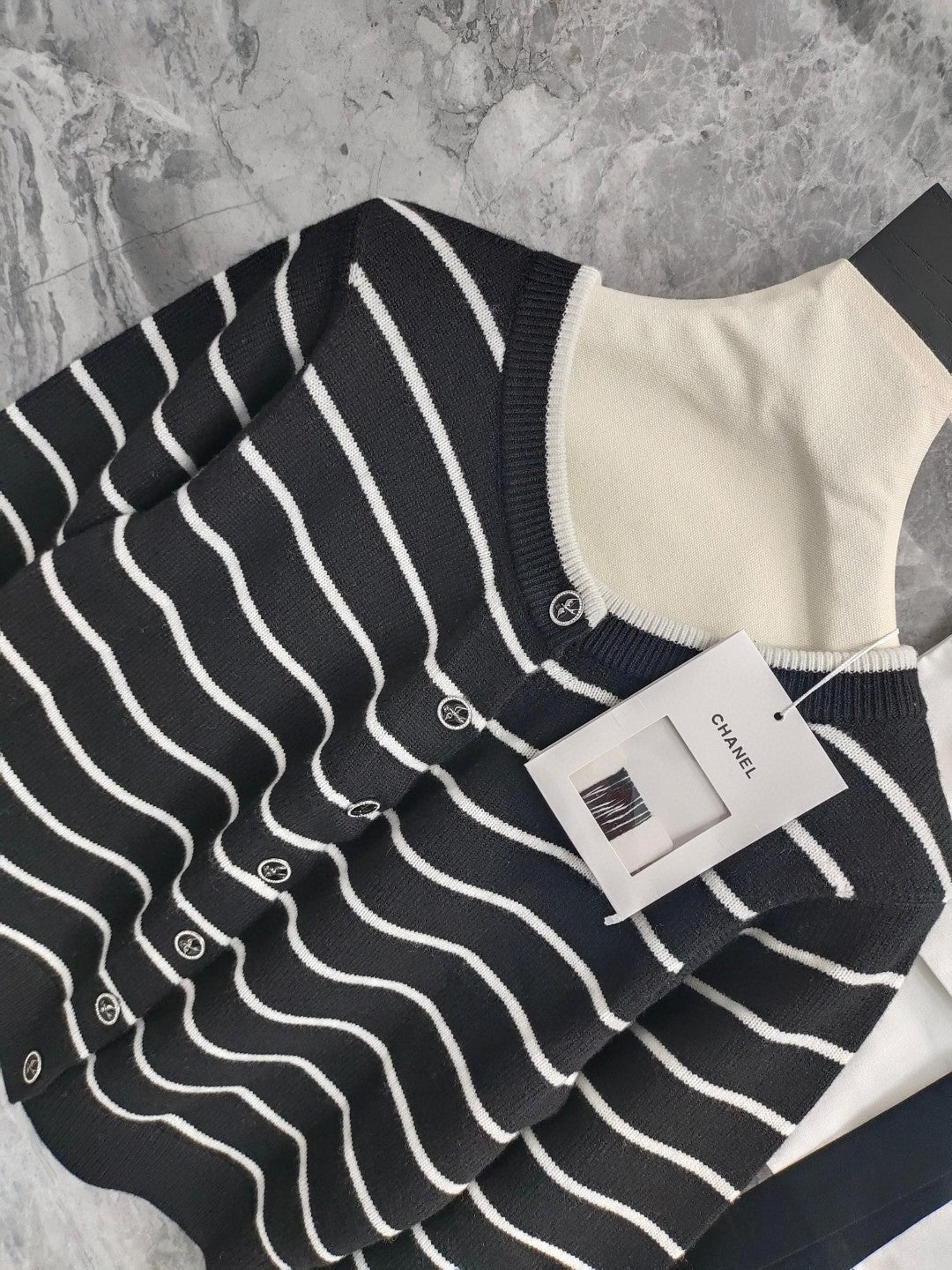 CC NAUTICAL CARDIGAN IN BLACK AND WHITE COTTON KNIT WITH STRIPED DESIGN WITH CC BUTTONS