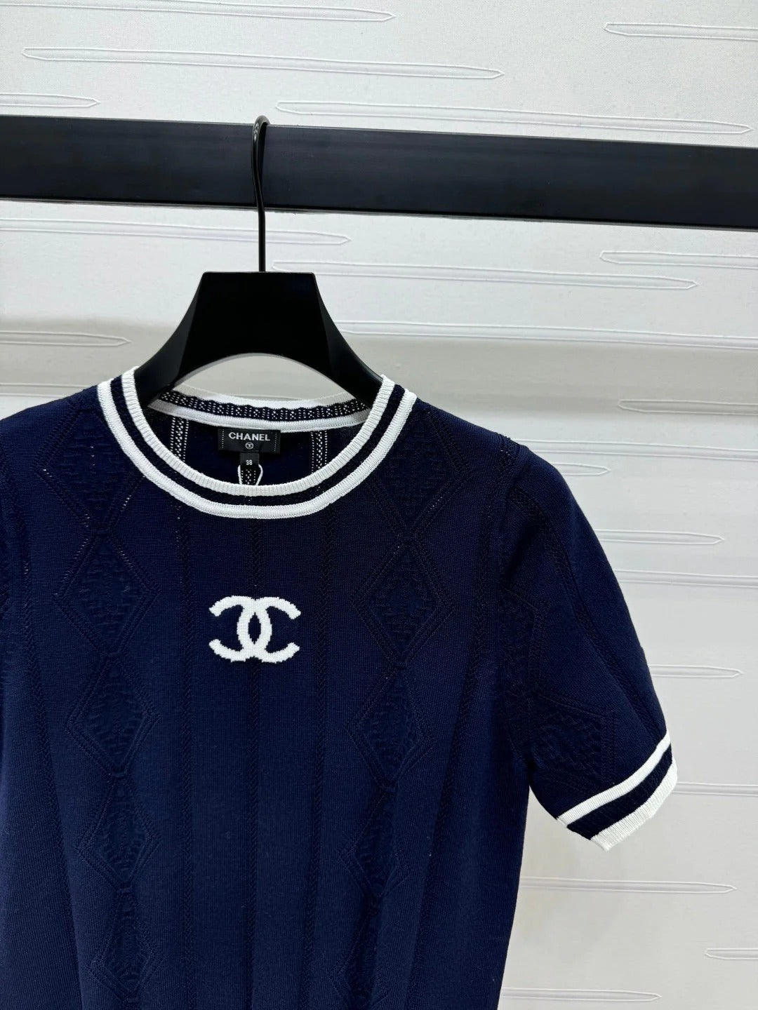 CHANEL 25S DIAMOND KNIT SHORT SLEEVE SHIRT 264172