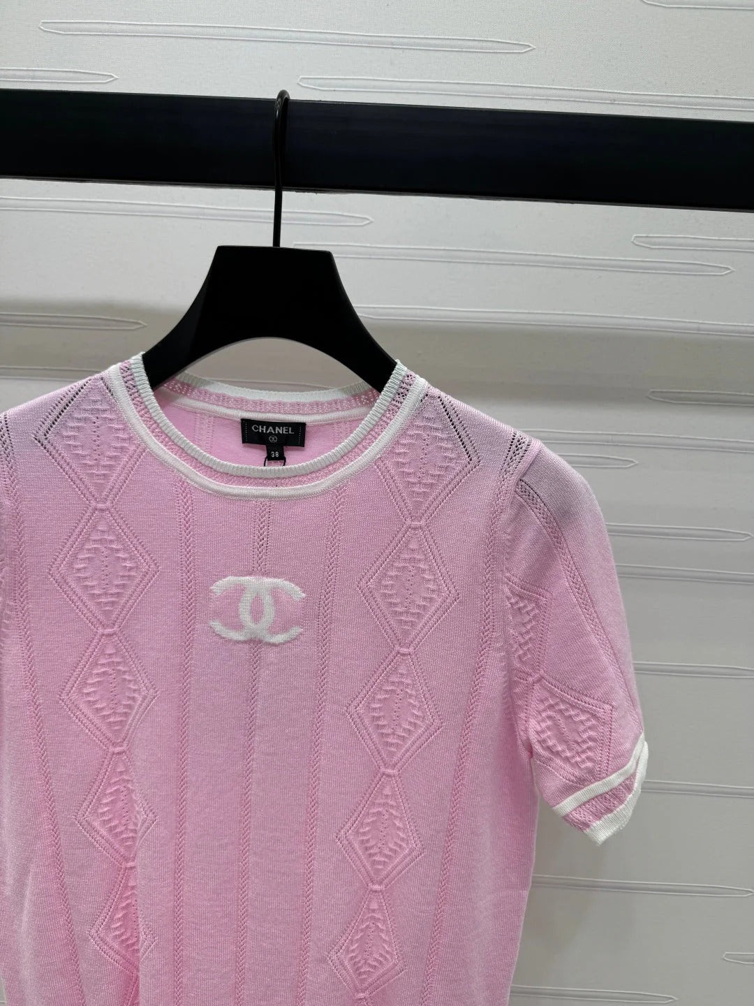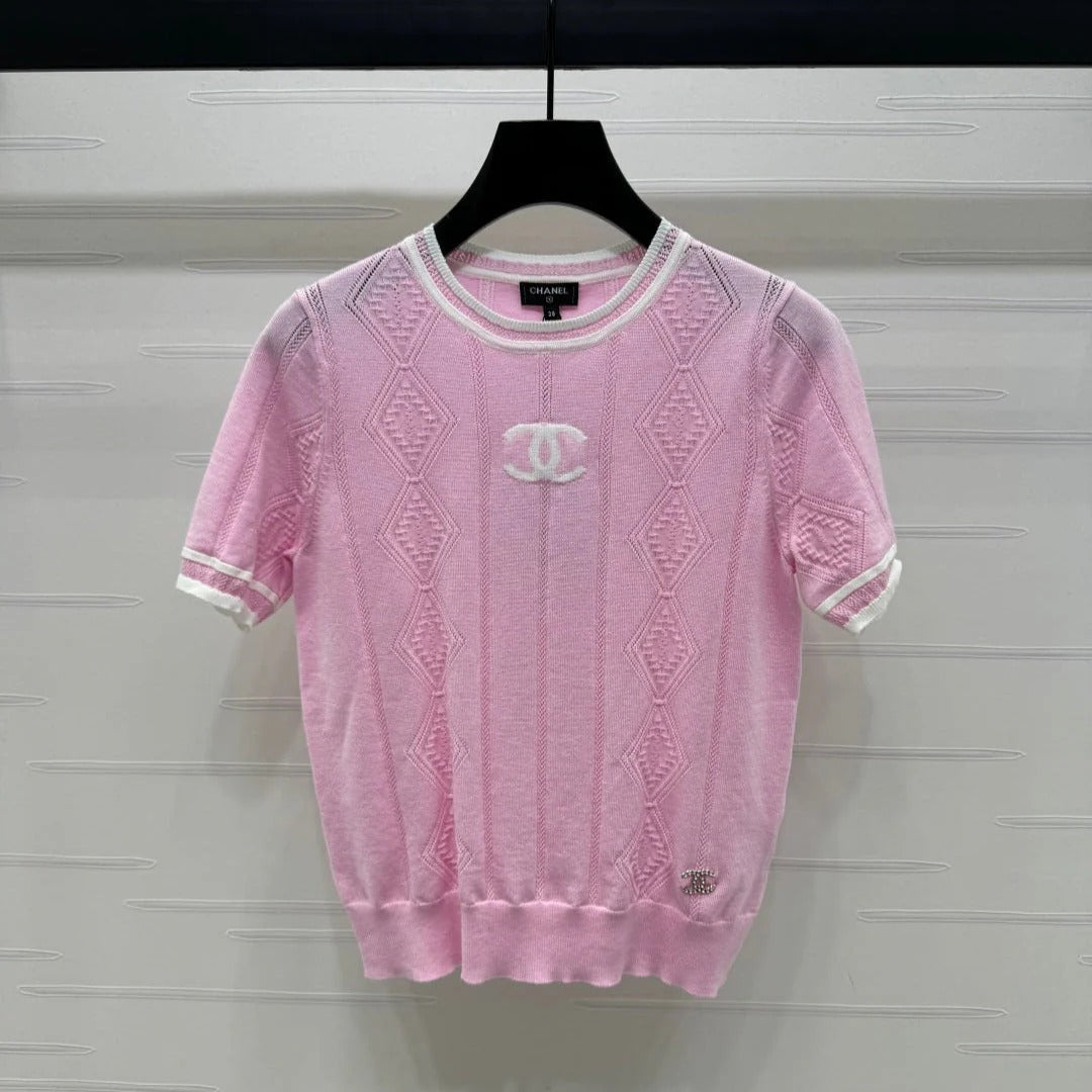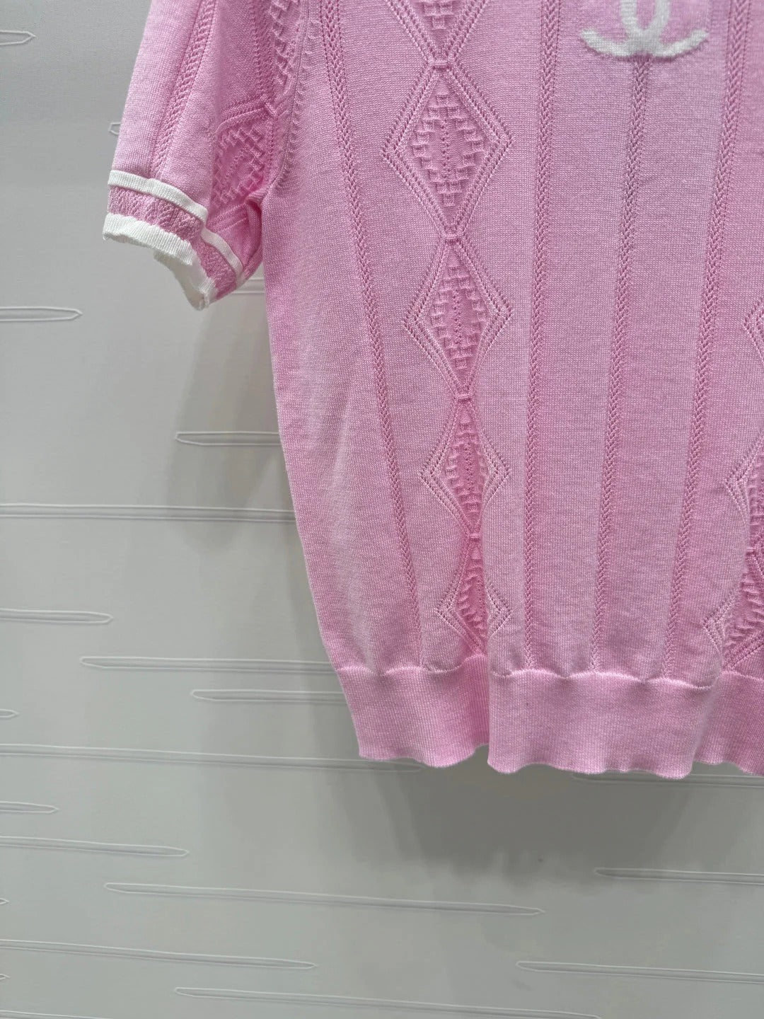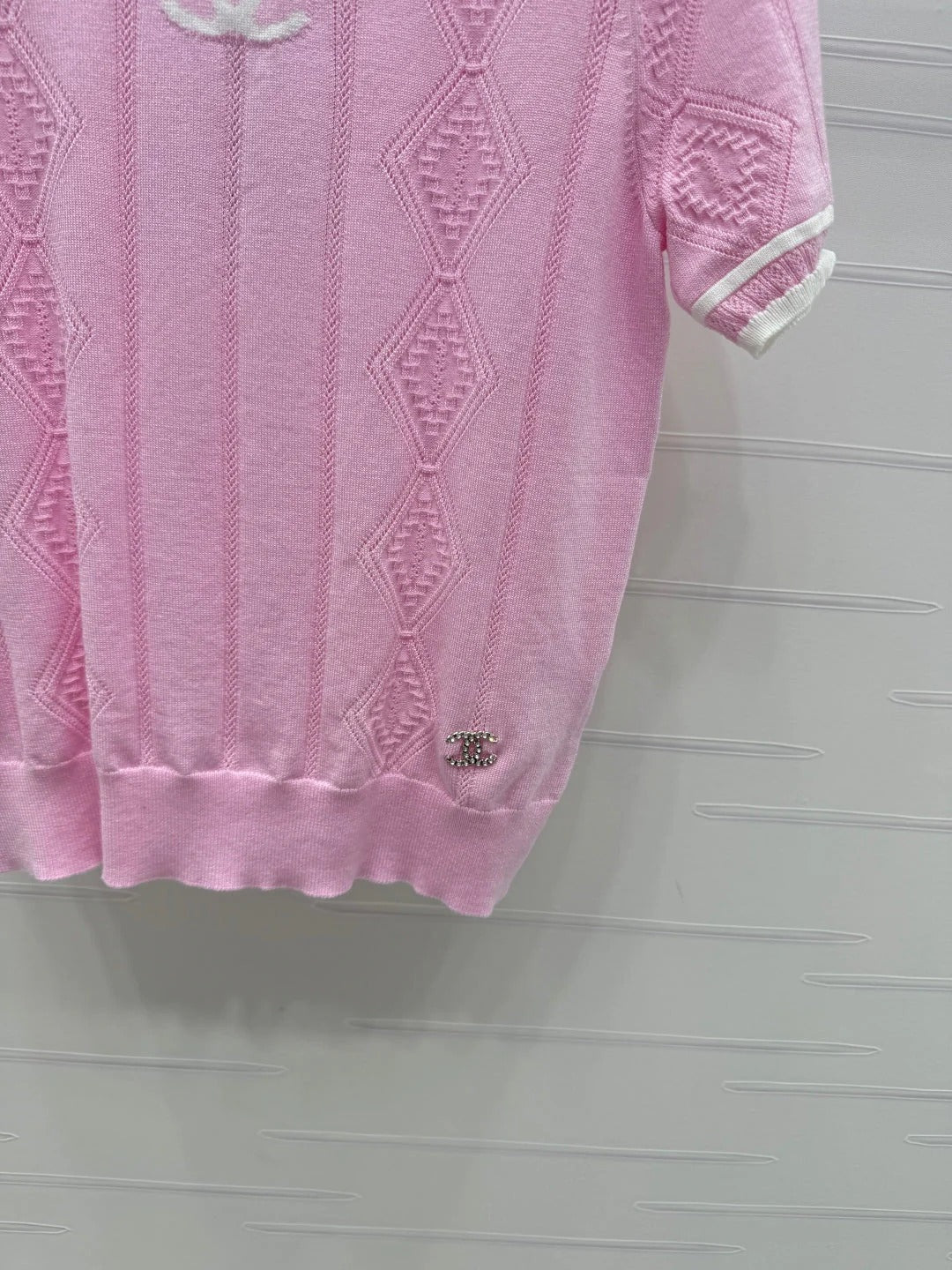 CHANEL 25S DIAMOND KNIT SHORT SLEEVE SHIRT 264174