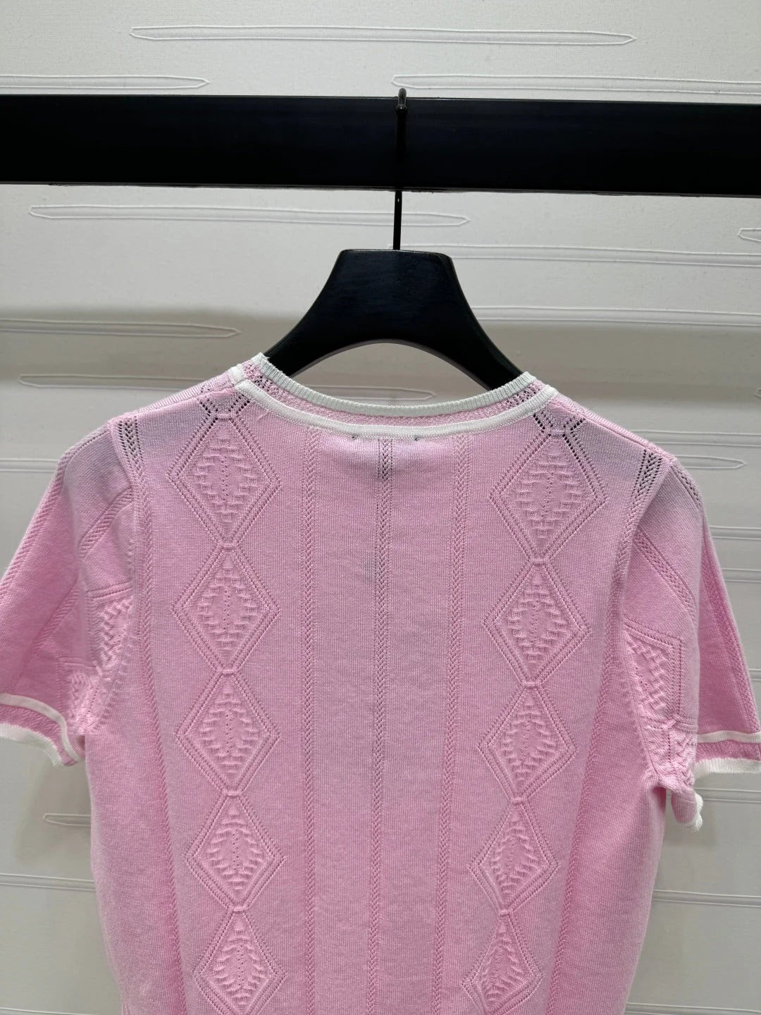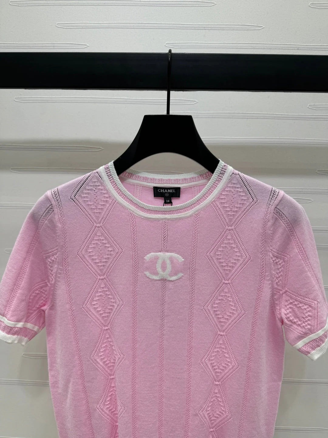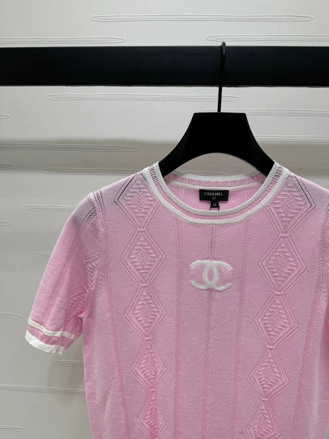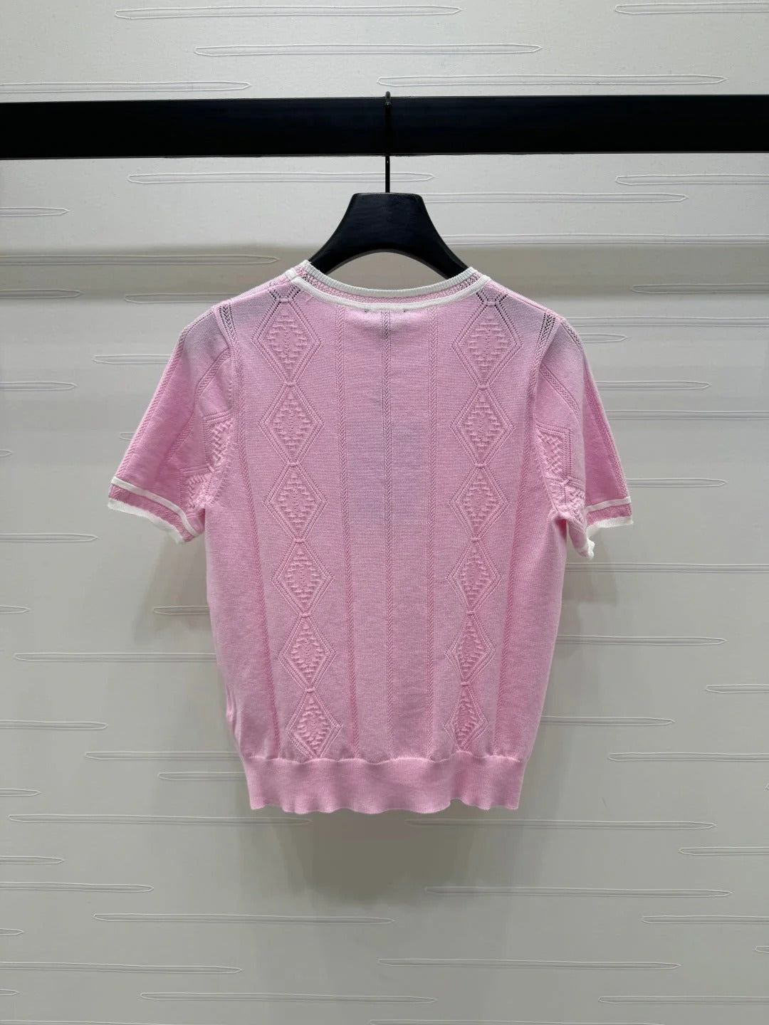 CHANEL 25S DIAMOND KNIT SHORT SLEEVE SHIRT 264174