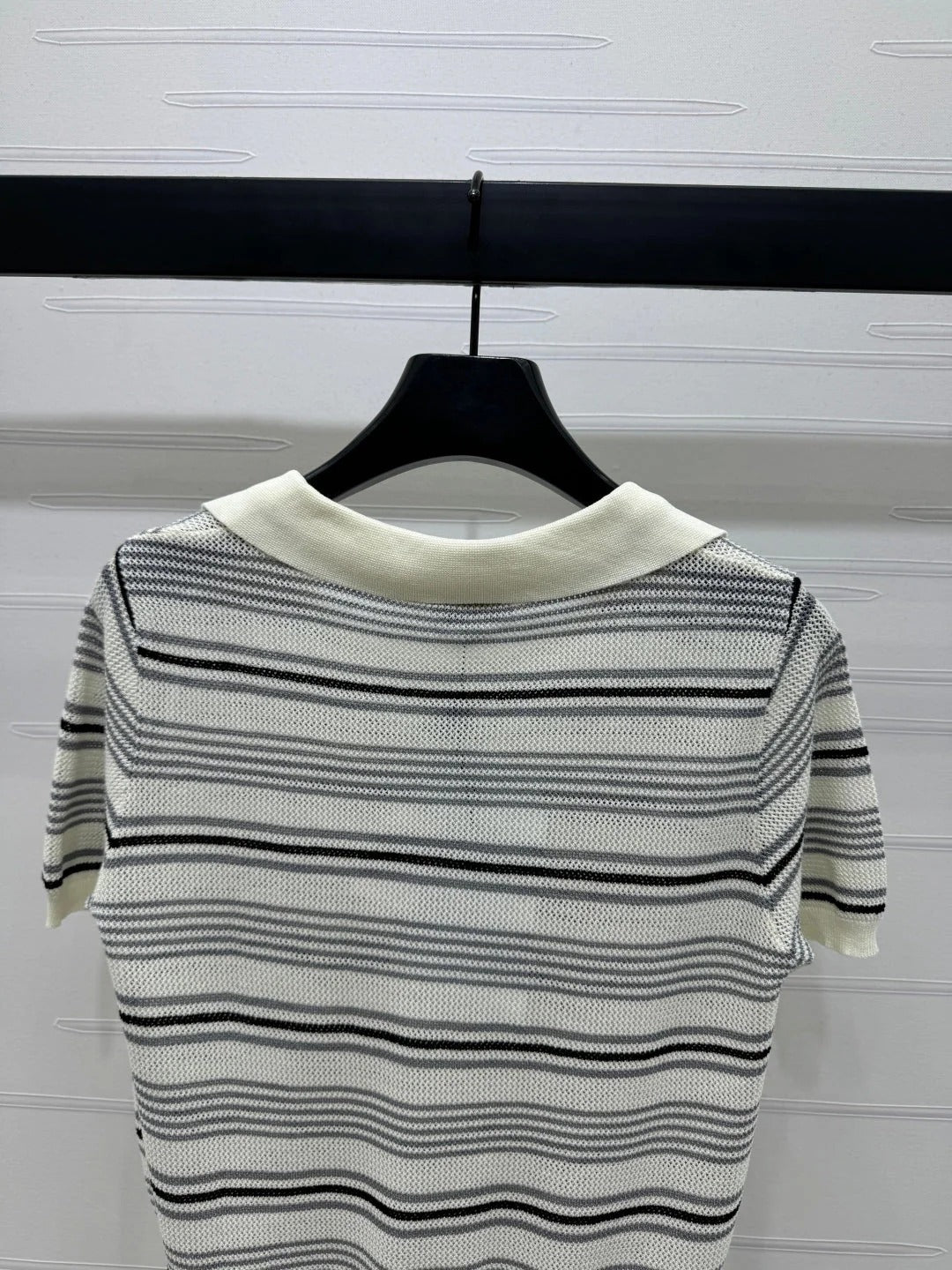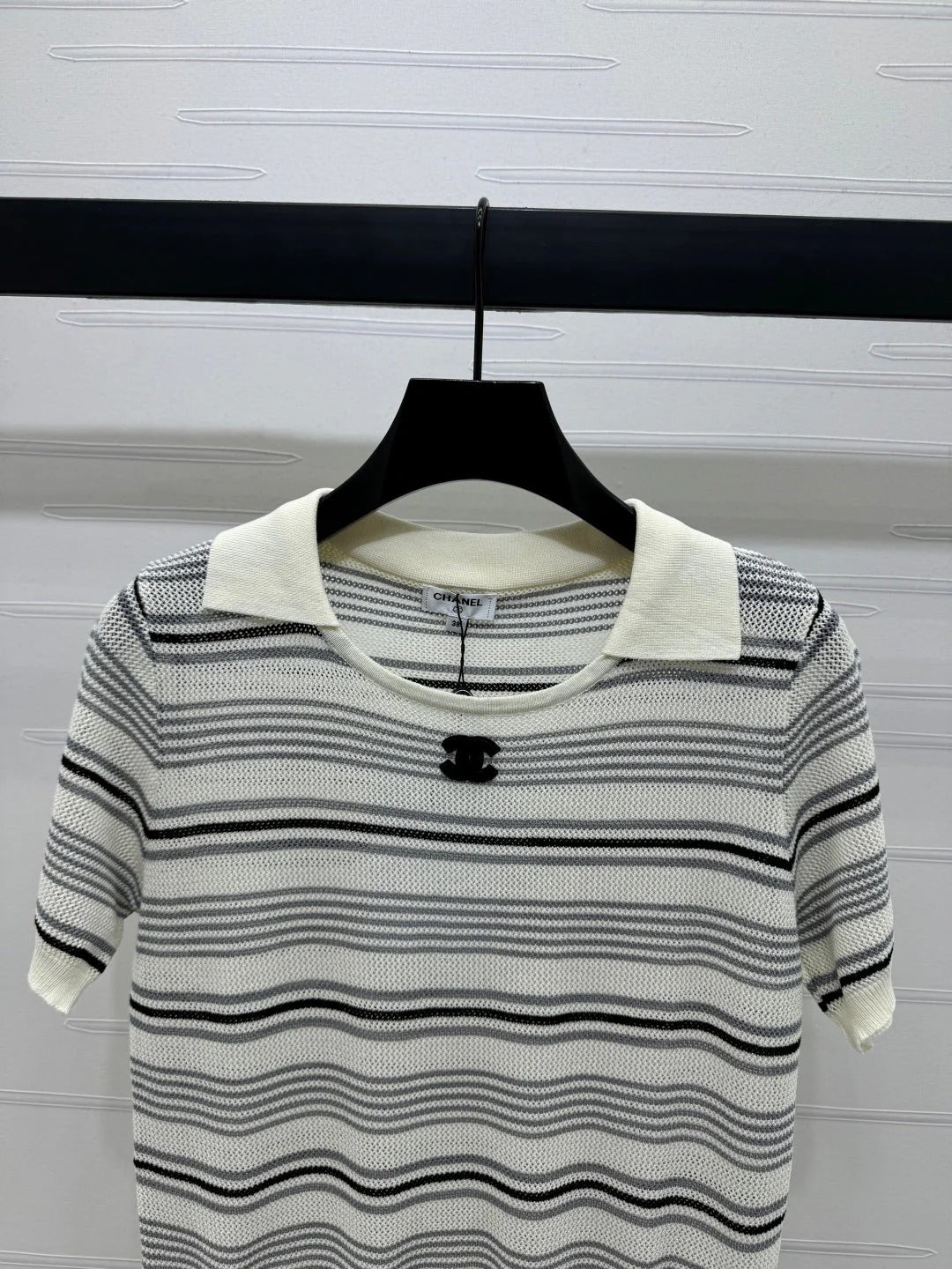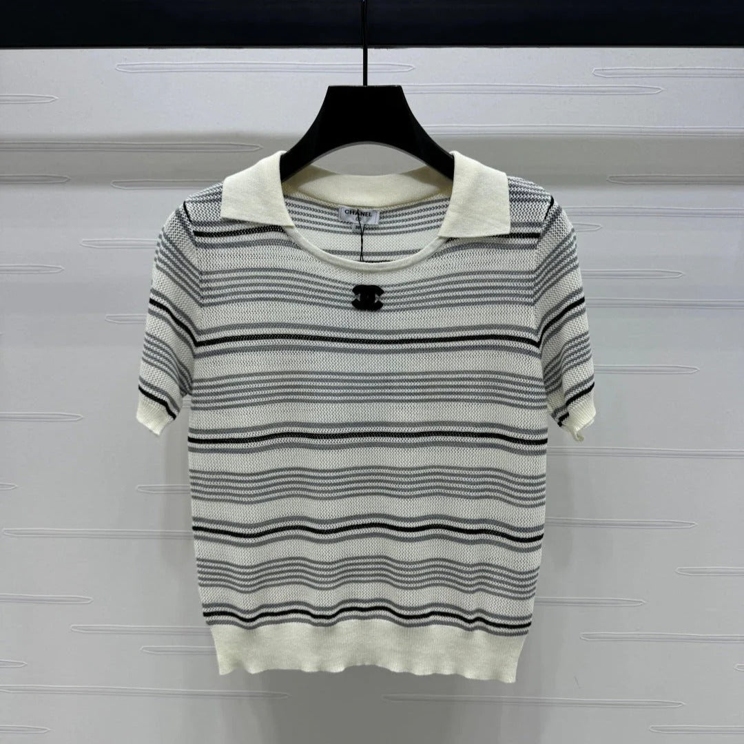 CHANEL 25S HOLLOW WOVEN POLO SHIRT 264075