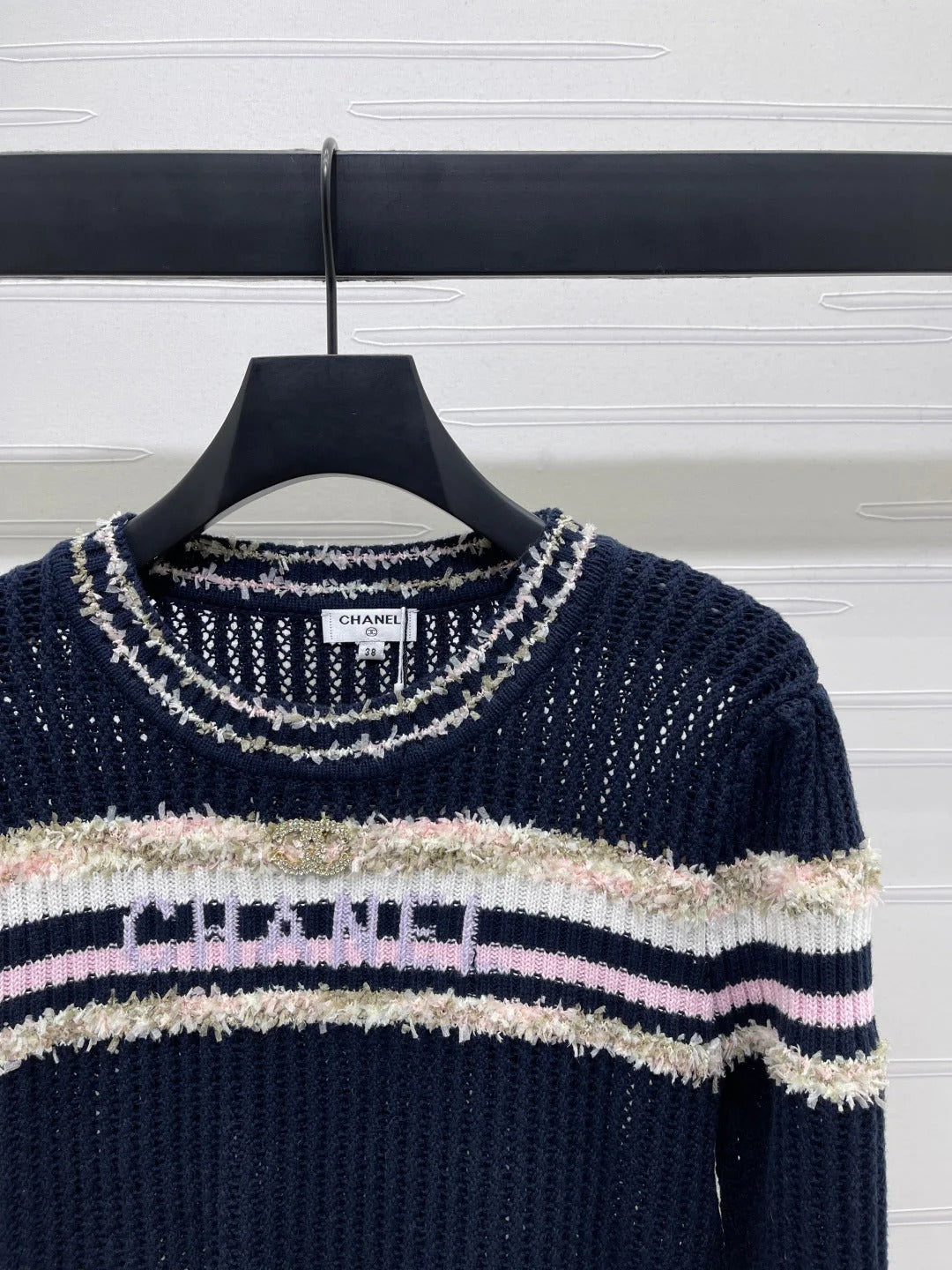 CHANEL 25S LONG SLEEVE OPEN-KNIT SWEATER STYLE 162