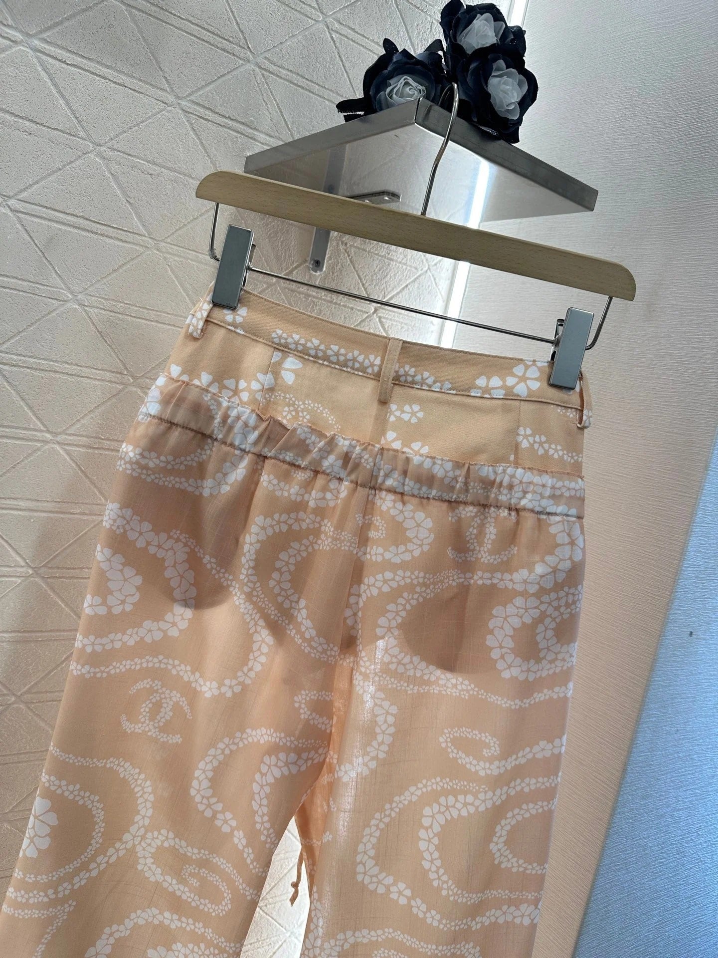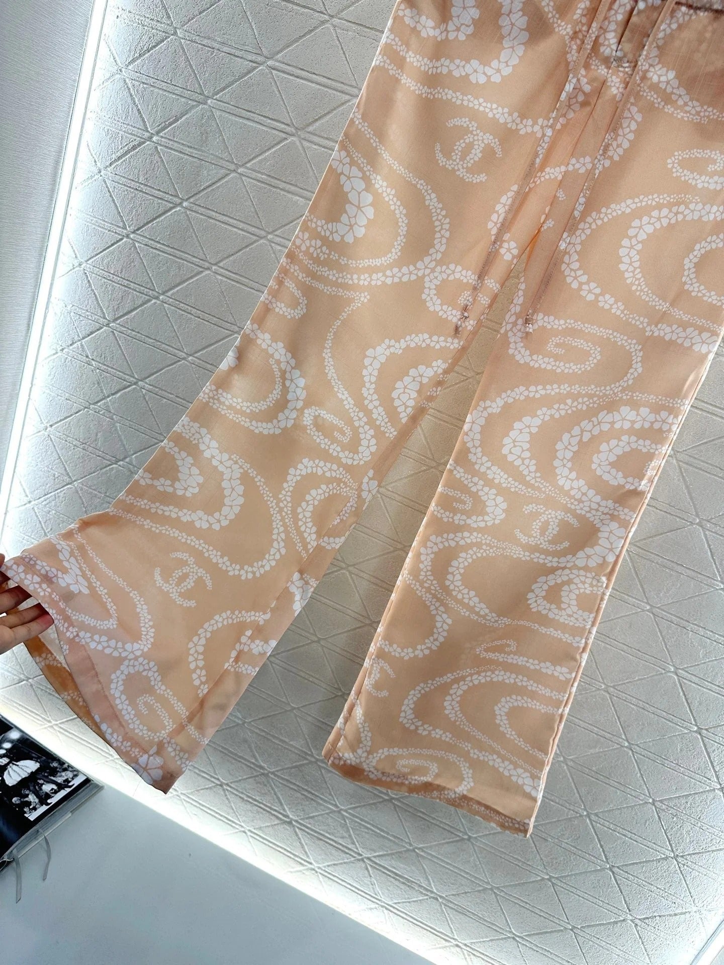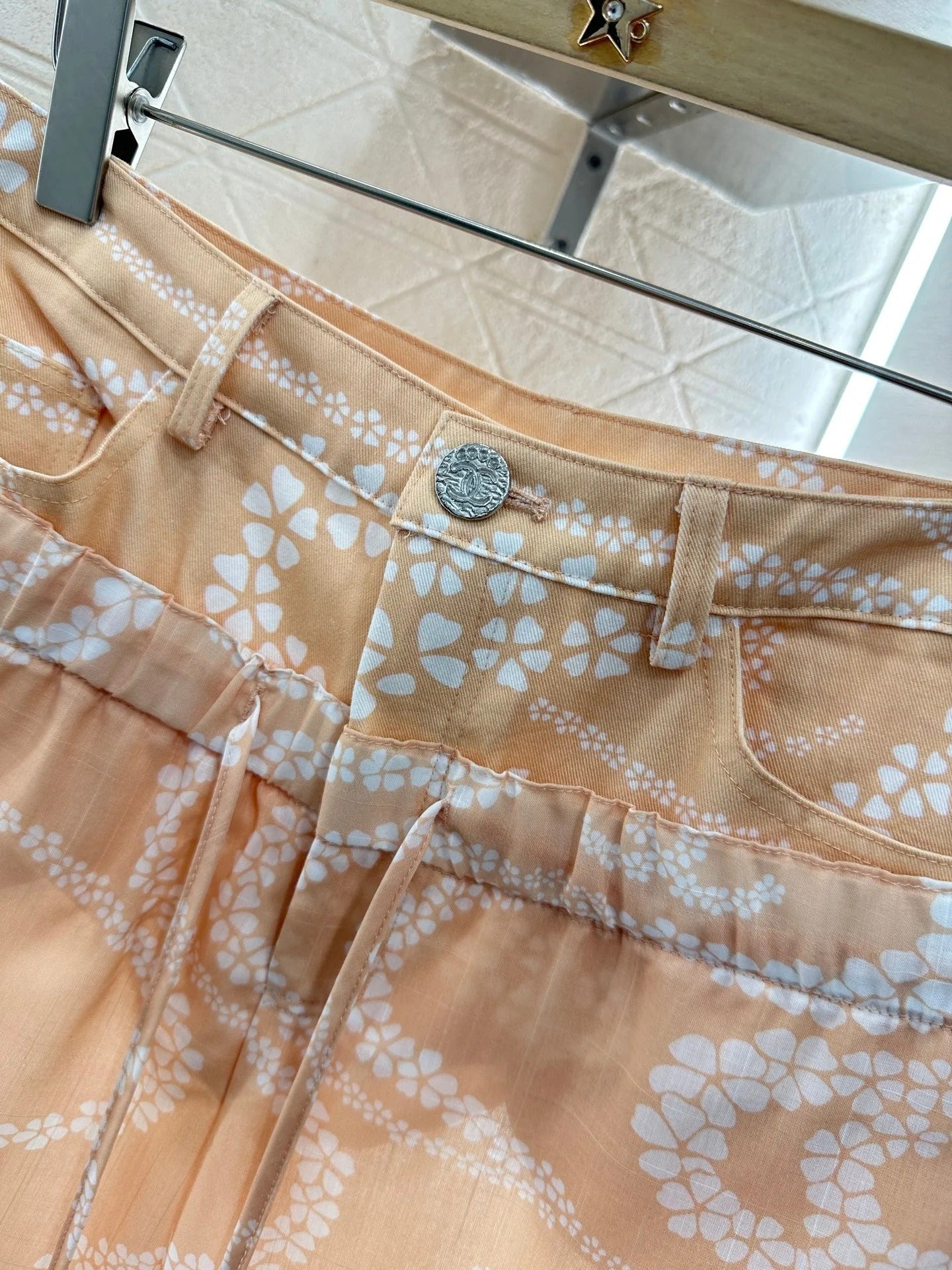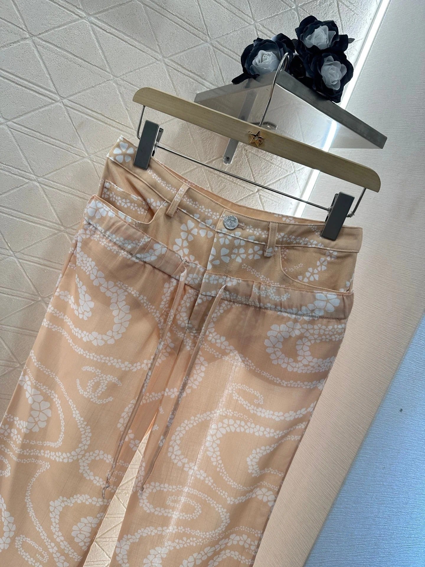 CHANEL BEIGE PRINTED DENIM PANTS
