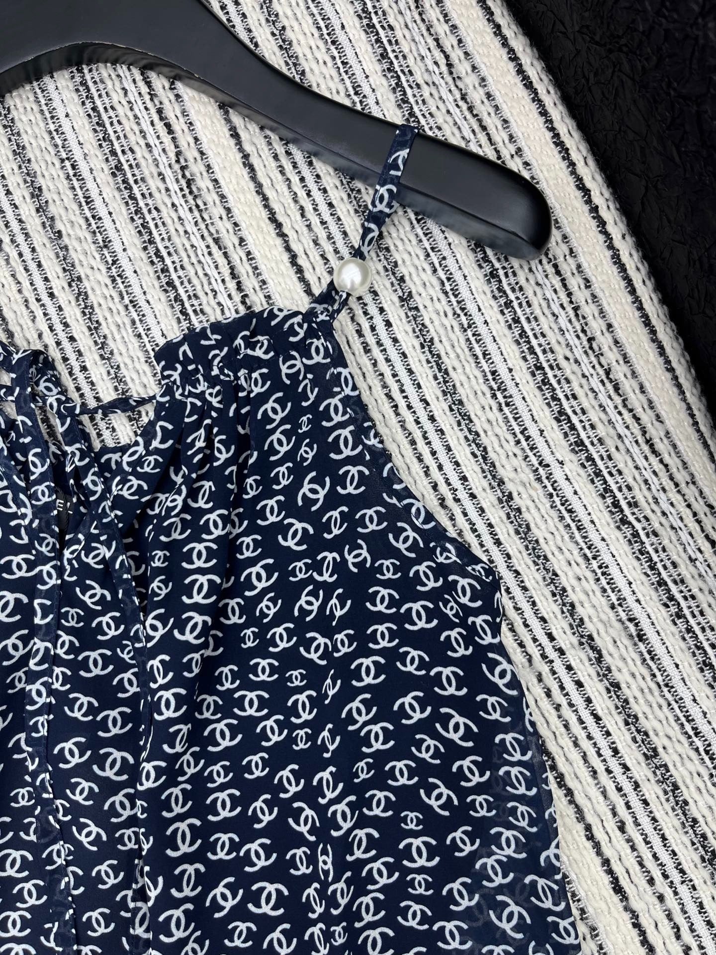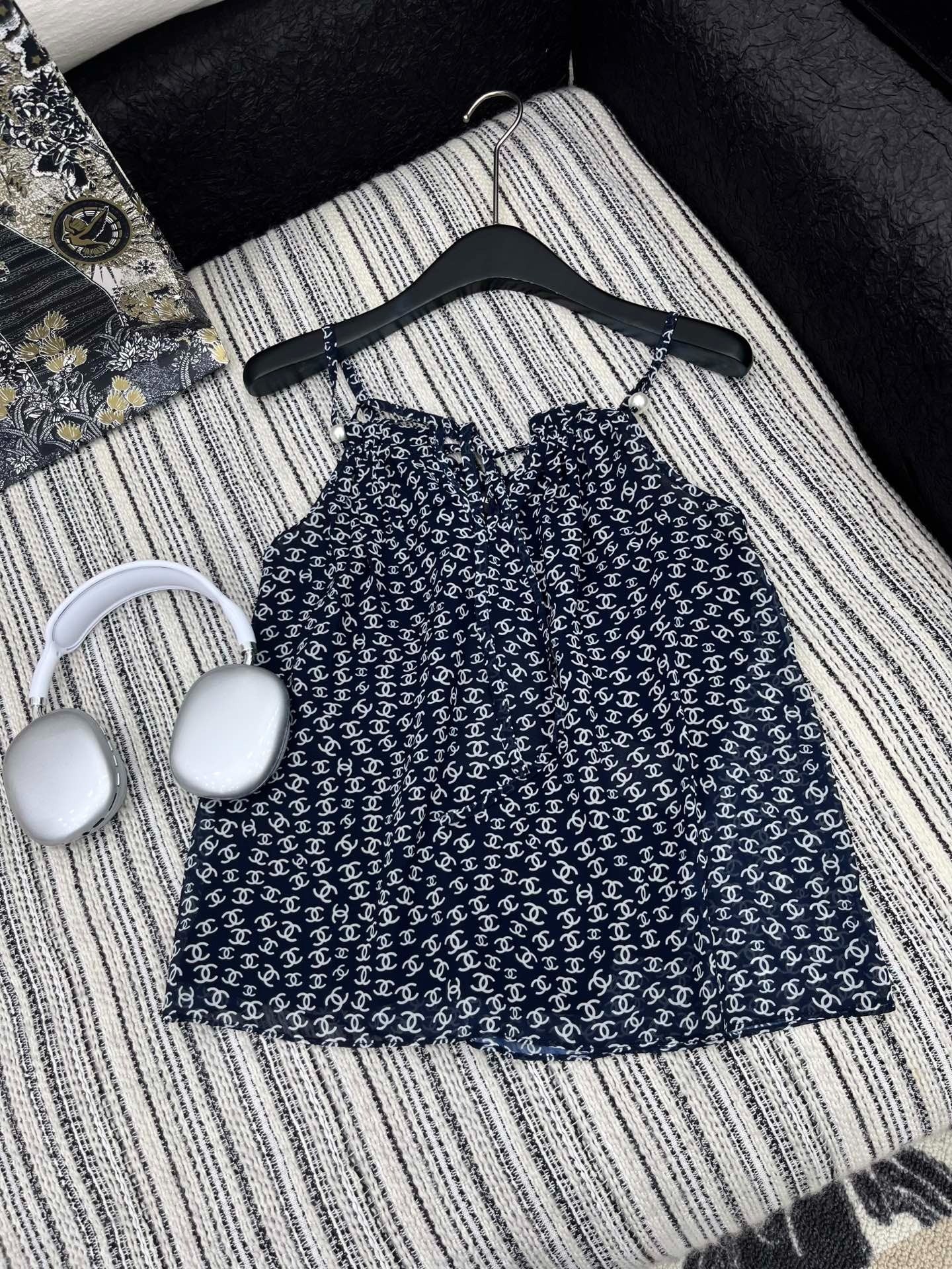 CHANEL BLACK PEARL-EMBELLISHED CAMISOLE