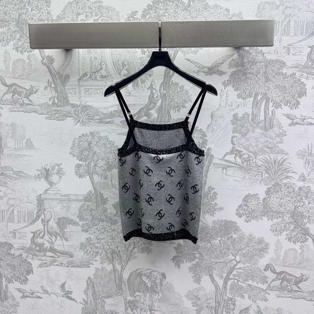 CHANEL CAMISOLE WITH LOGO DETAIL IN GREY