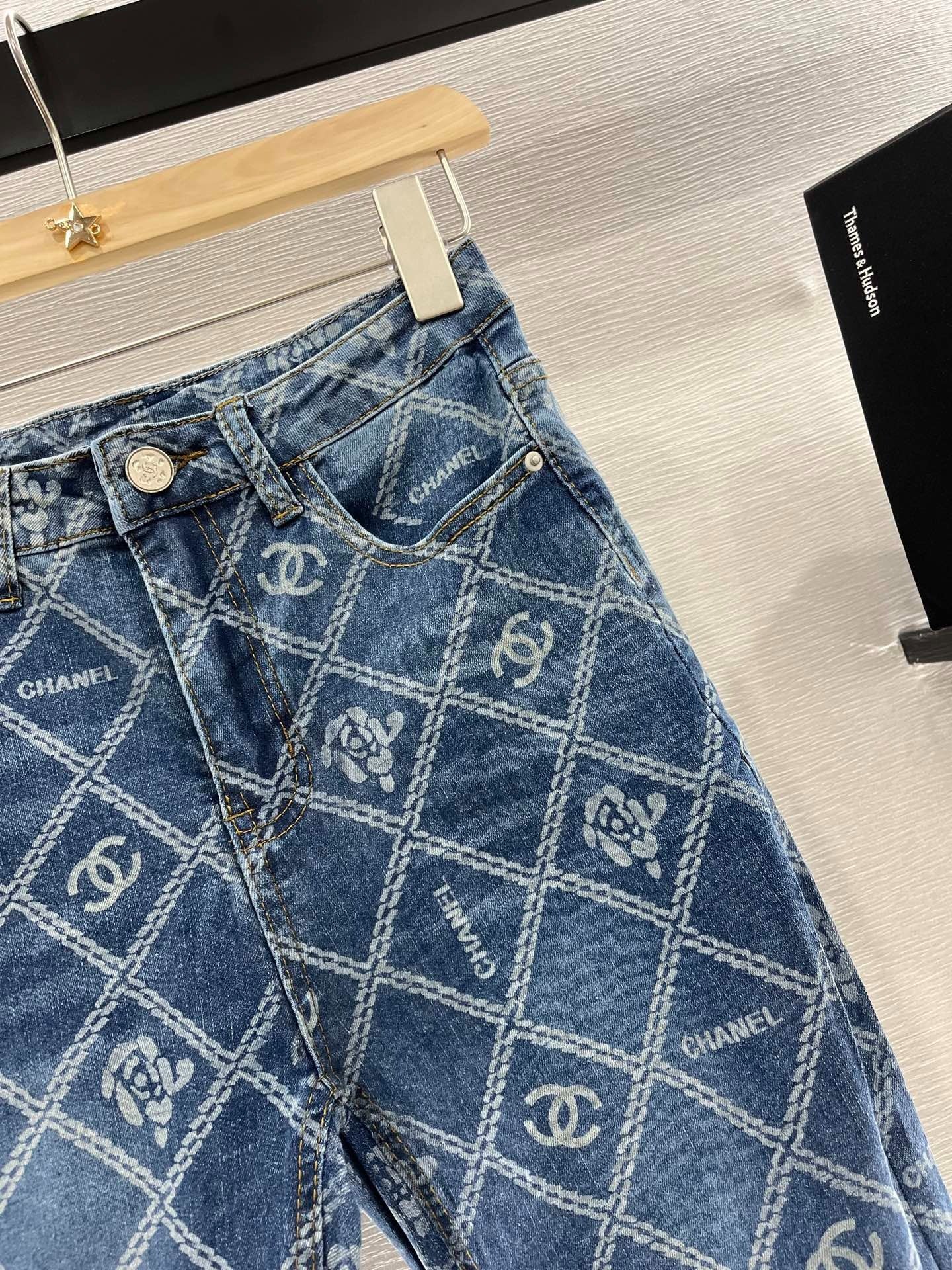 CHANEL FLARED JEANS WITH LOGO PRINT 263984