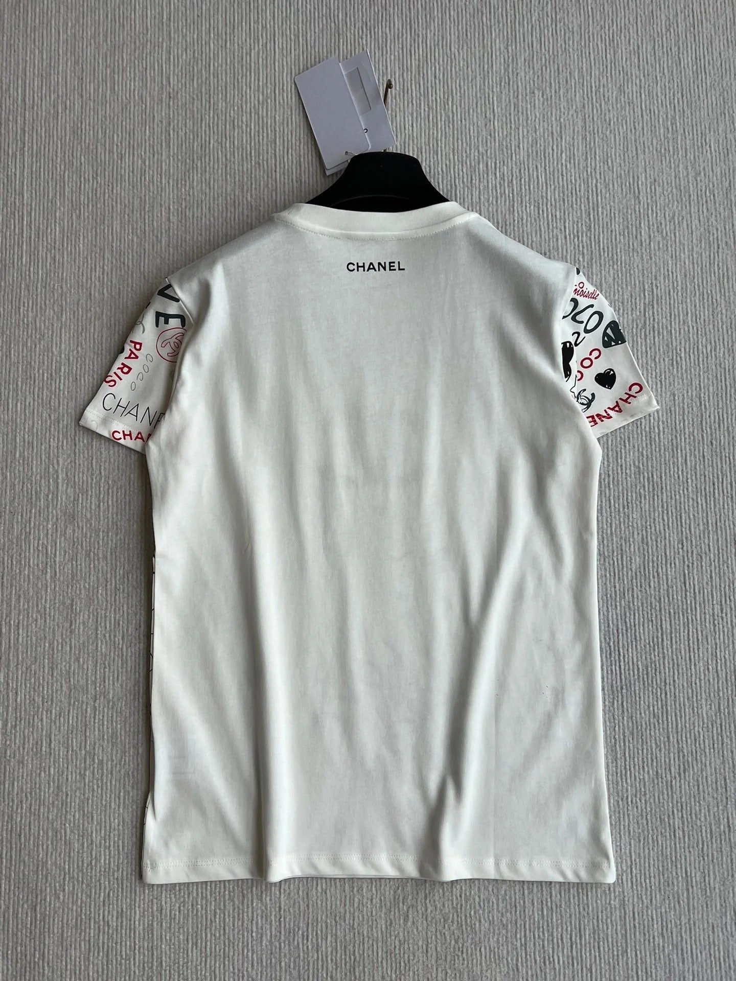 CHANEL OFF-WHITE LOGO PRINT T-SHIRT