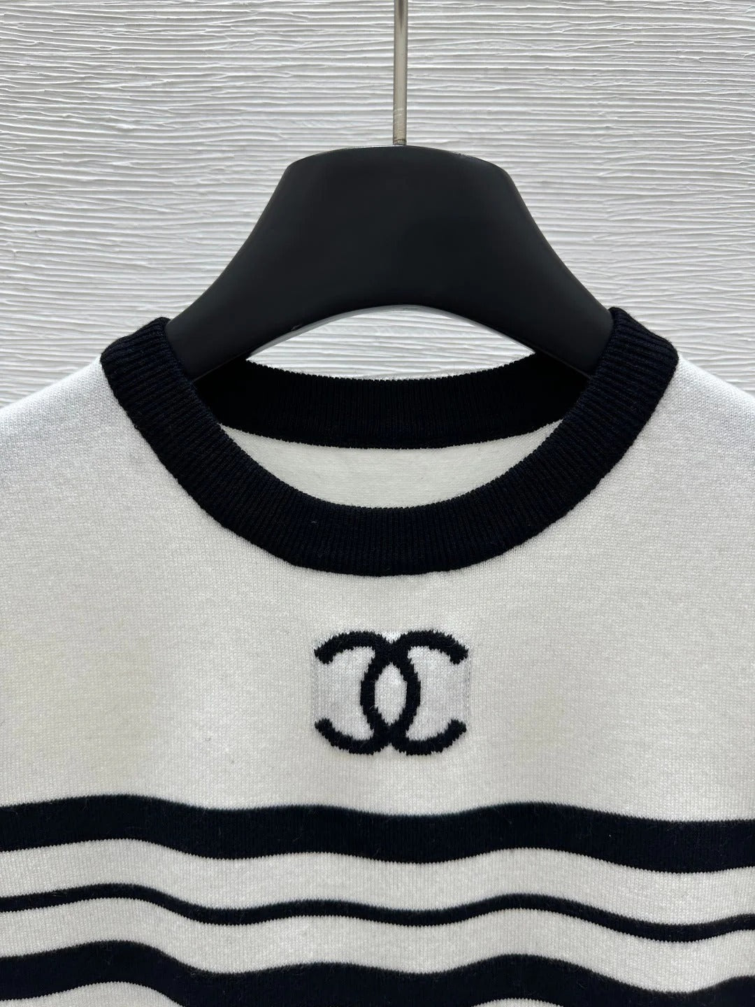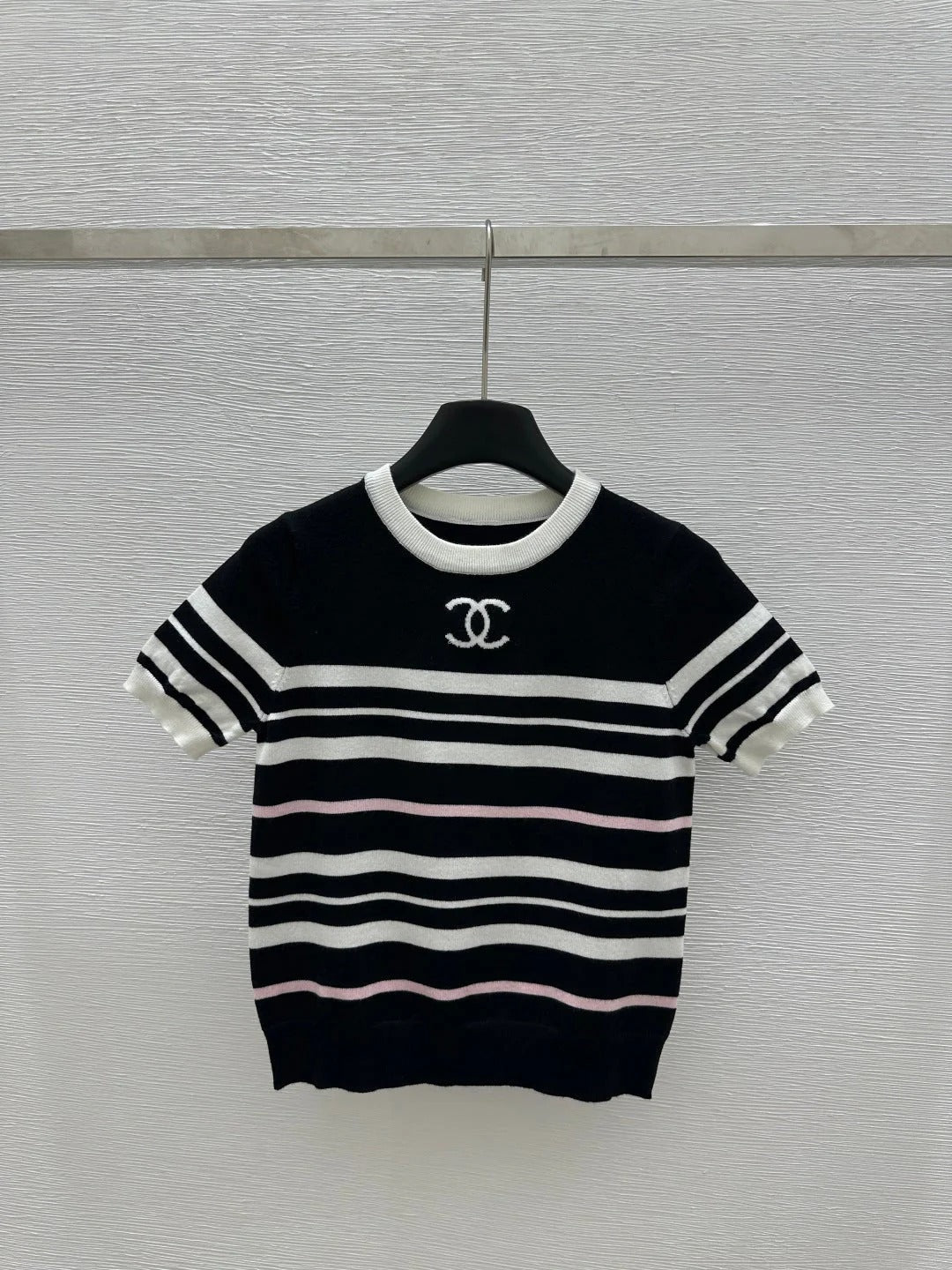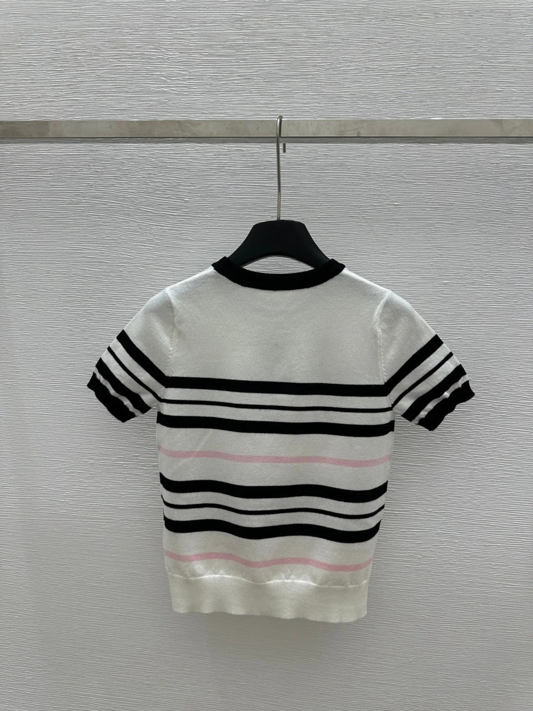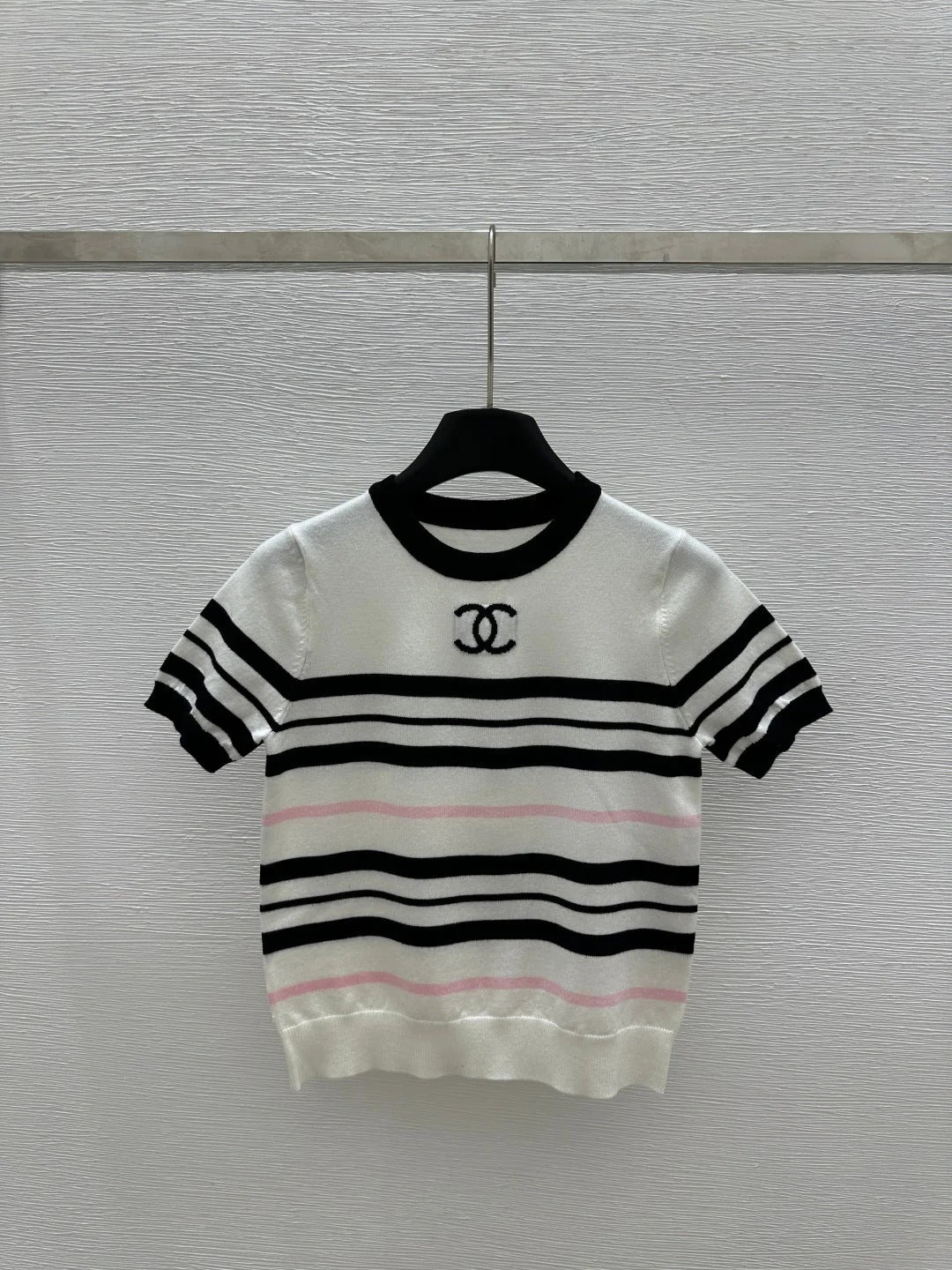 CHANEL SHORT-SLEEVE KNIT TOP STRIPED