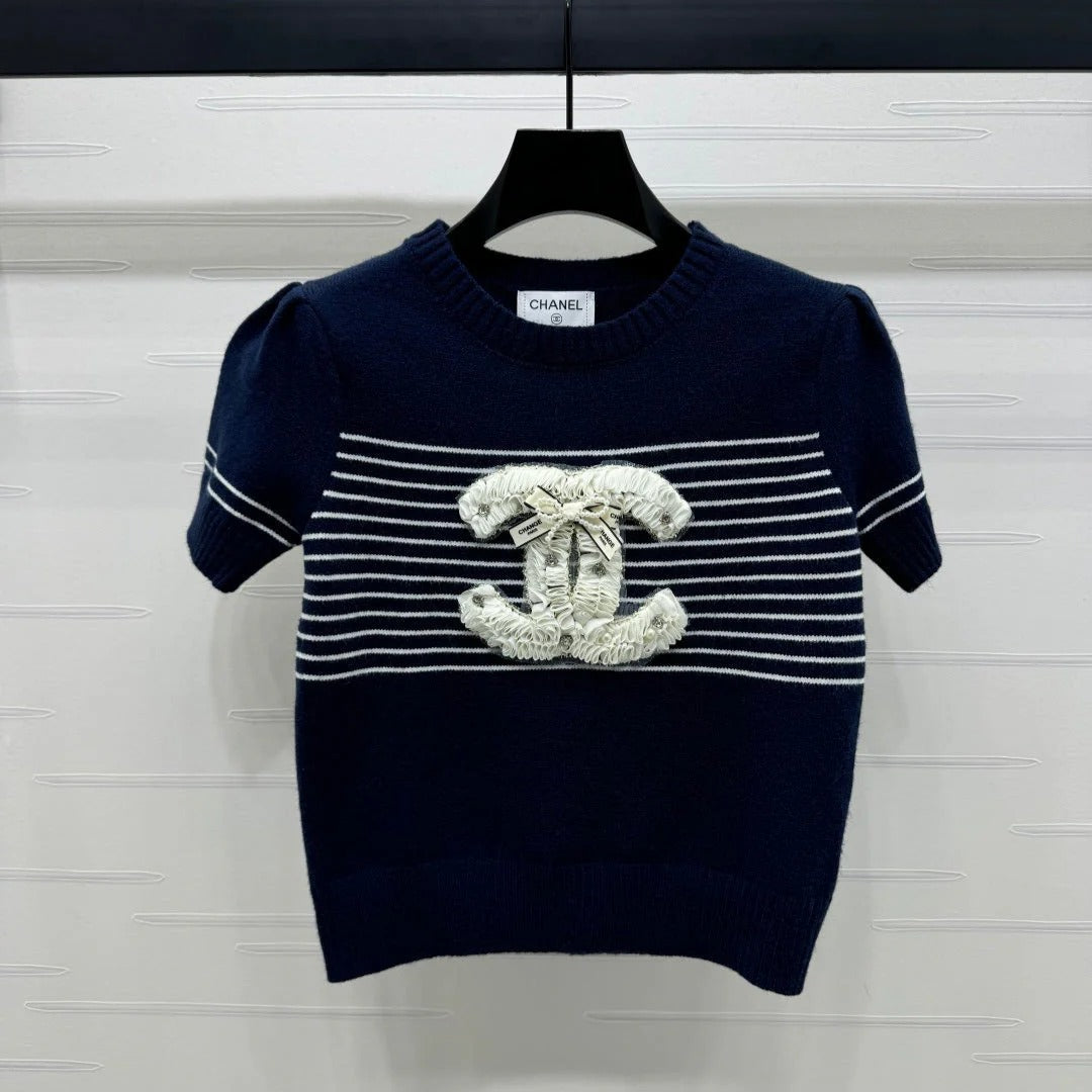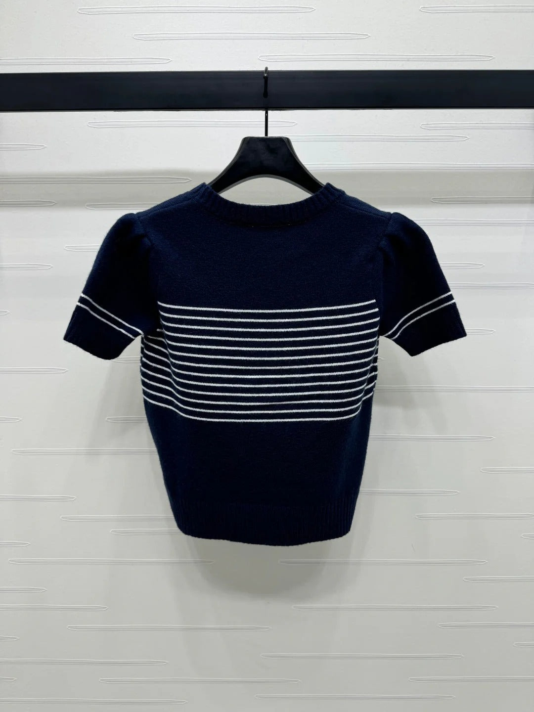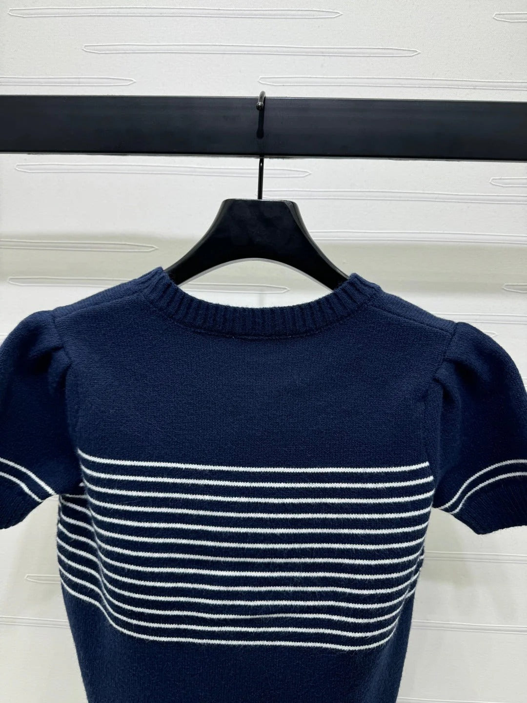 CHANEL SHORT-SLEEVE KNITTED PUFF-SLEEVE TOP 274951