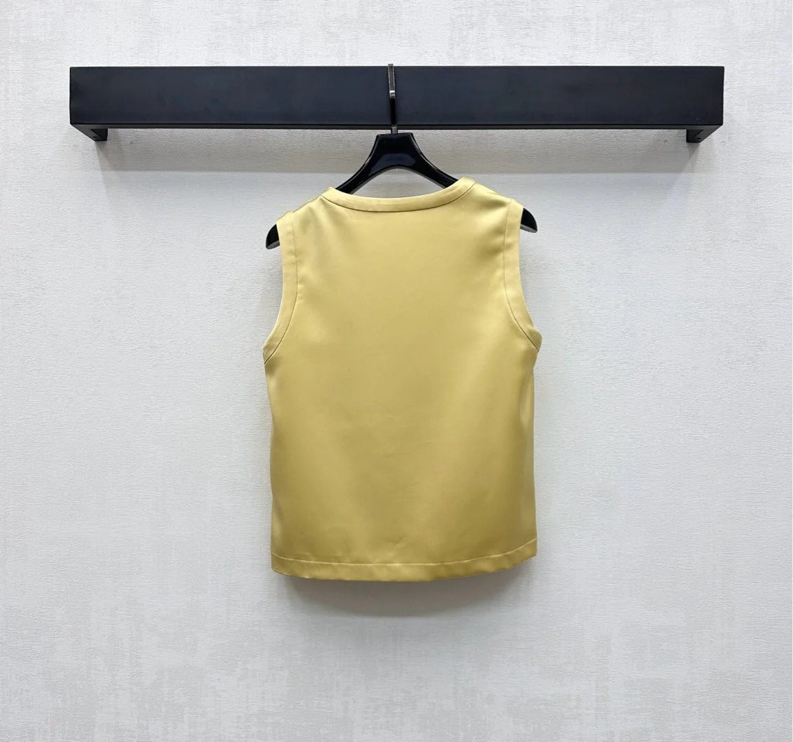 CHANEL SLEEVELESS ROUND-NECK BUTTON-UP TOP 274771