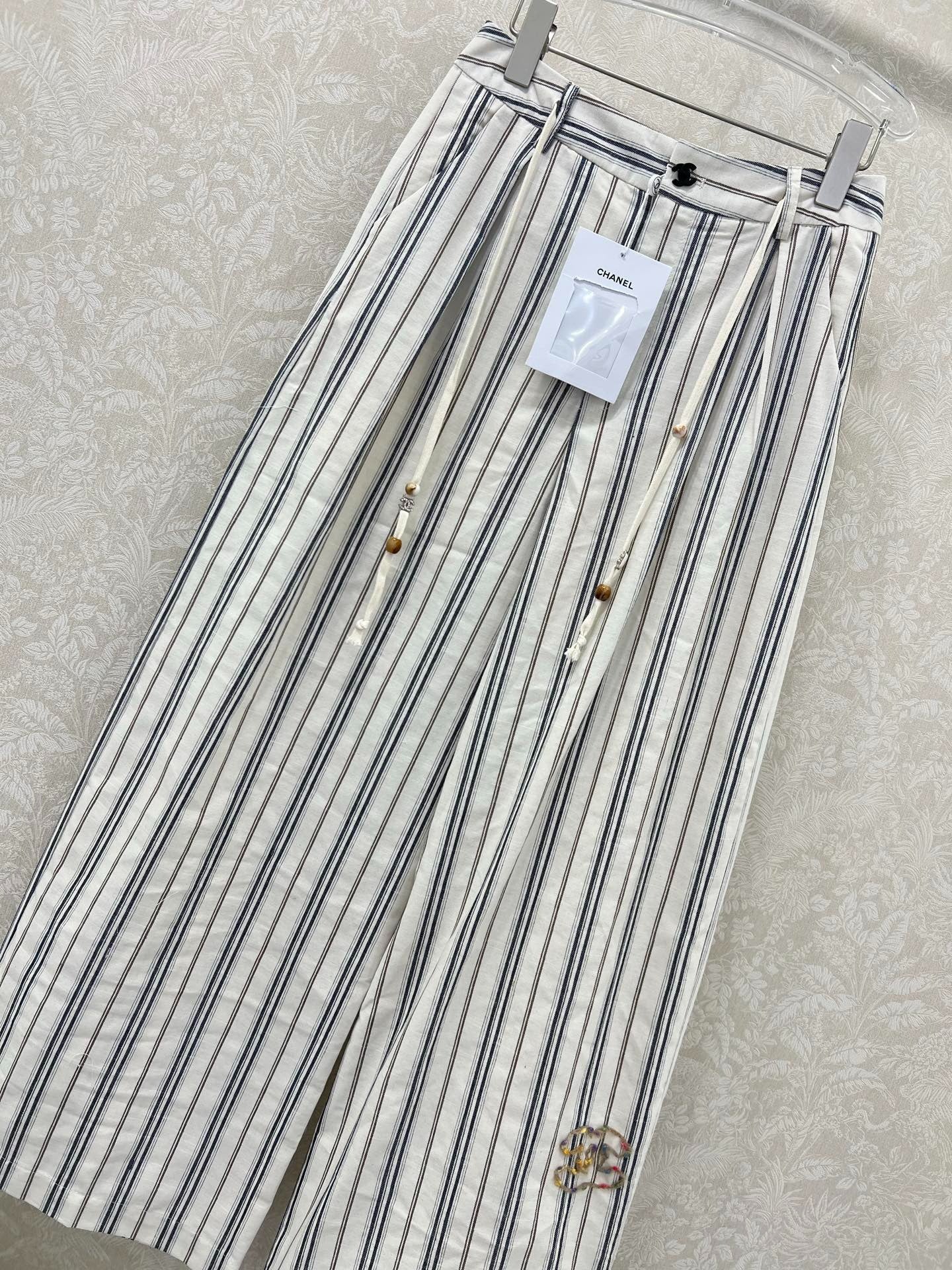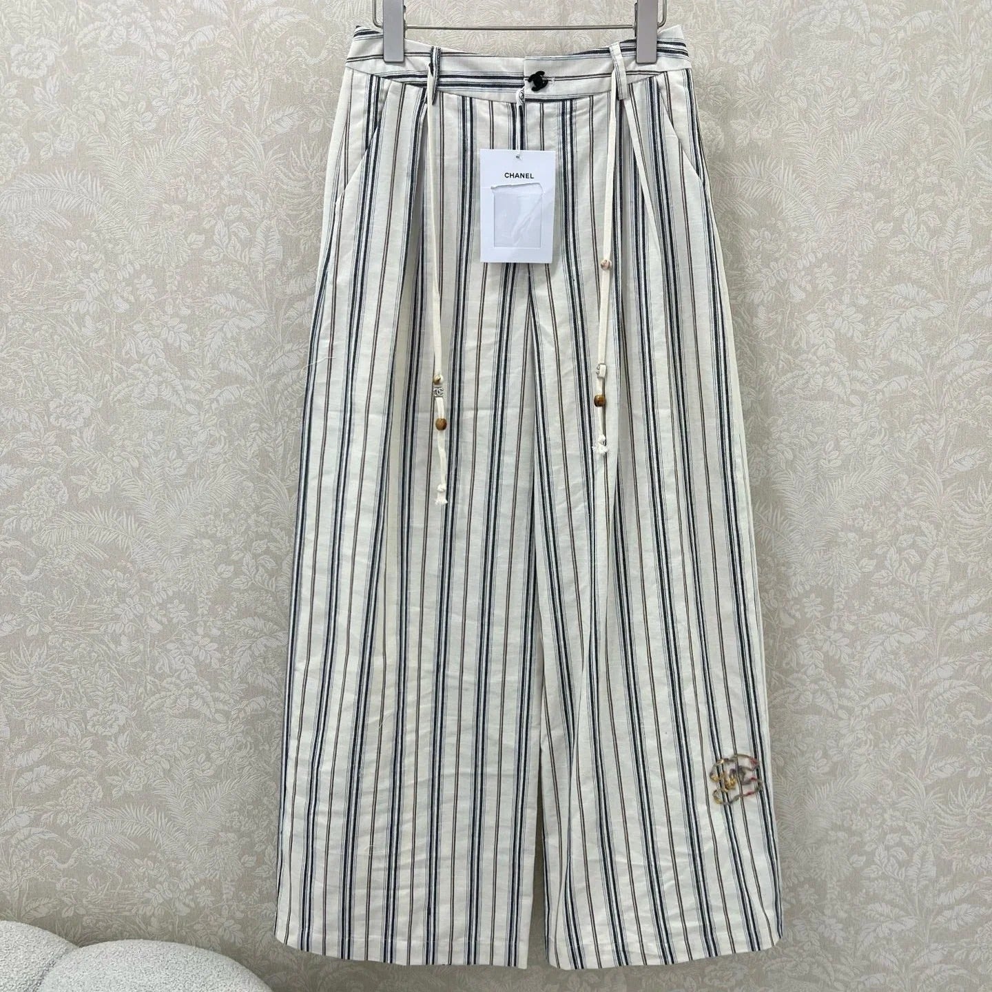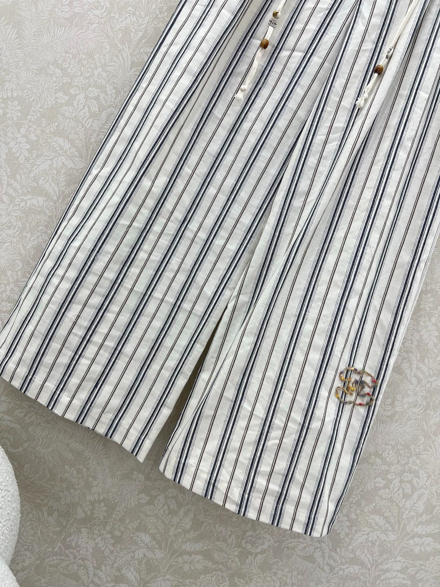 CHANEL STRIPED LINEN WIDE-LEG PANTS 275056