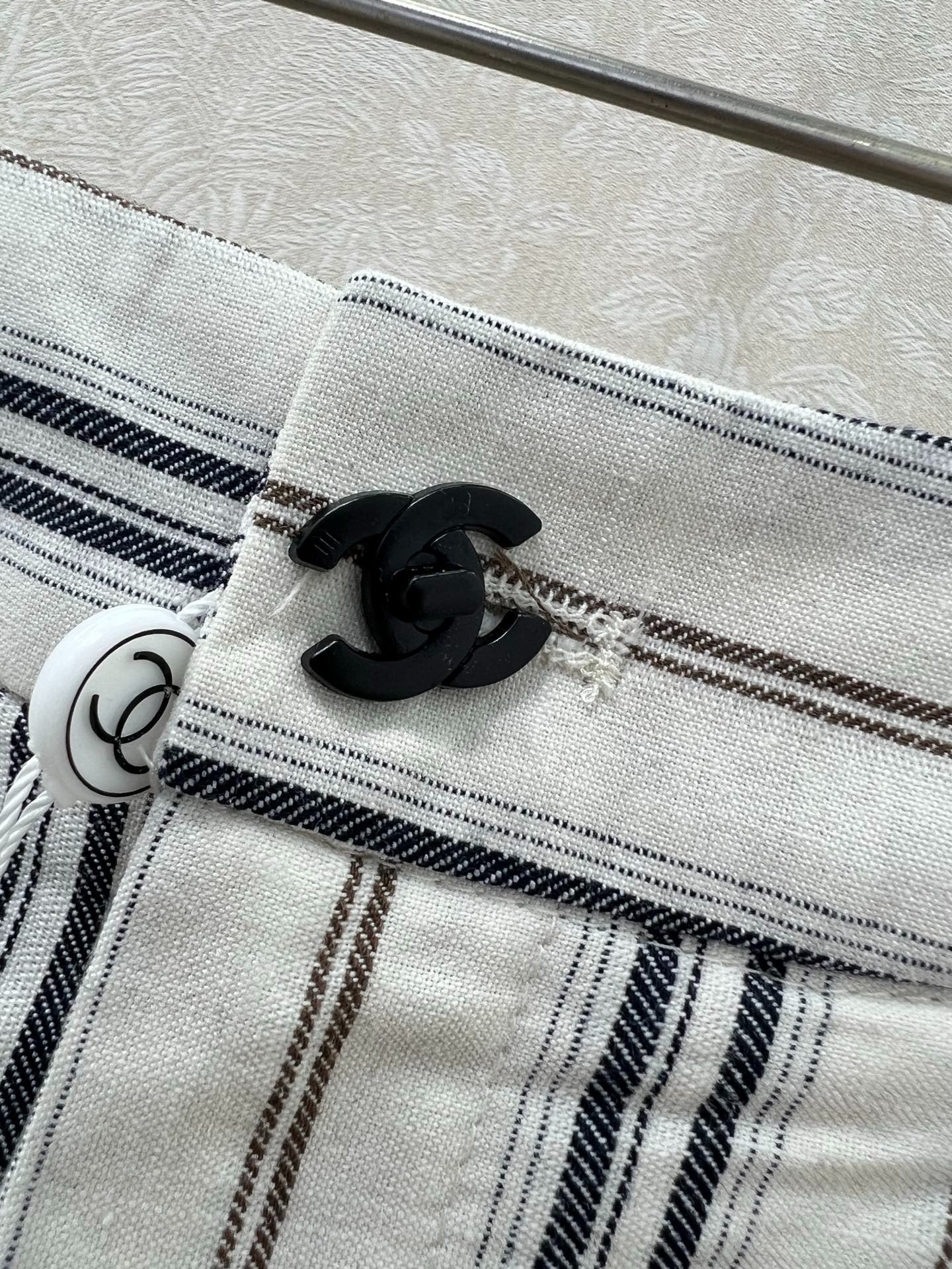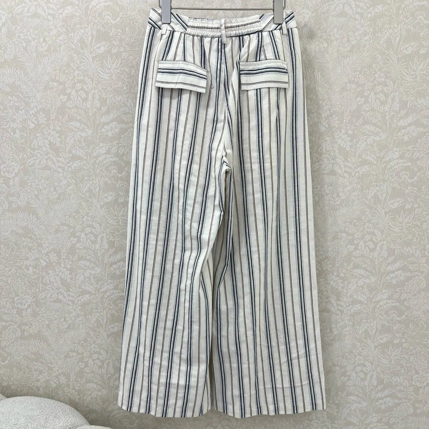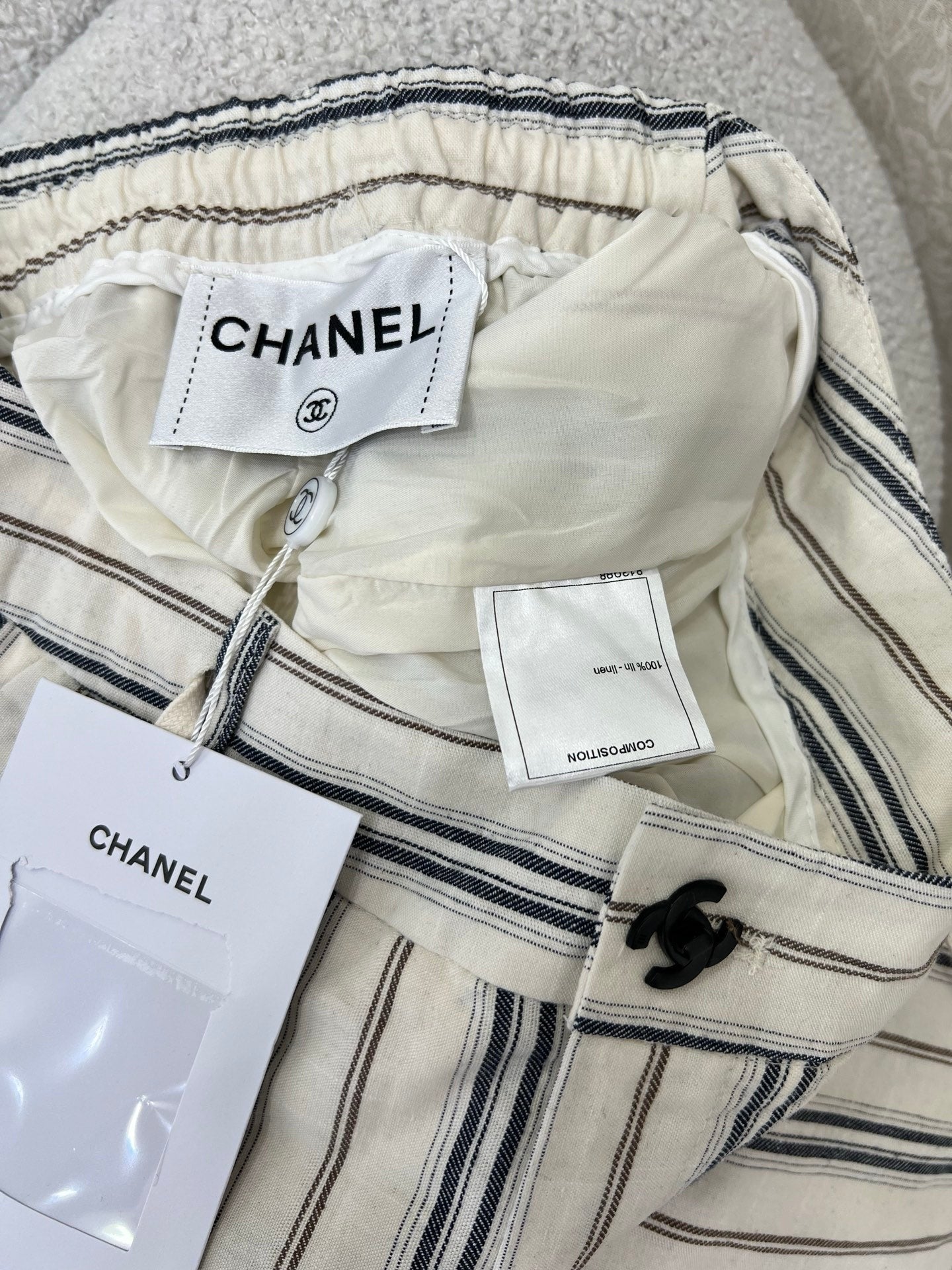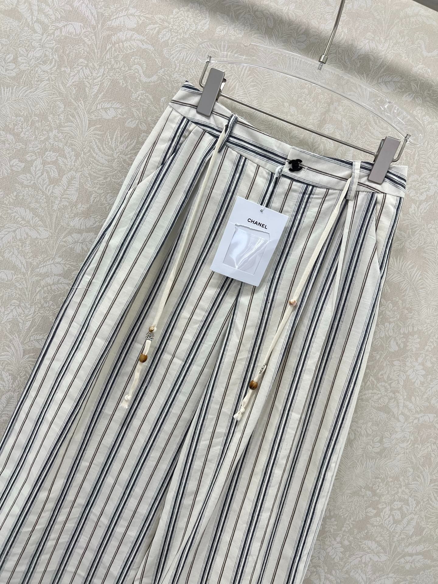 CHANEL STRIPED LINEN WIDE-LEG PANTS 275056