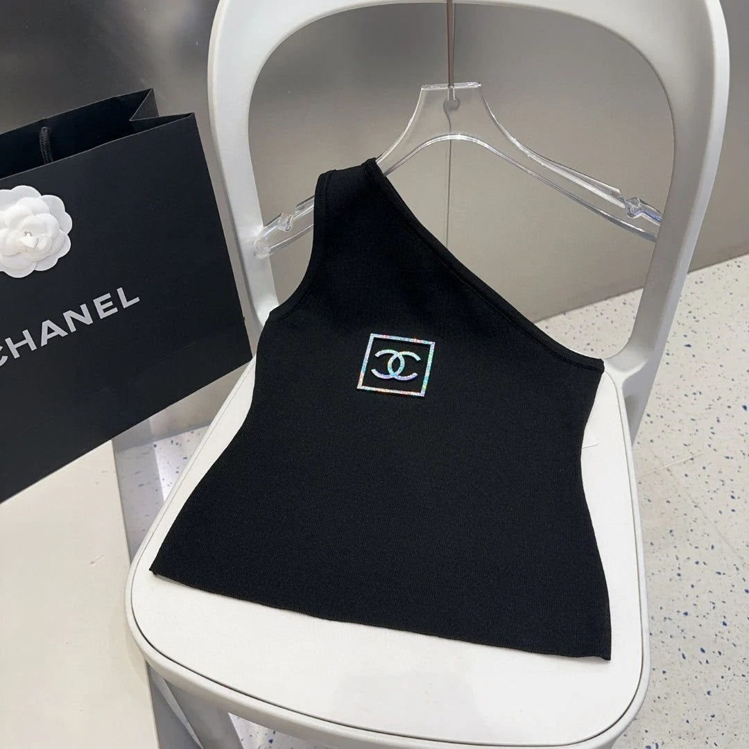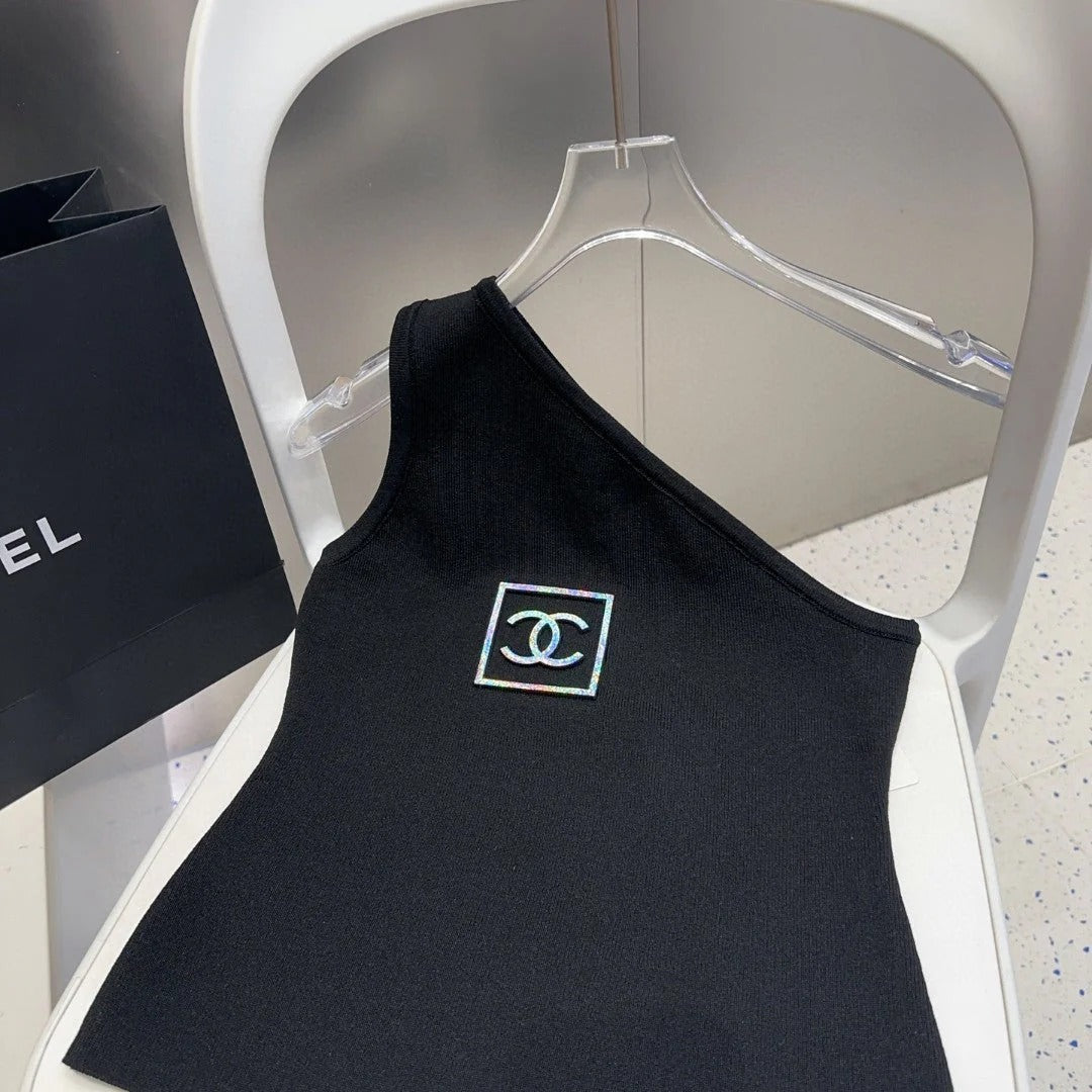 ONE SHOULDER TOP 624509 IN BLACK COTTON MULTICOLOR LOGO