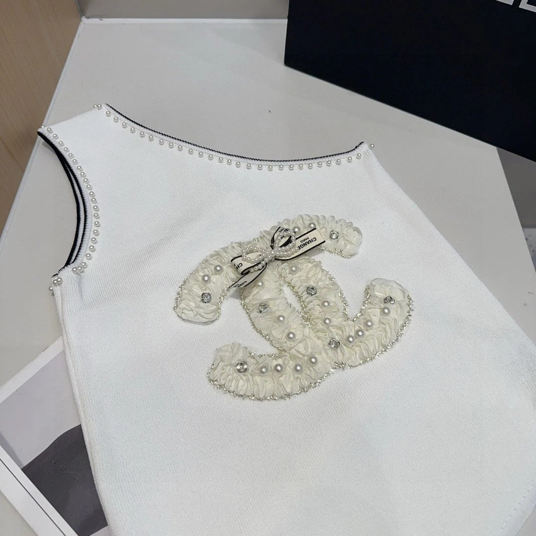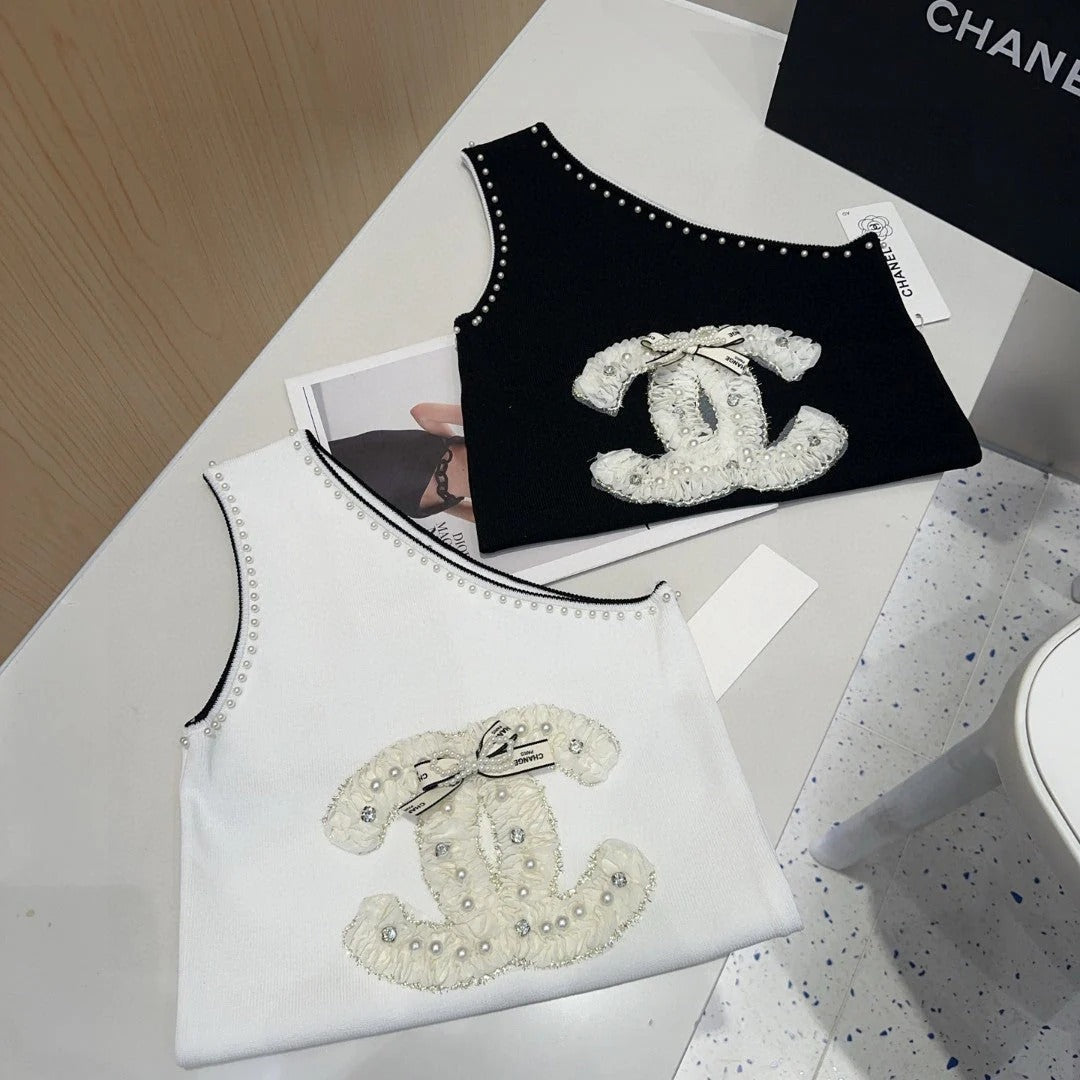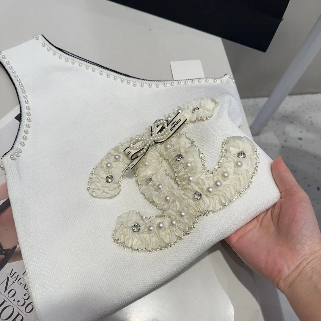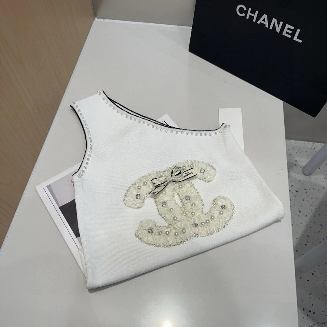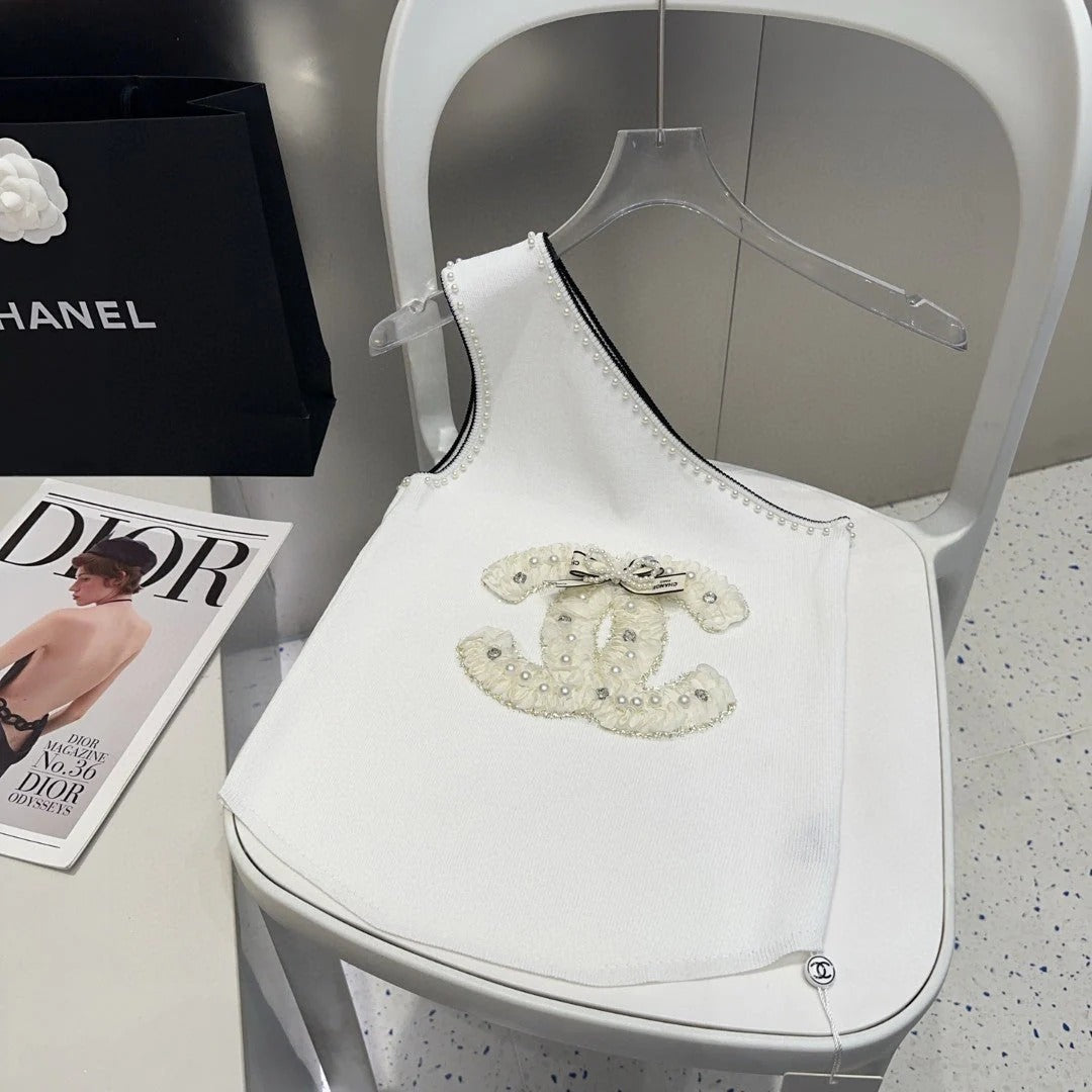 ONE SHOULDER TOP 643220 IN WHITE COTTON EMBOSSED PEARL