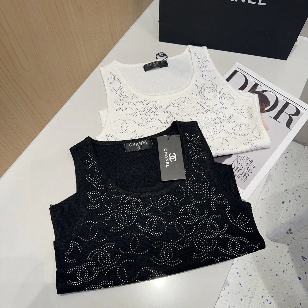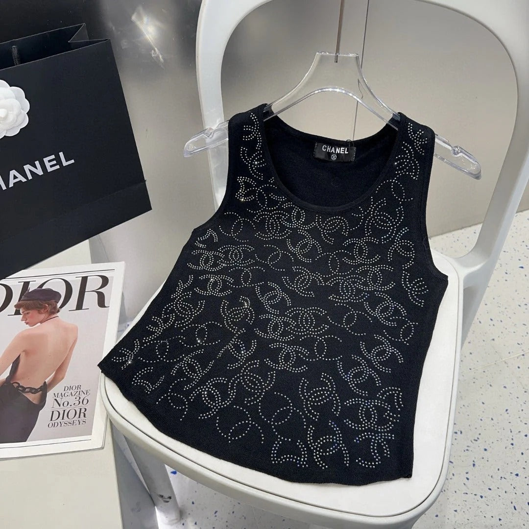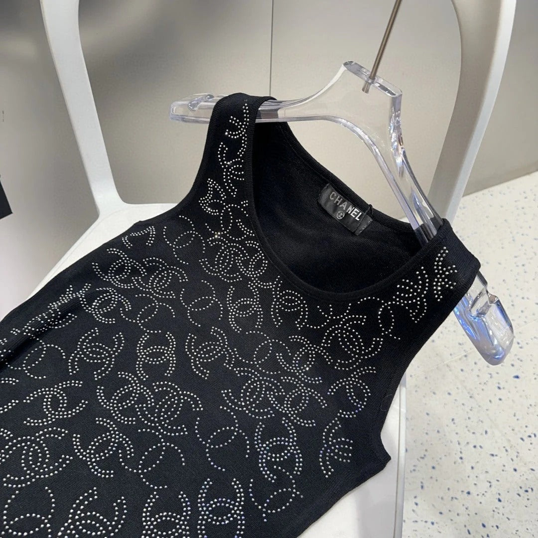 SLEEVELESS TOP 643223 IN BLACK COTTON EMBOSSED LOGO
