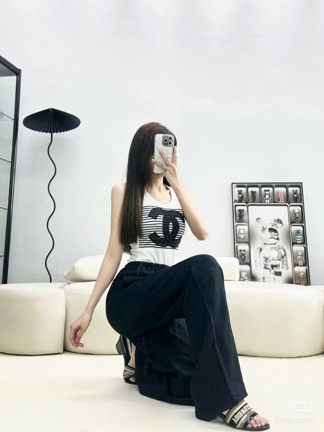 TANK TOP 633199 IN BLACK AND WHITE COTTON