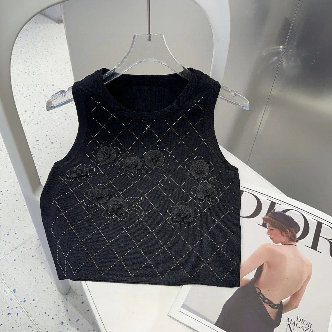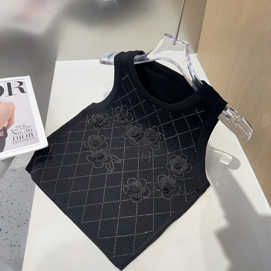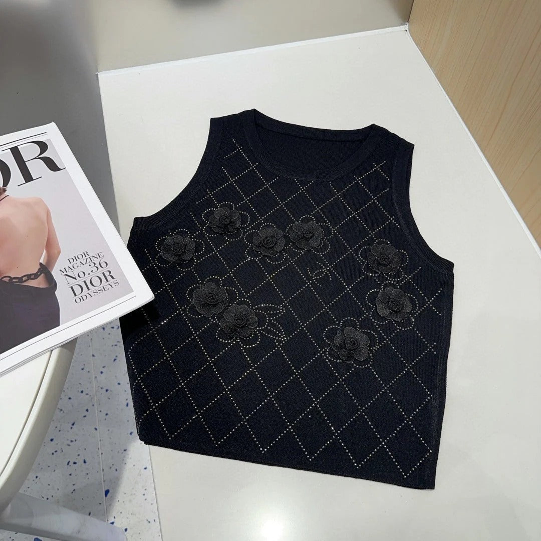 TANK TOP 633205 IN BLACK COTTON RIBBED KNIT EMBOSSED FLORAL