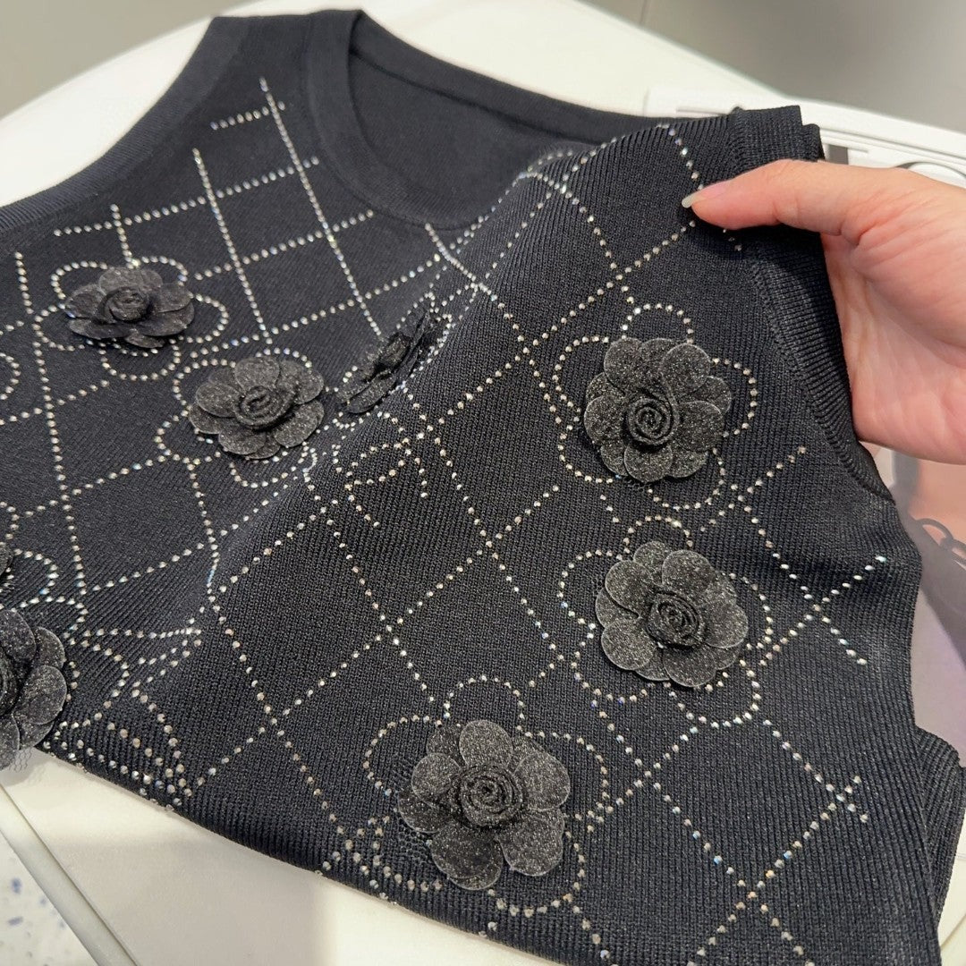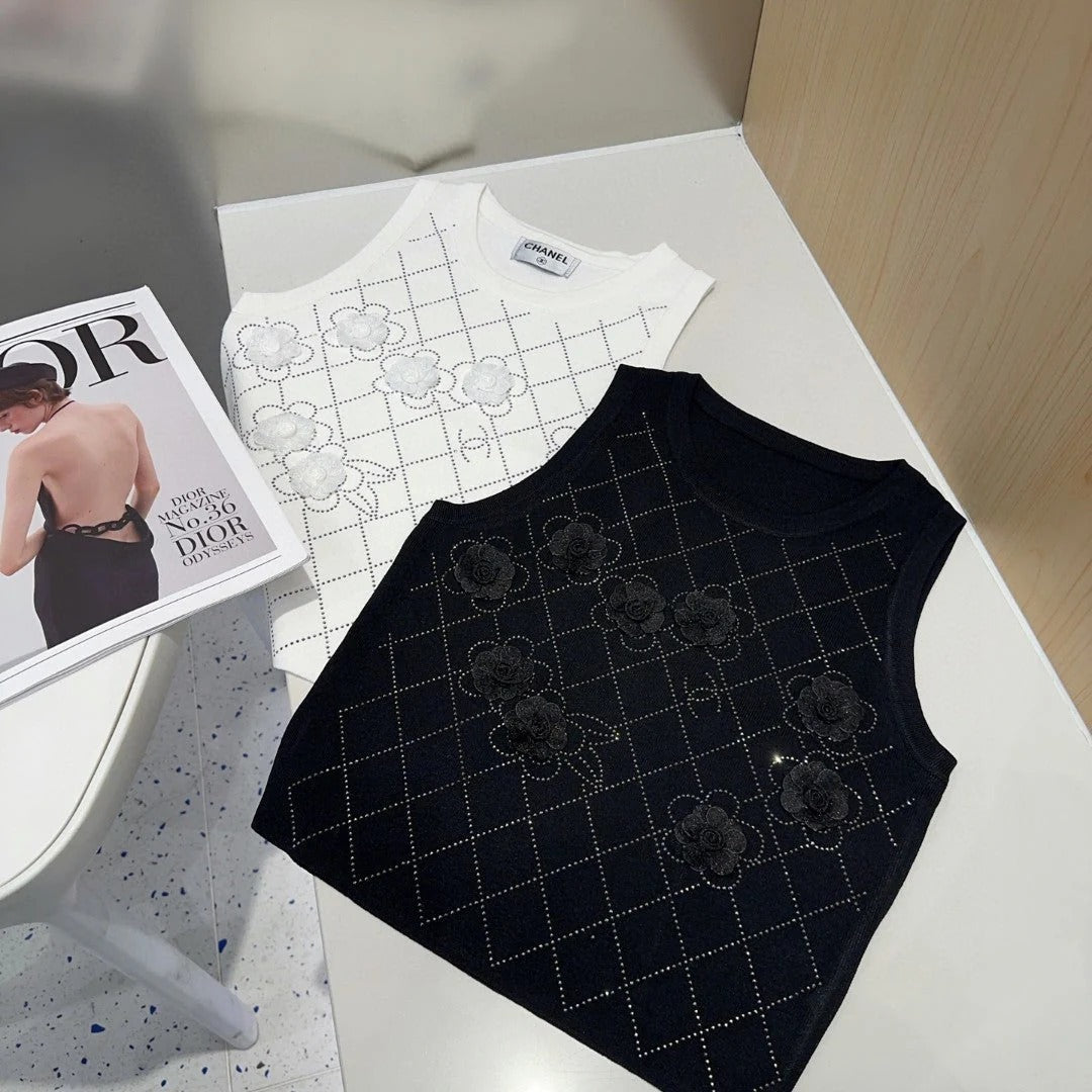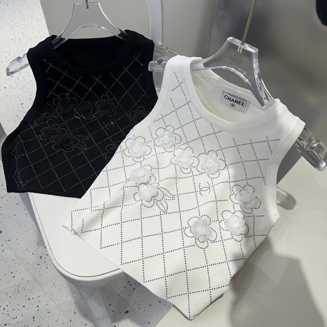 TANK TOP 633205 IN BLACK COTTON RIBBED KNIT EMBOSSED FLORAL