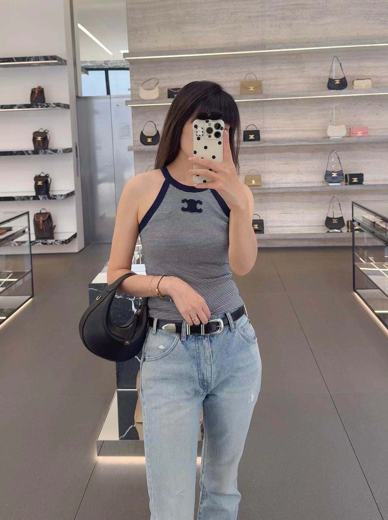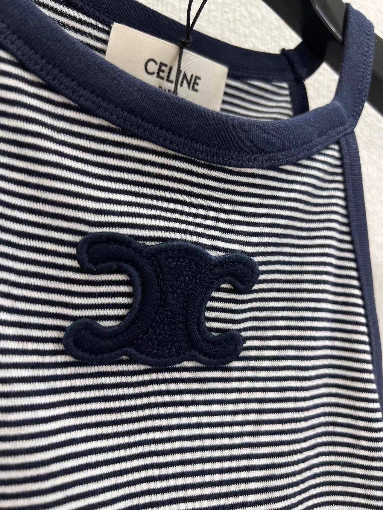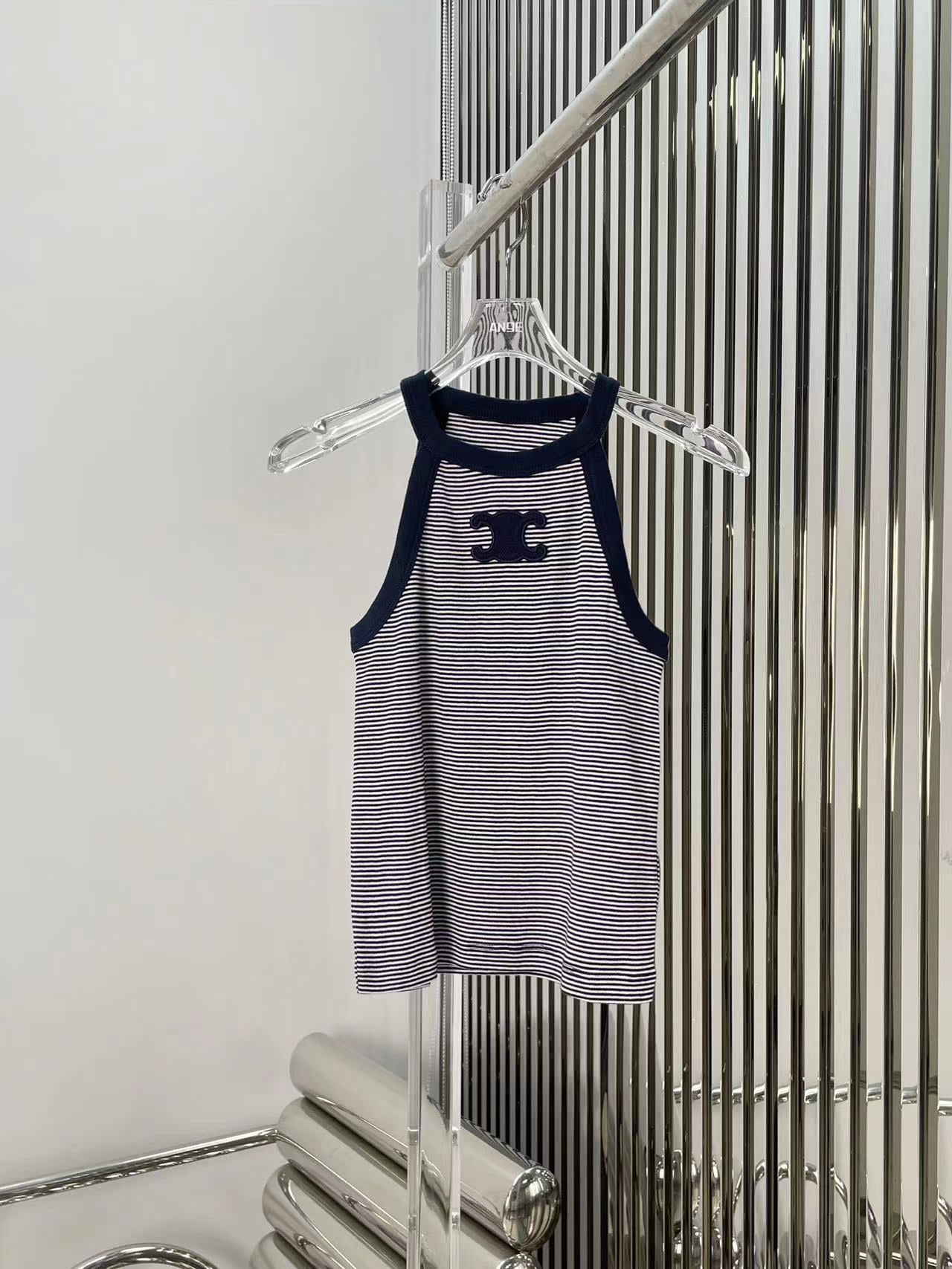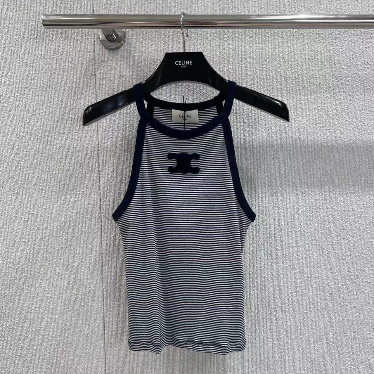 Triomphe Tank Top In Striped Jersey White Mix Navy Cotton