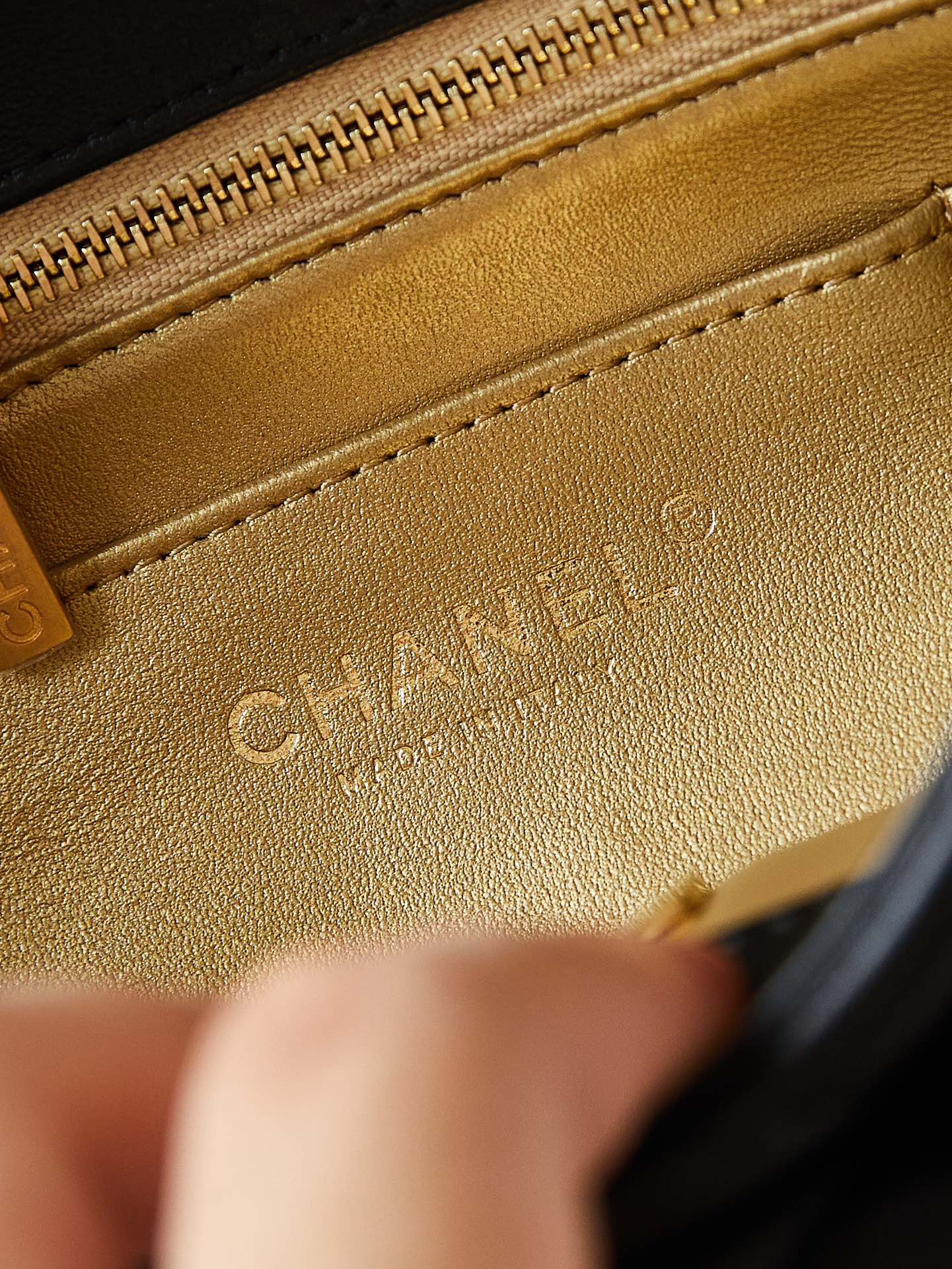 24a small flap bag 23cm black lambskin pearl and gold hardware