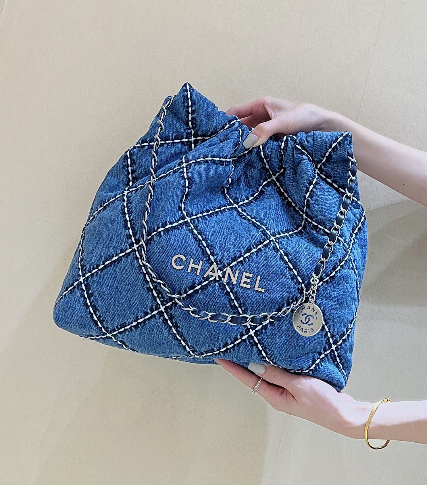 cc 24p stitched denim silver hardware