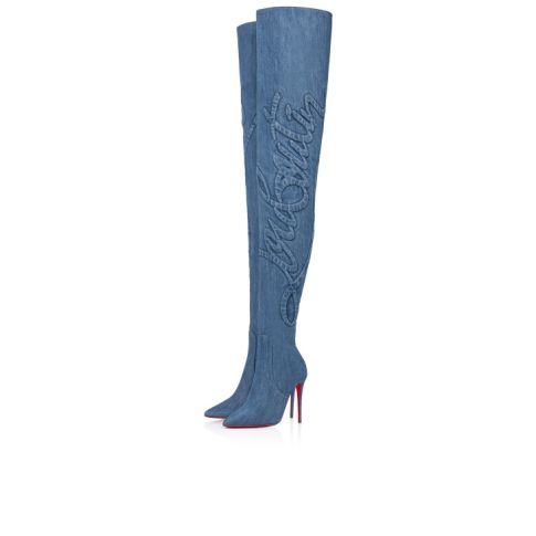 CL Kate Botta Alta Loubijeans 100 Mm Boots Denim Louboutin Embossed