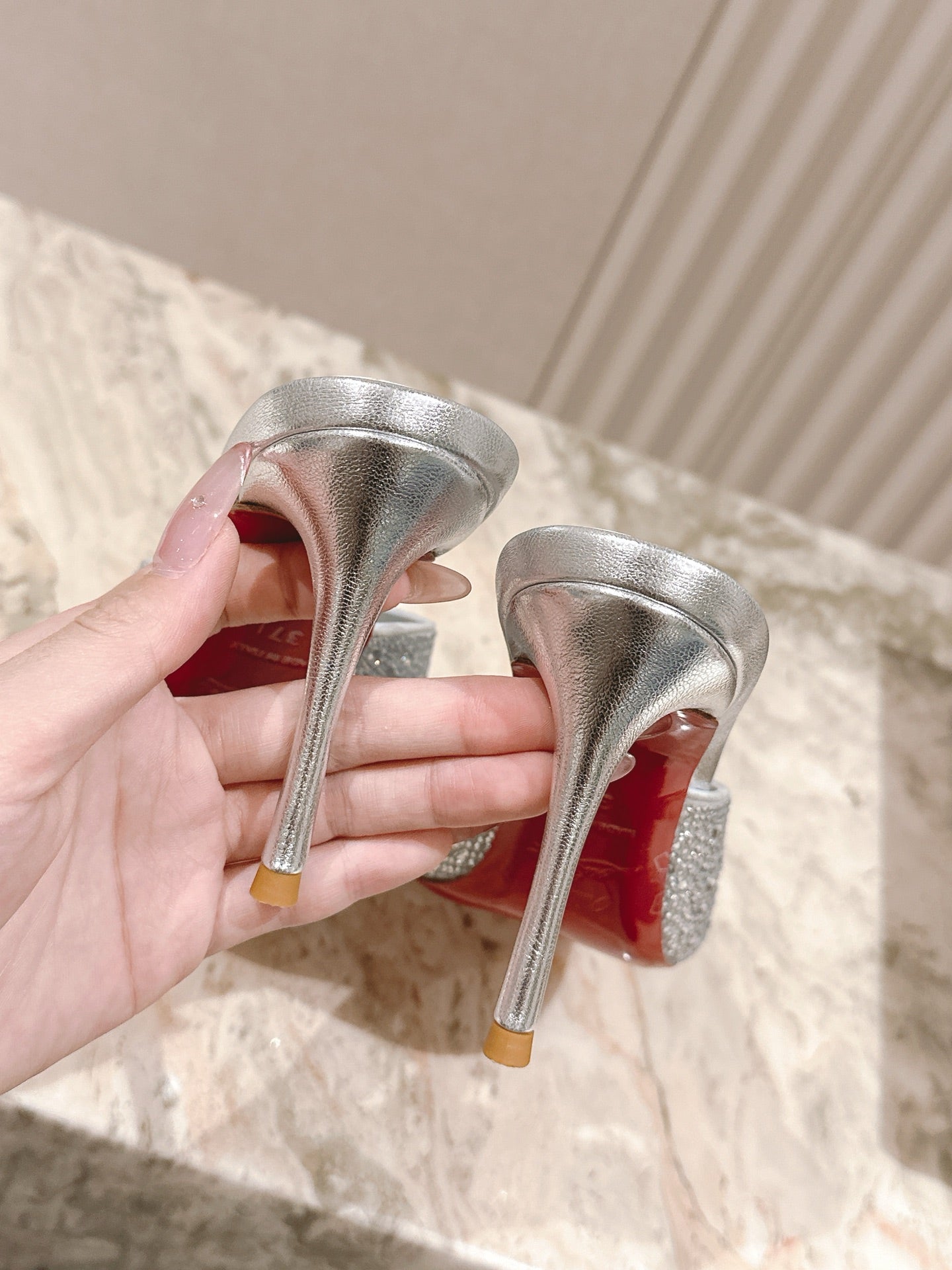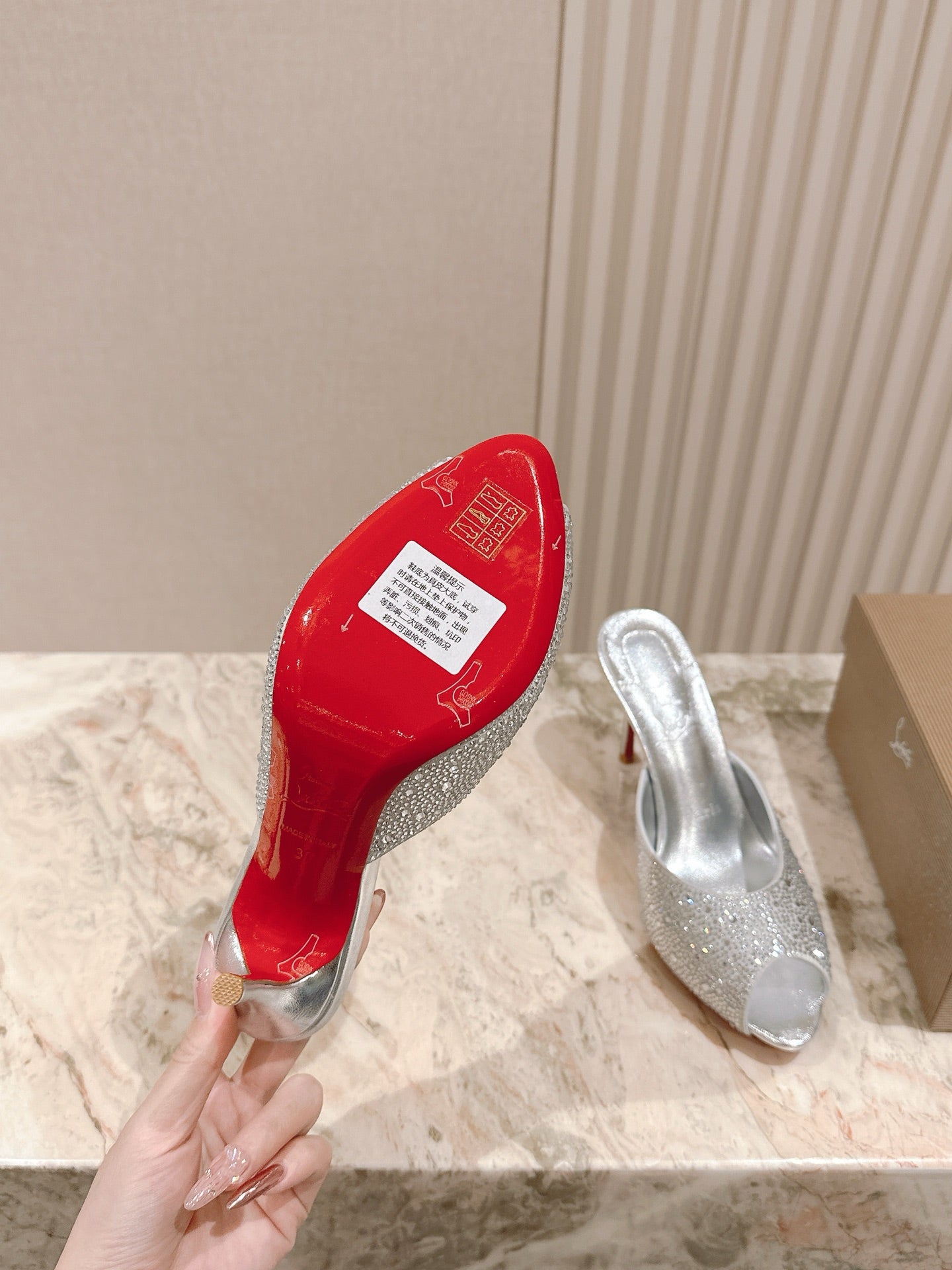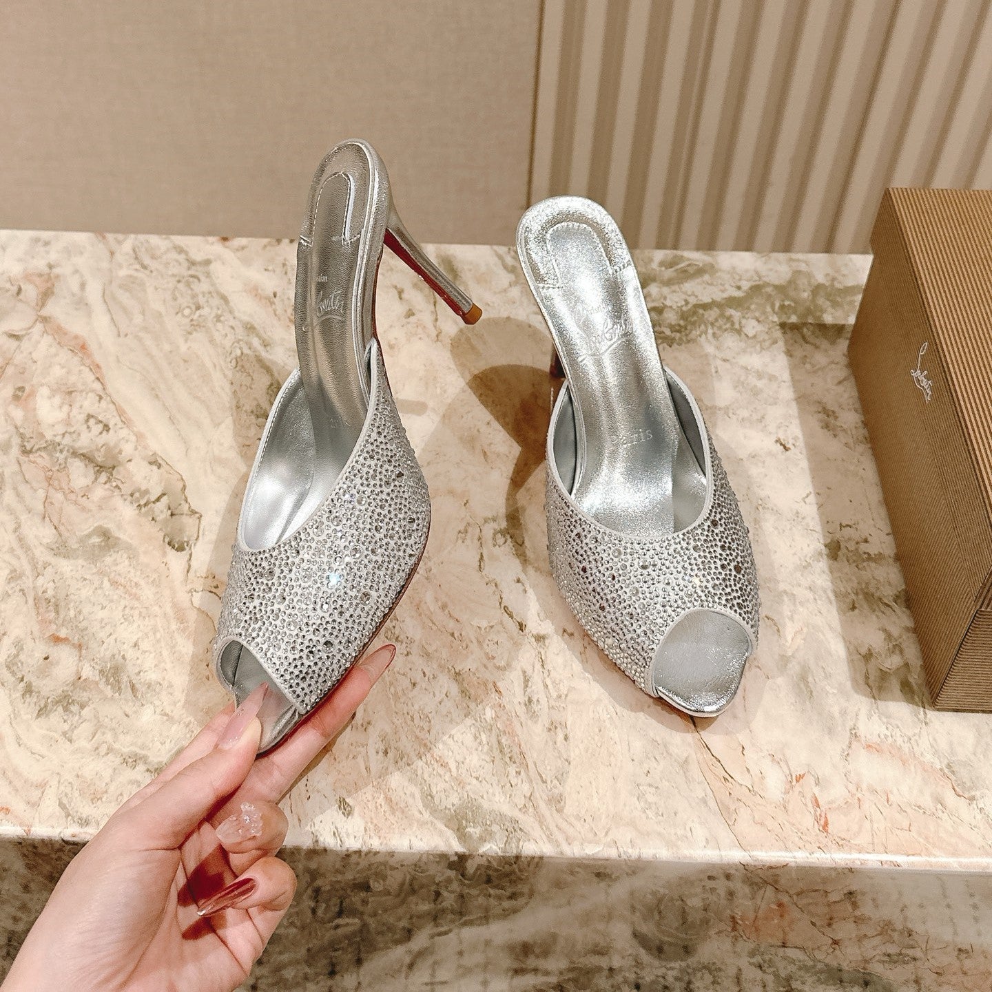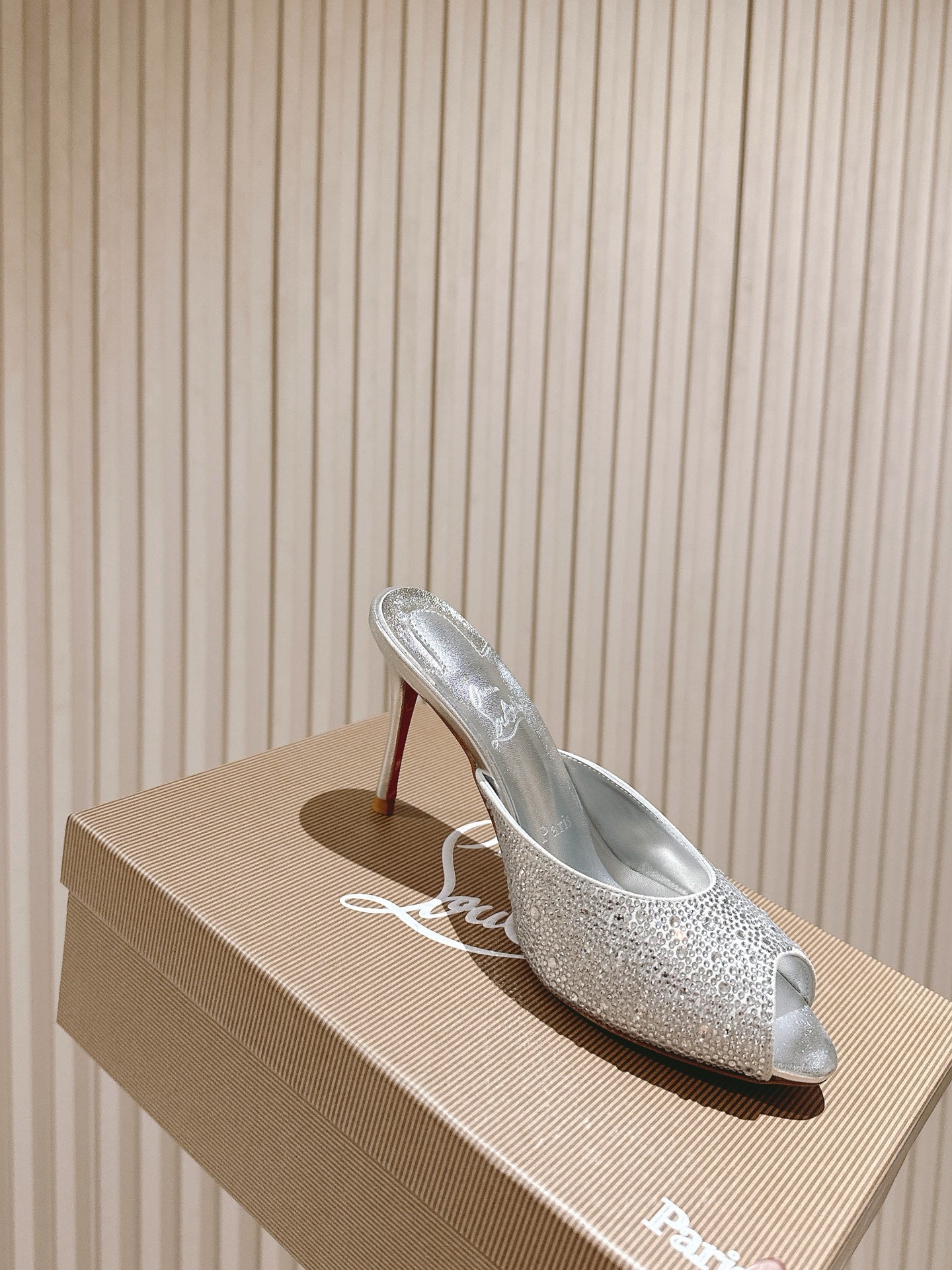CL 25s Me Dolly Sandal Mule Heel Pump 85mm Sliver Sheepskin 446688