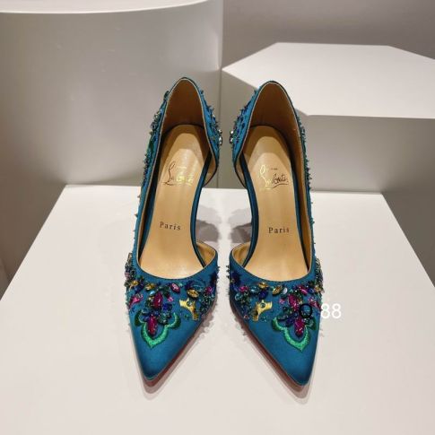 CL Brodiriza Embellished D'orsay Pumps 100mm Satin Blue