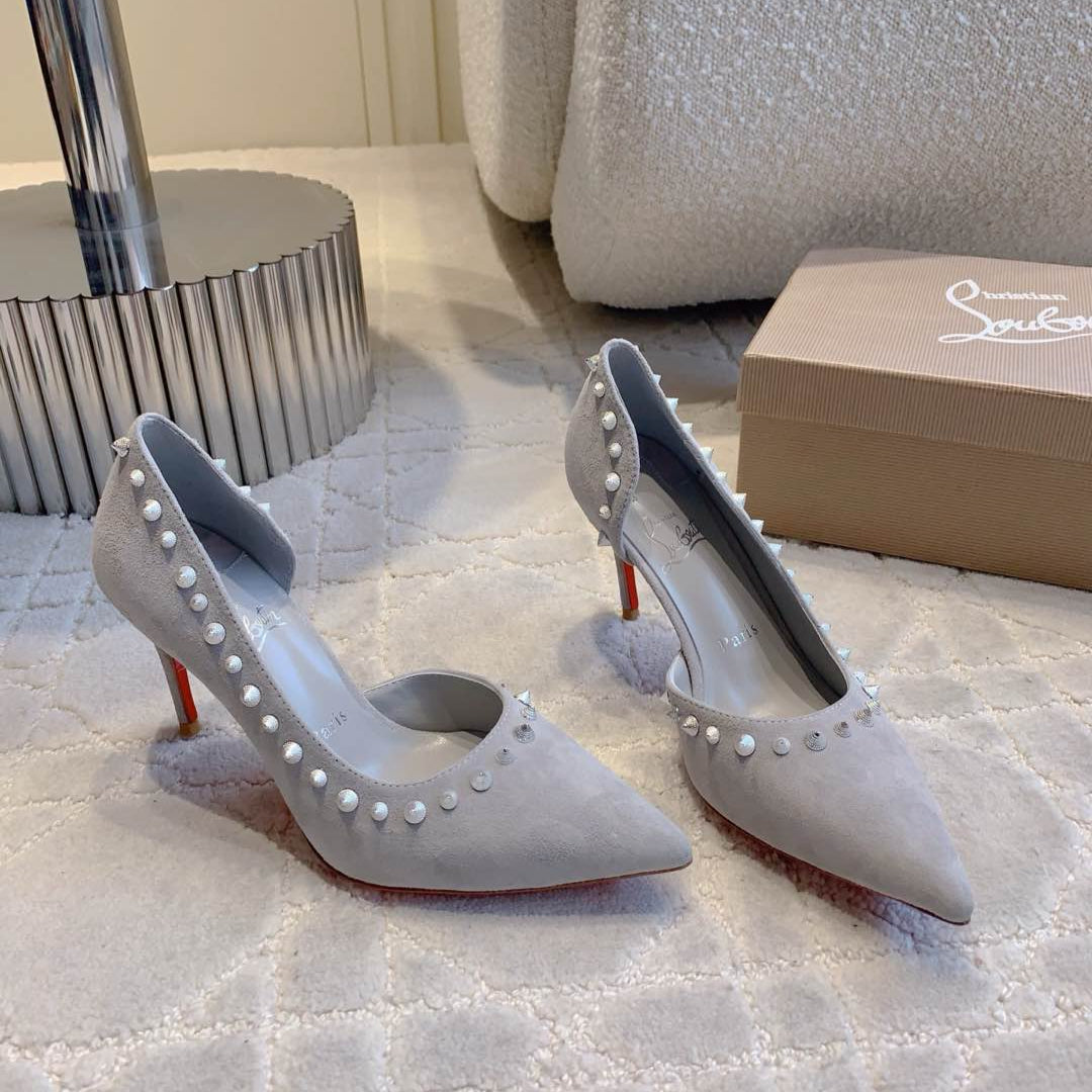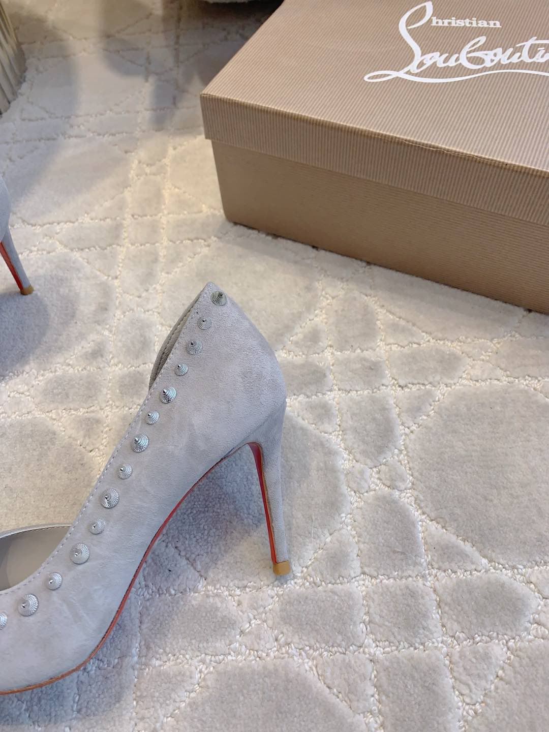CL Irishell 85 Studded d'Orsay Pumps Light Pewter Suede 177129