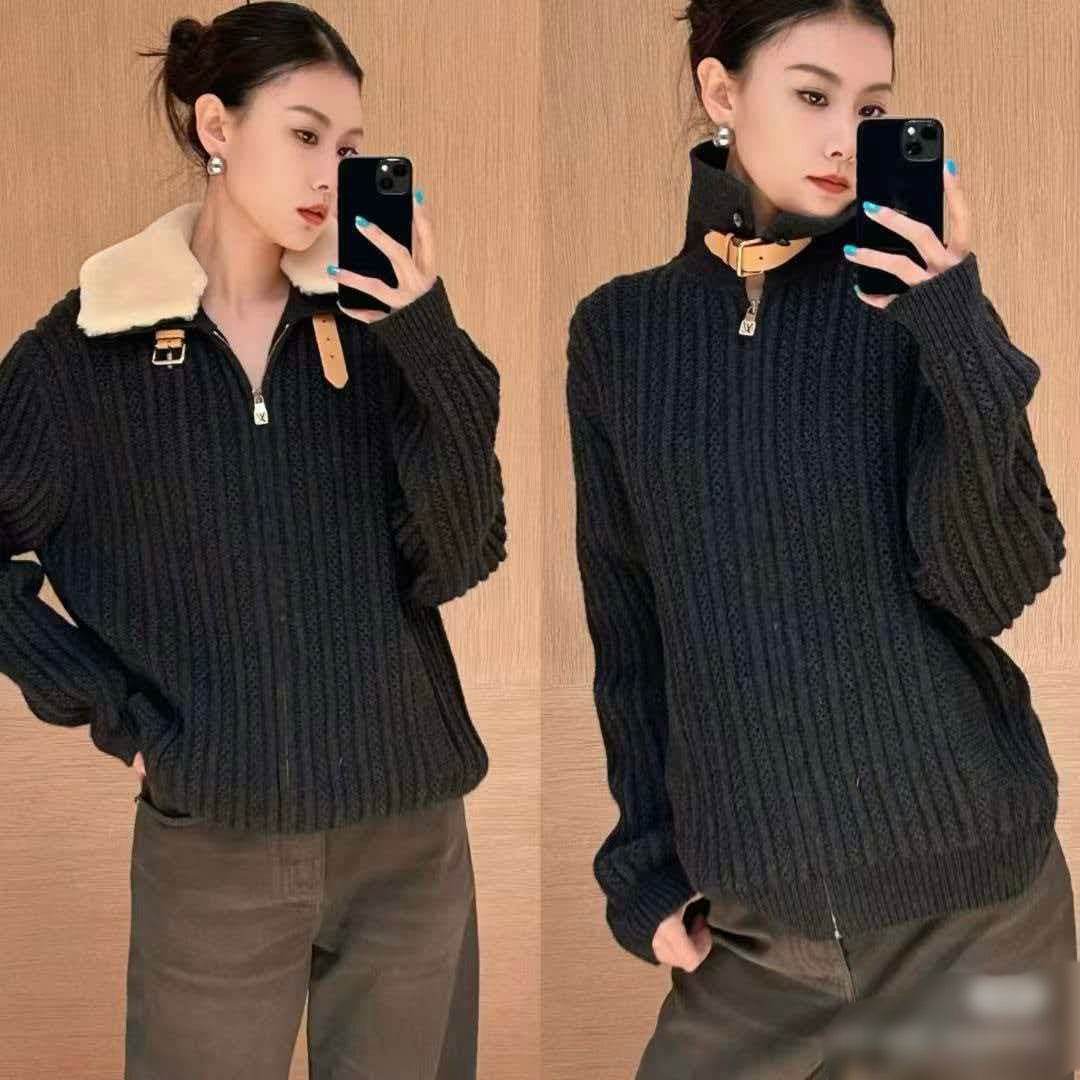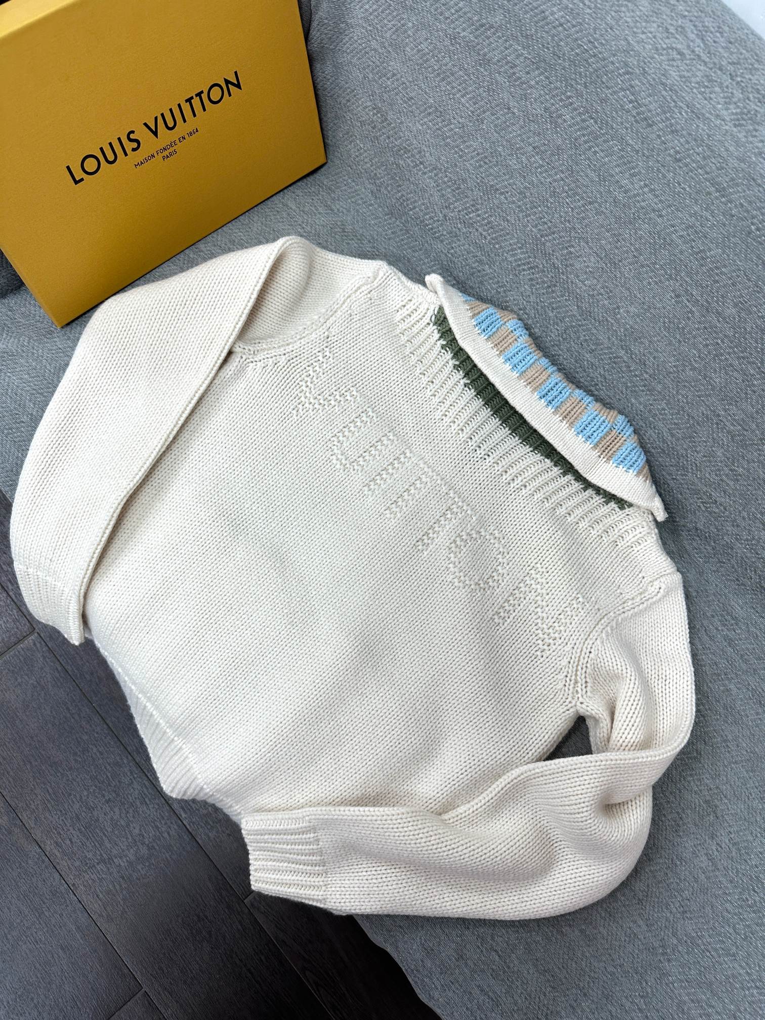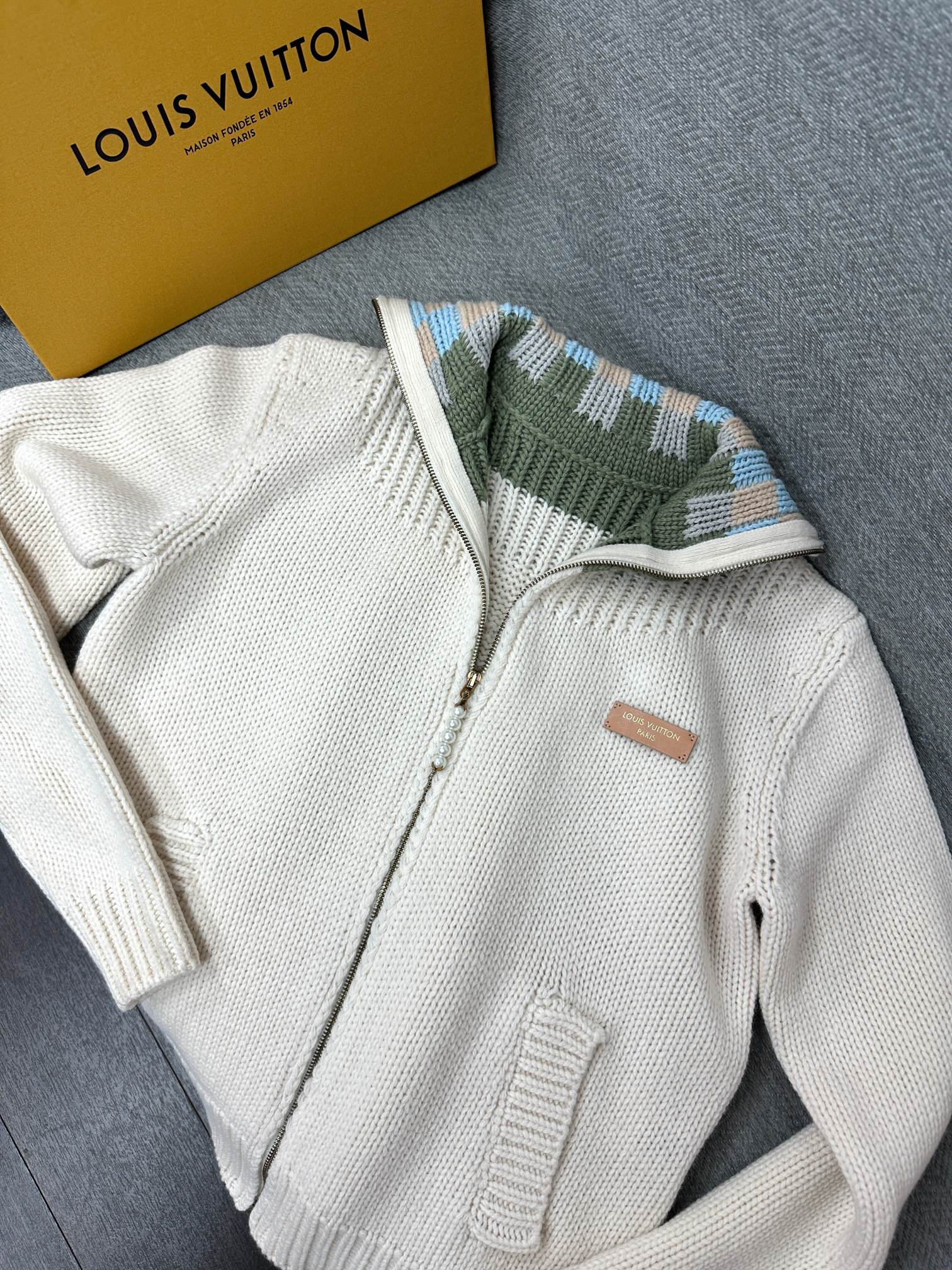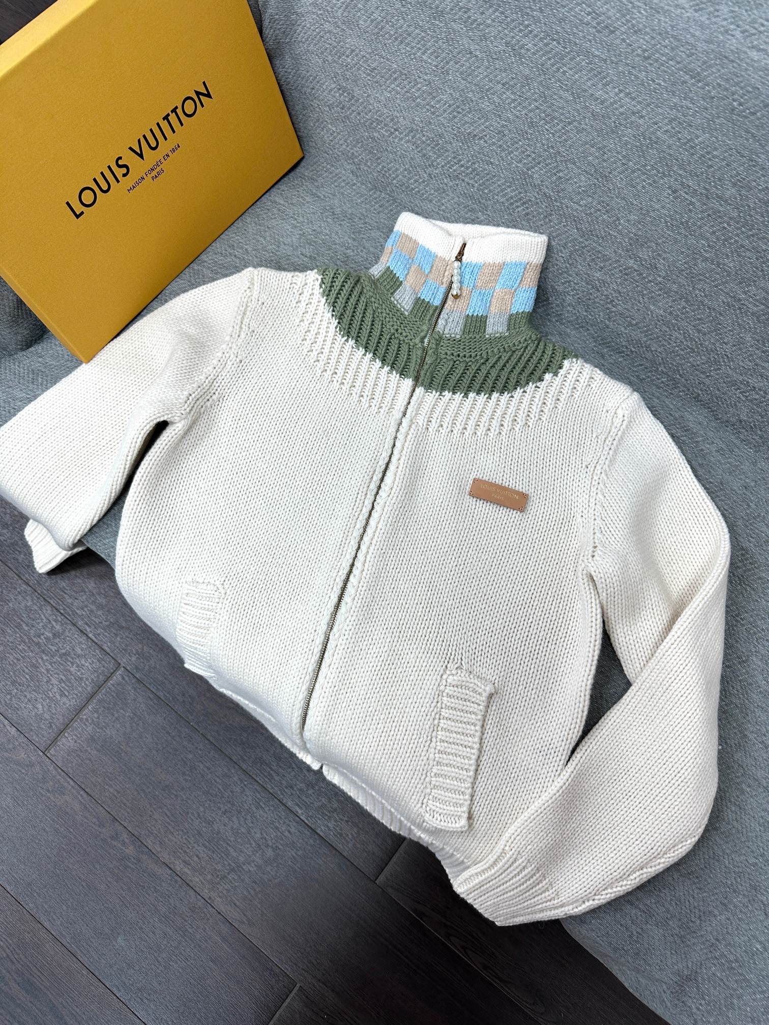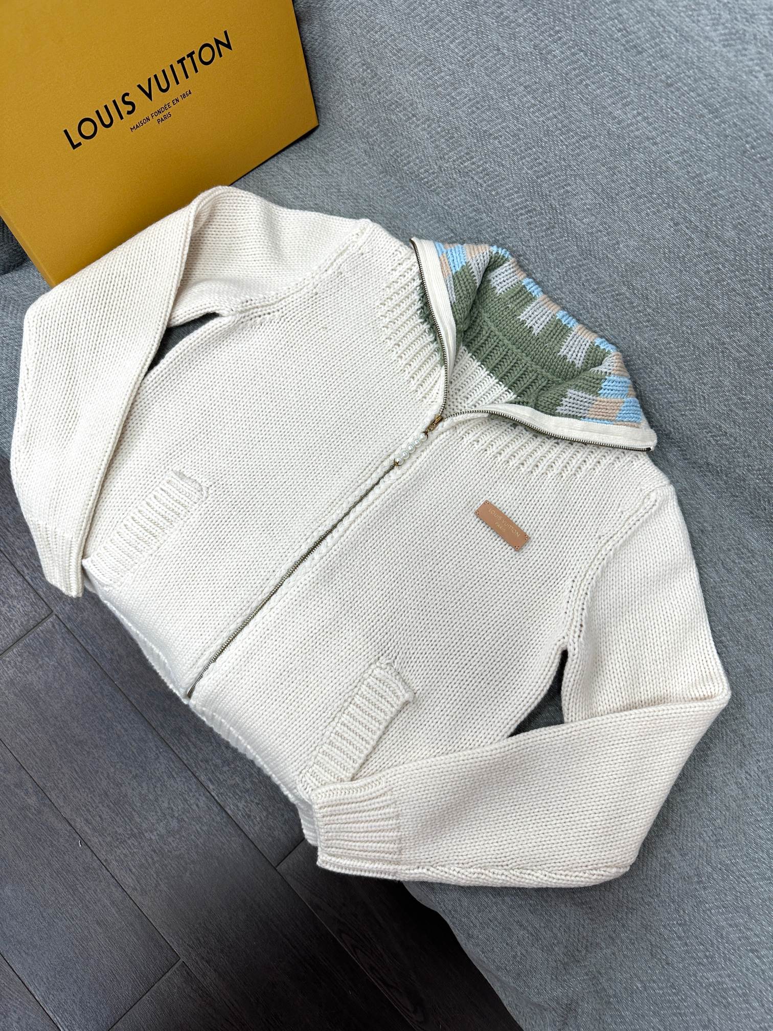 LV Zipped Intarsia Track Top Milky White Lambswool