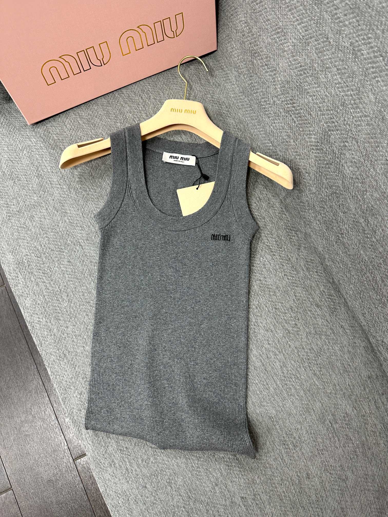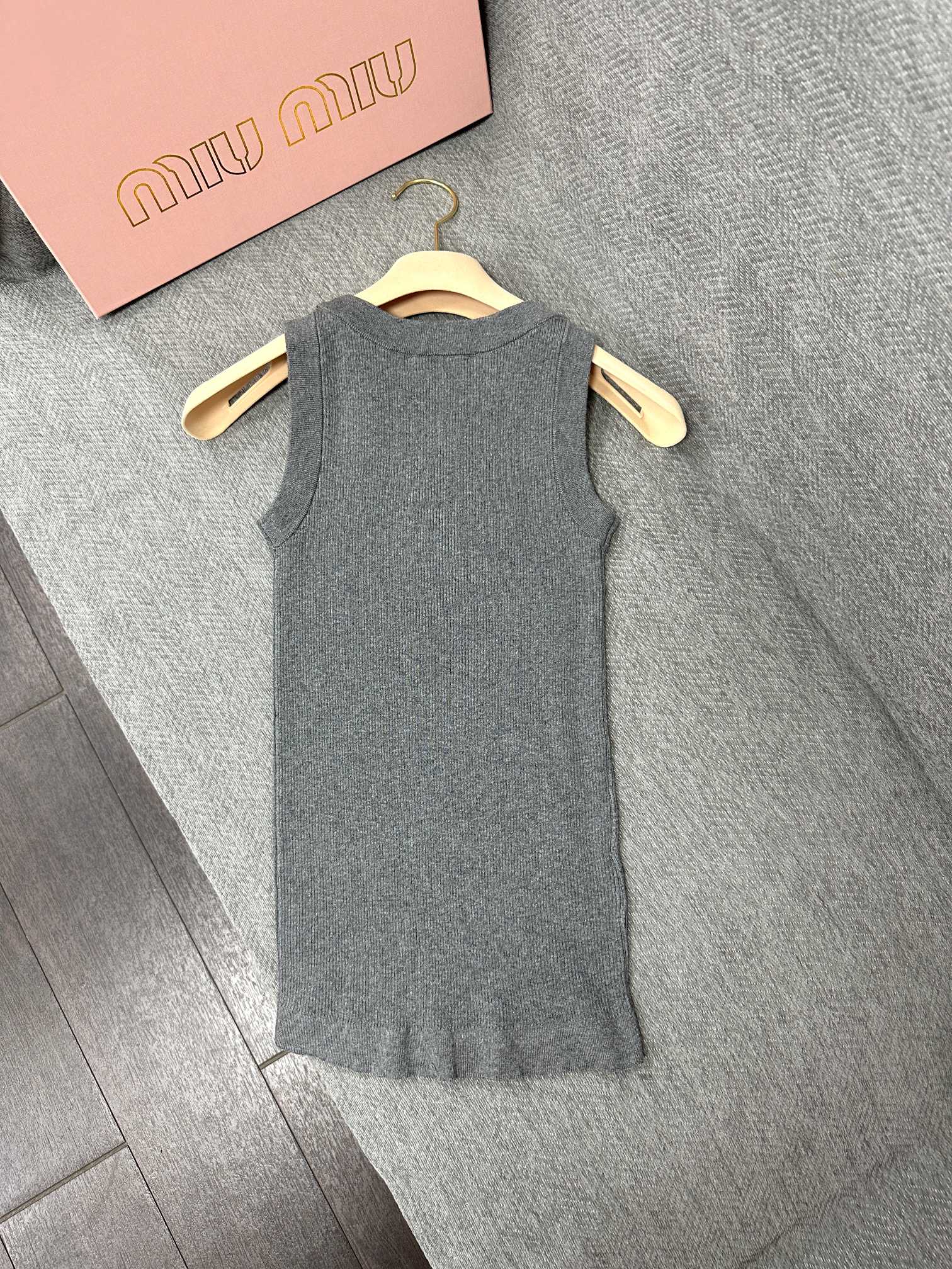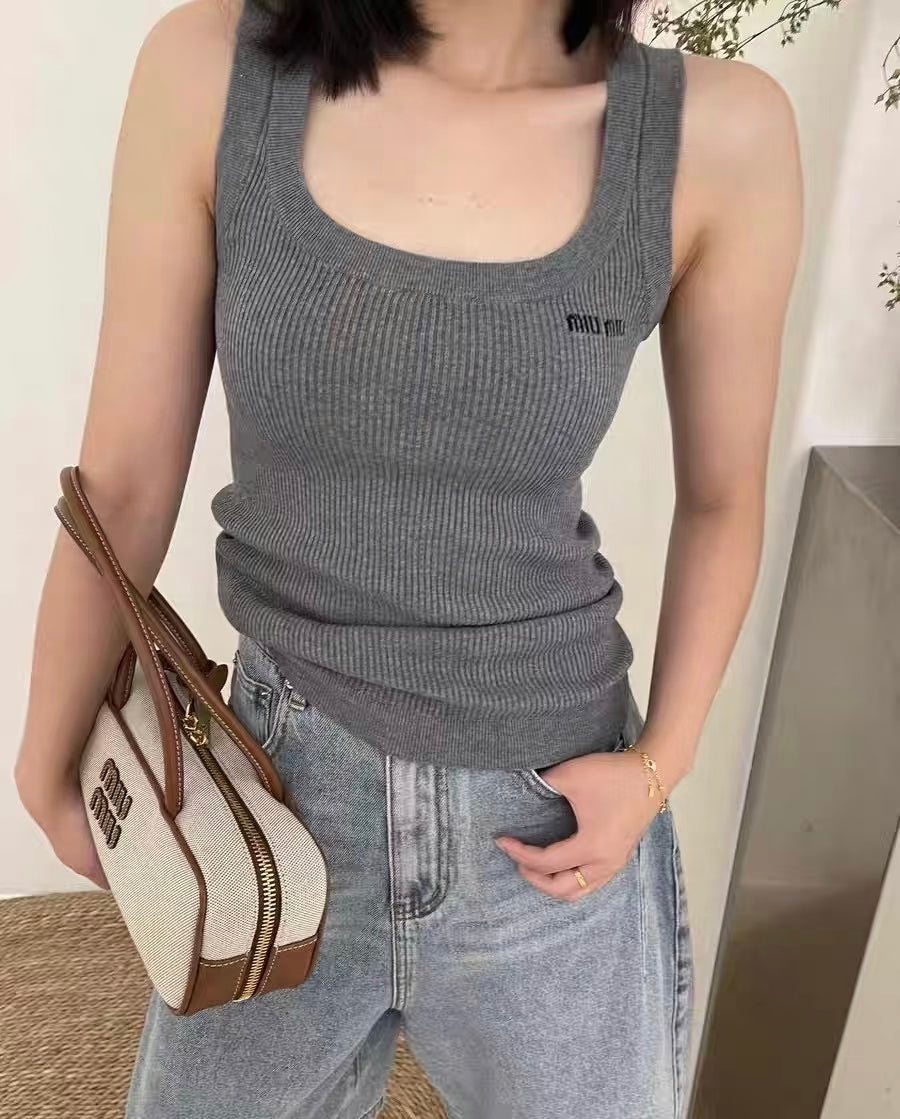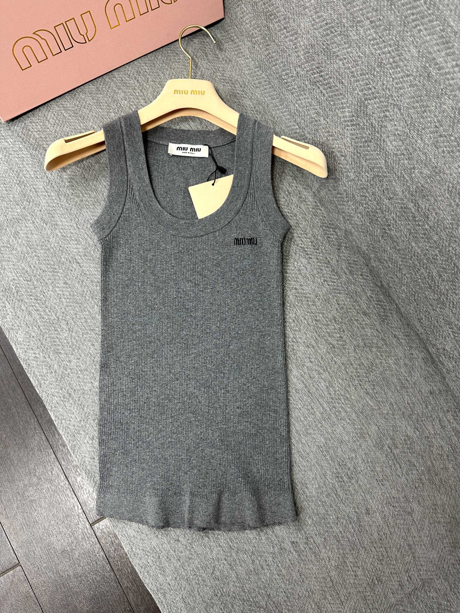 Miu Sequin Sleeveless Top Beige Wool 345347