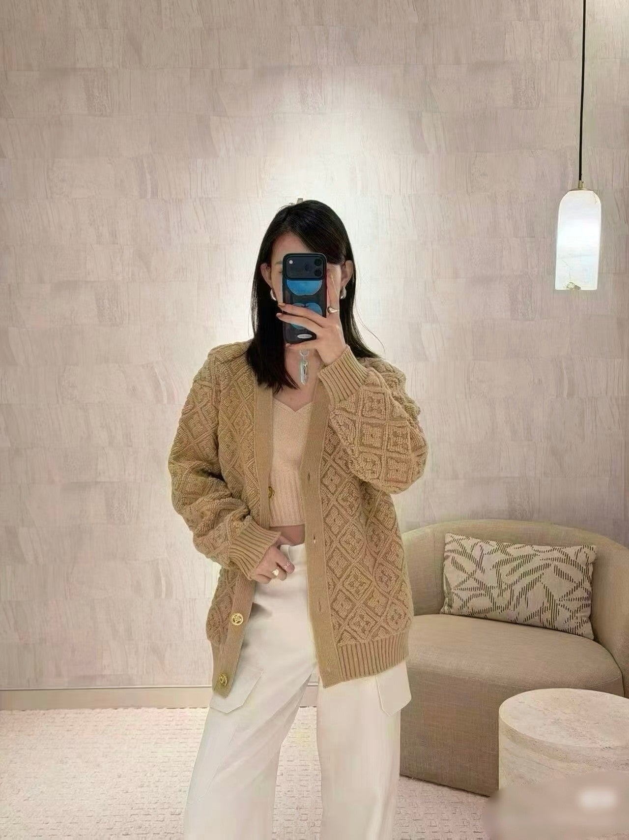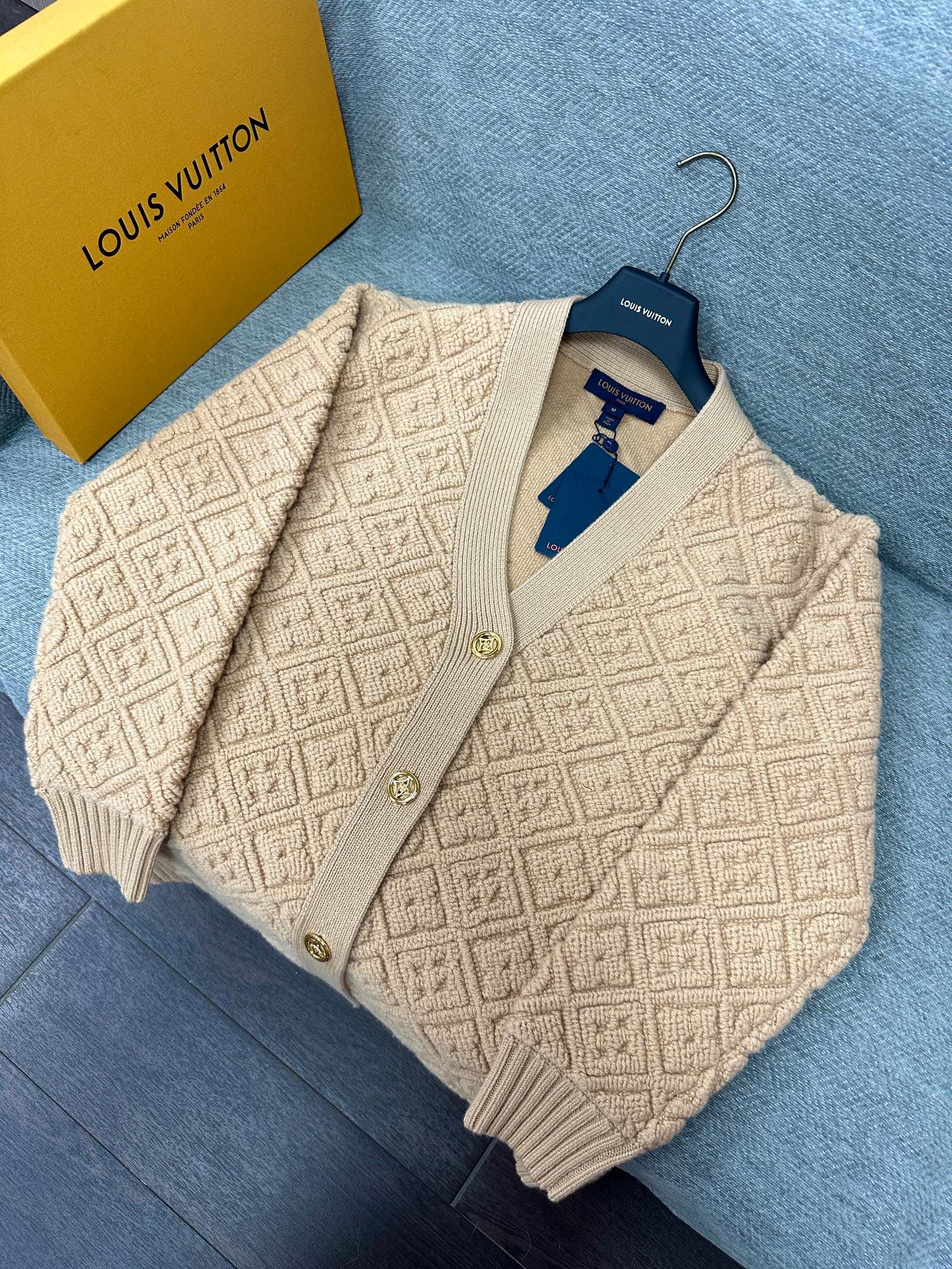 LV Terry Cloth V-Neck Cardigan Beige Wool 345320
