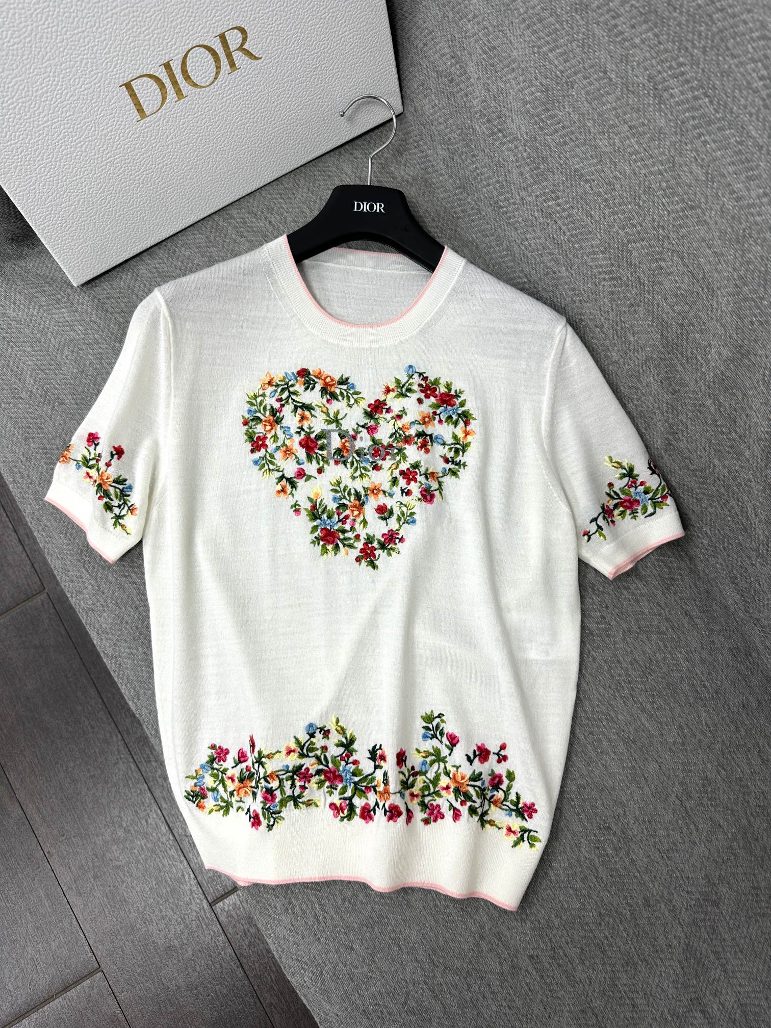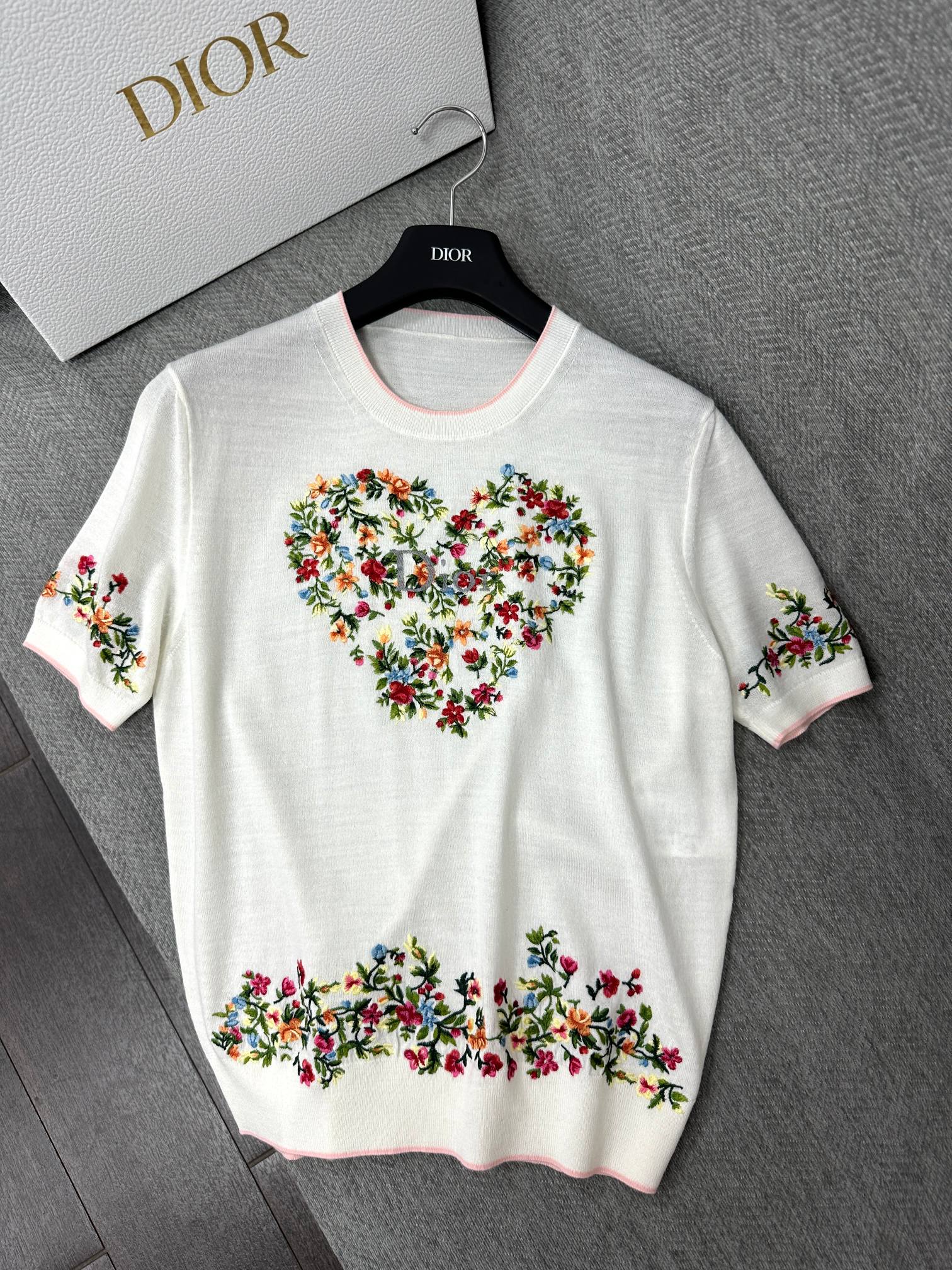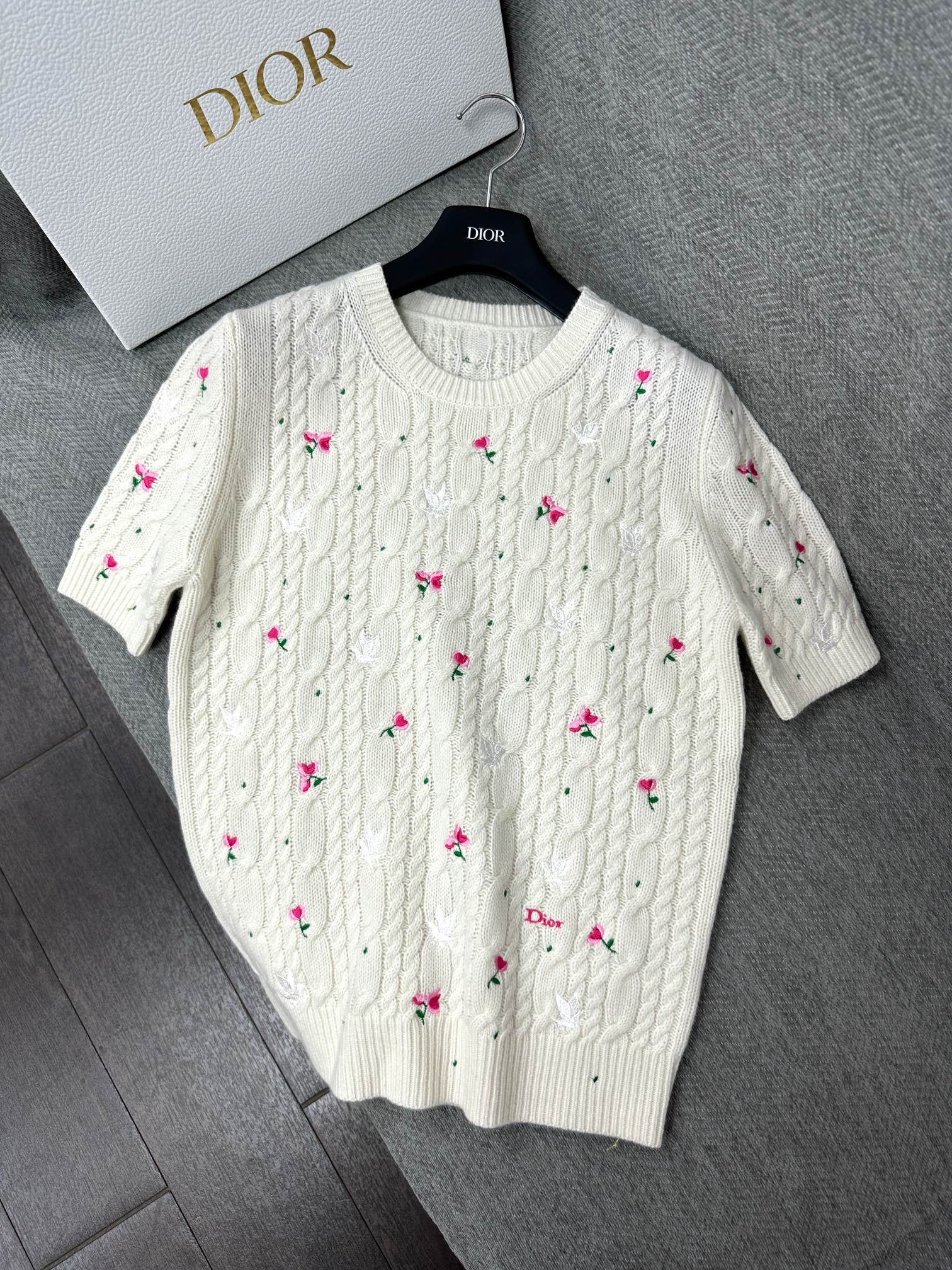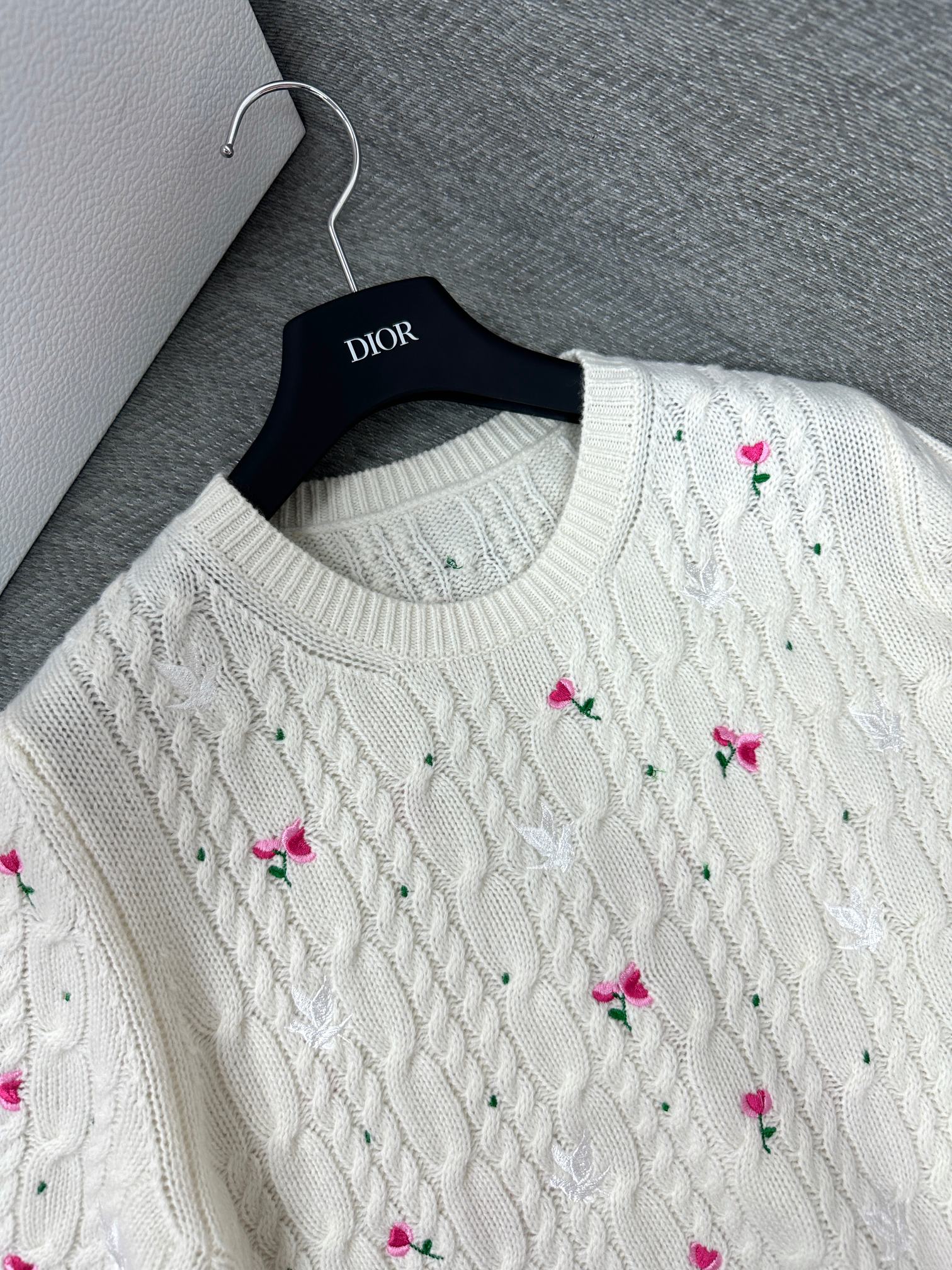 CD Dioramour Short-Sleeved Embroidered Sweater White Wool 349487
