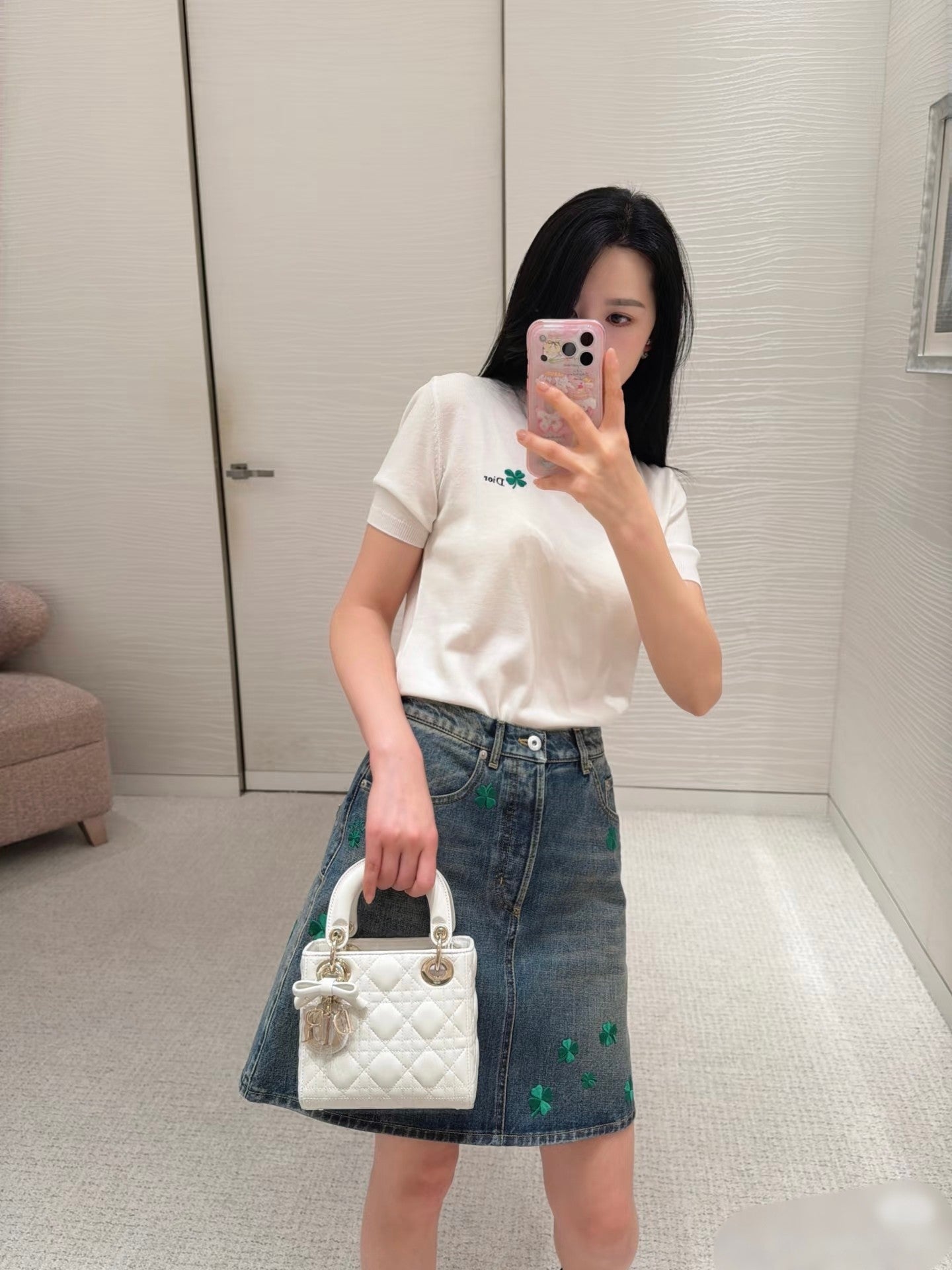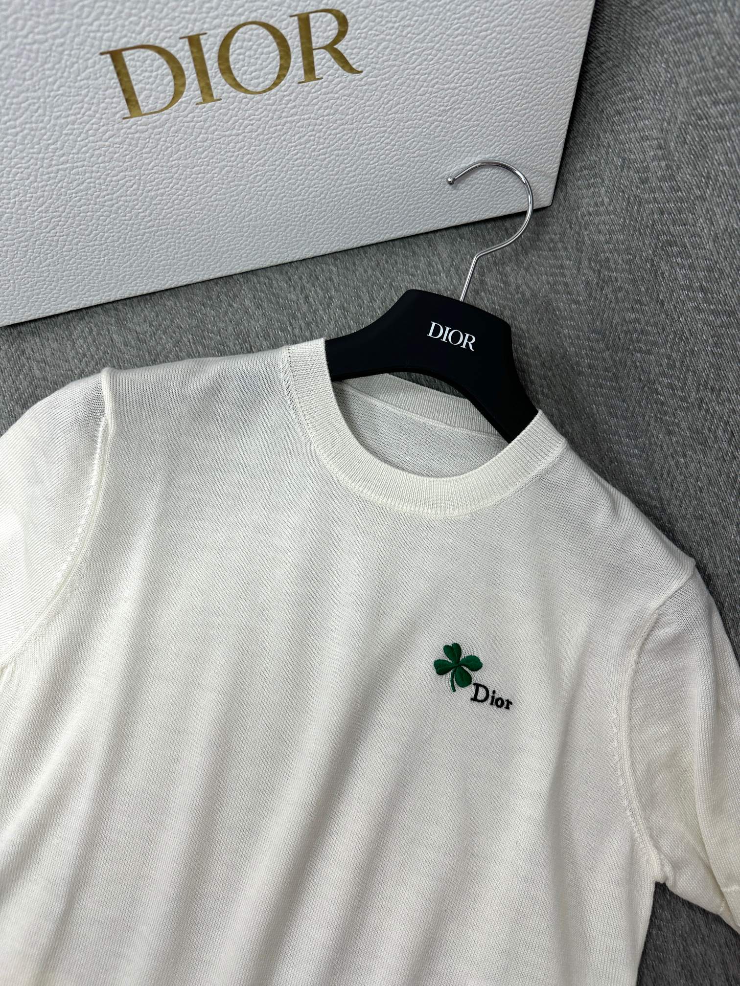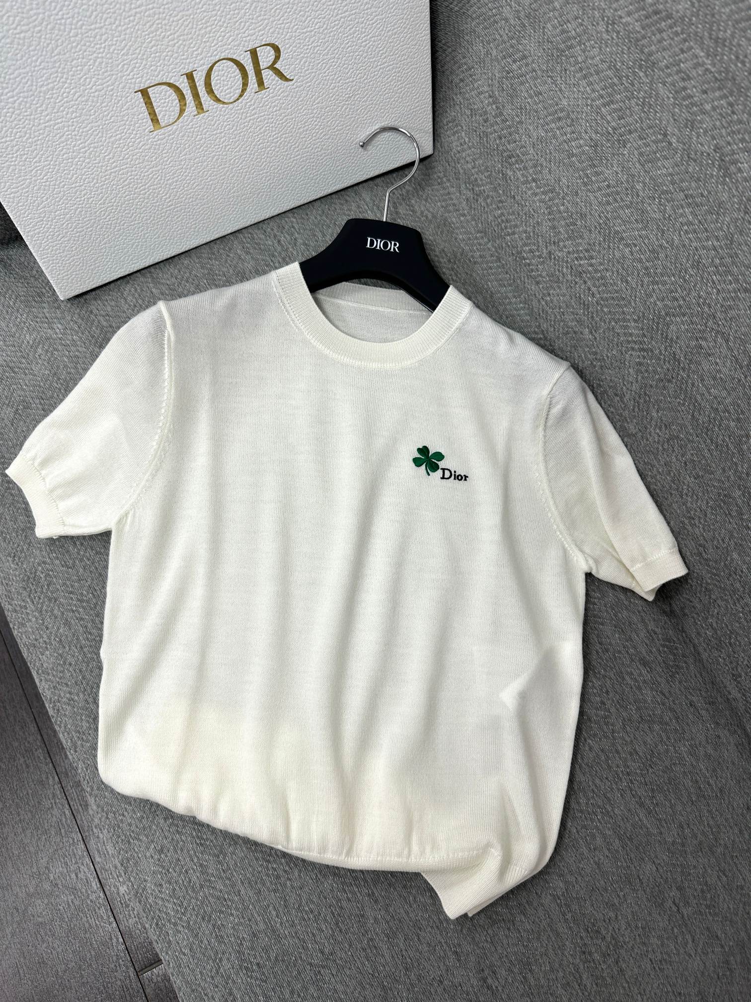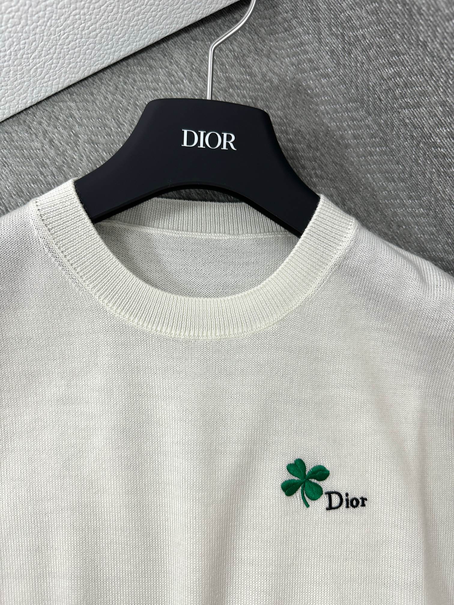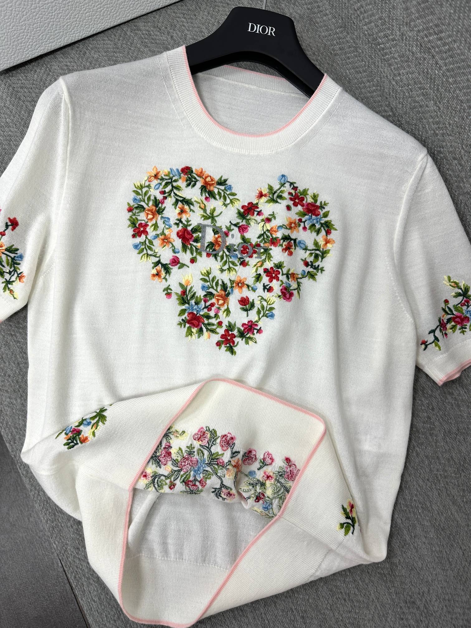 CD Dioramour Short-Sleeved Embroidered Sweater White Wool 349487