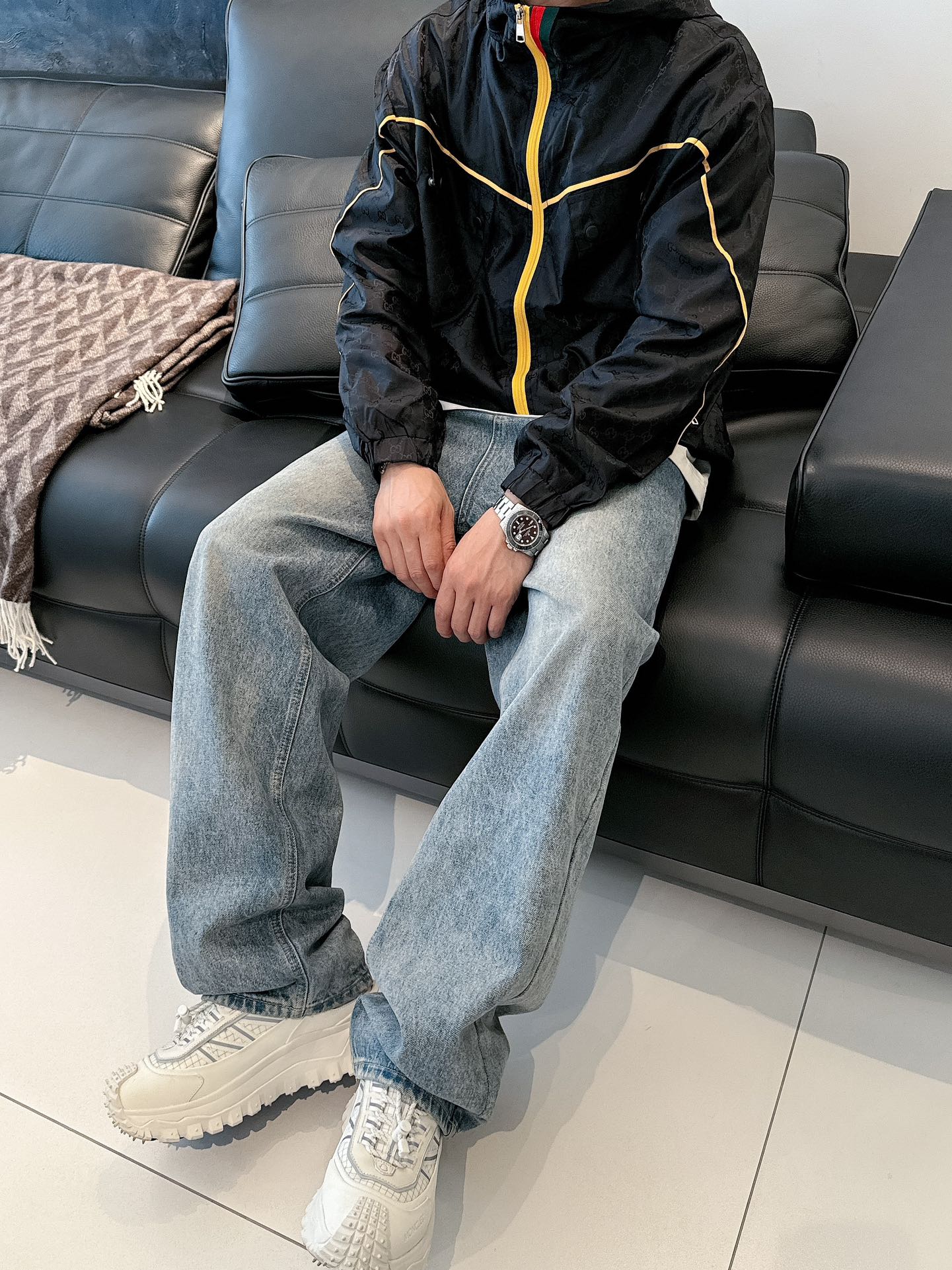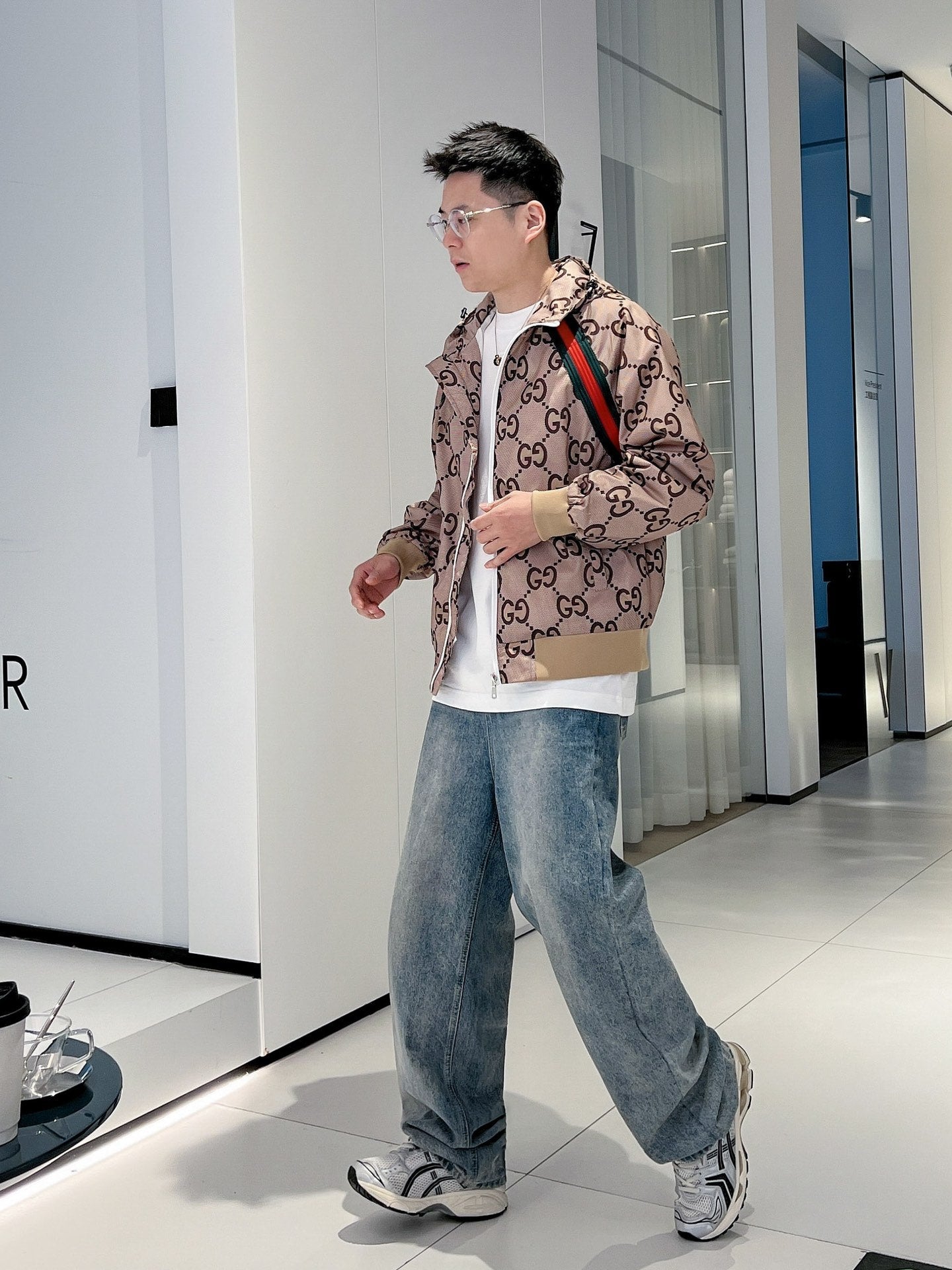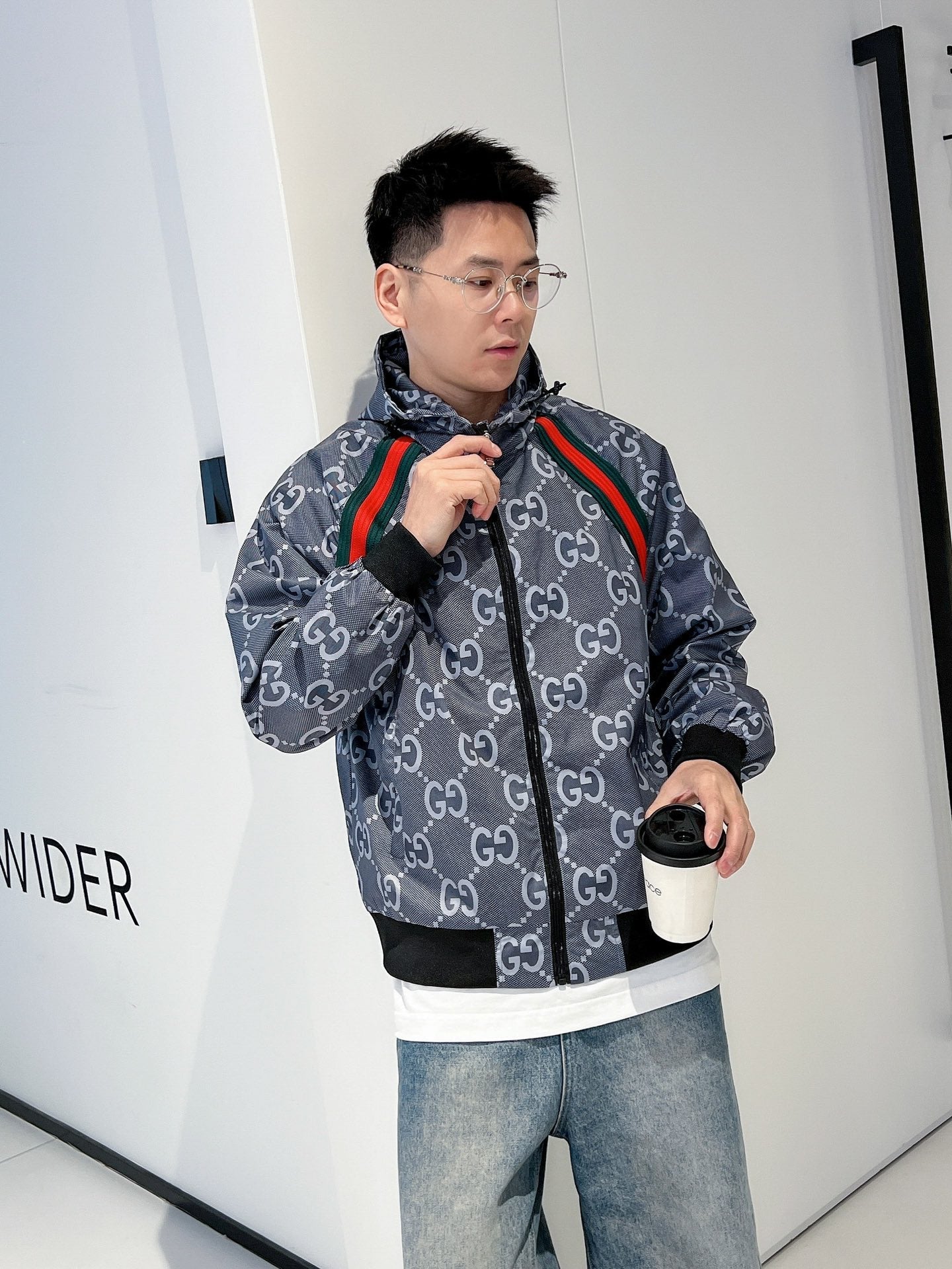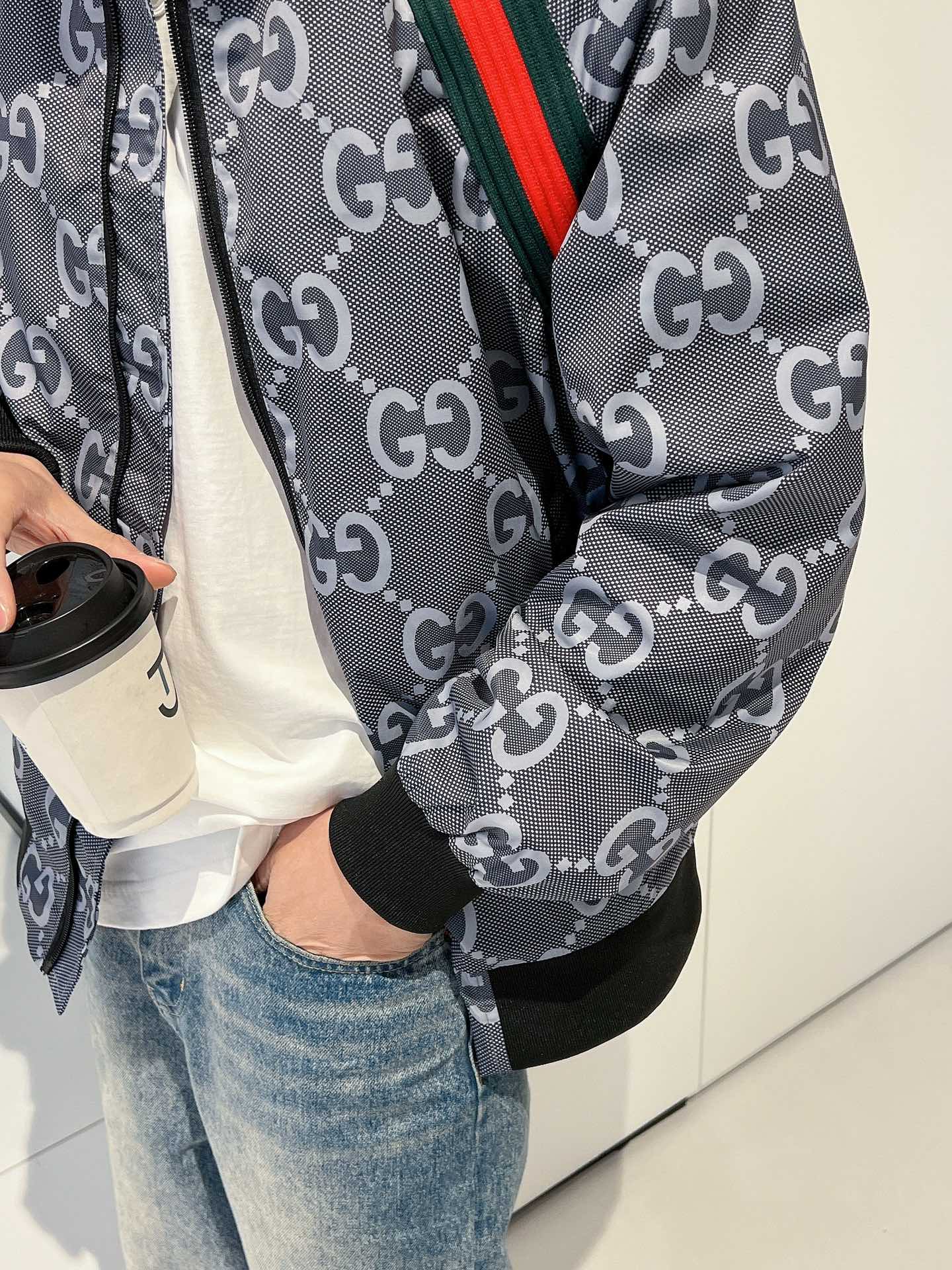 Gucci Men’s Interlocking Zip Jacket Black White Technical Fabric