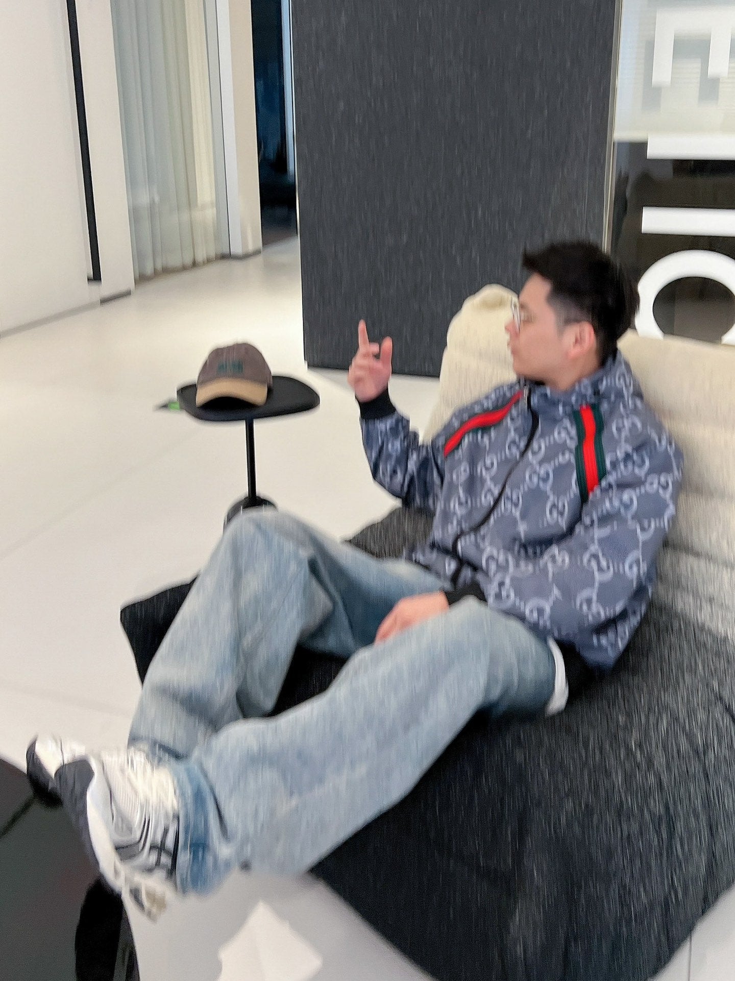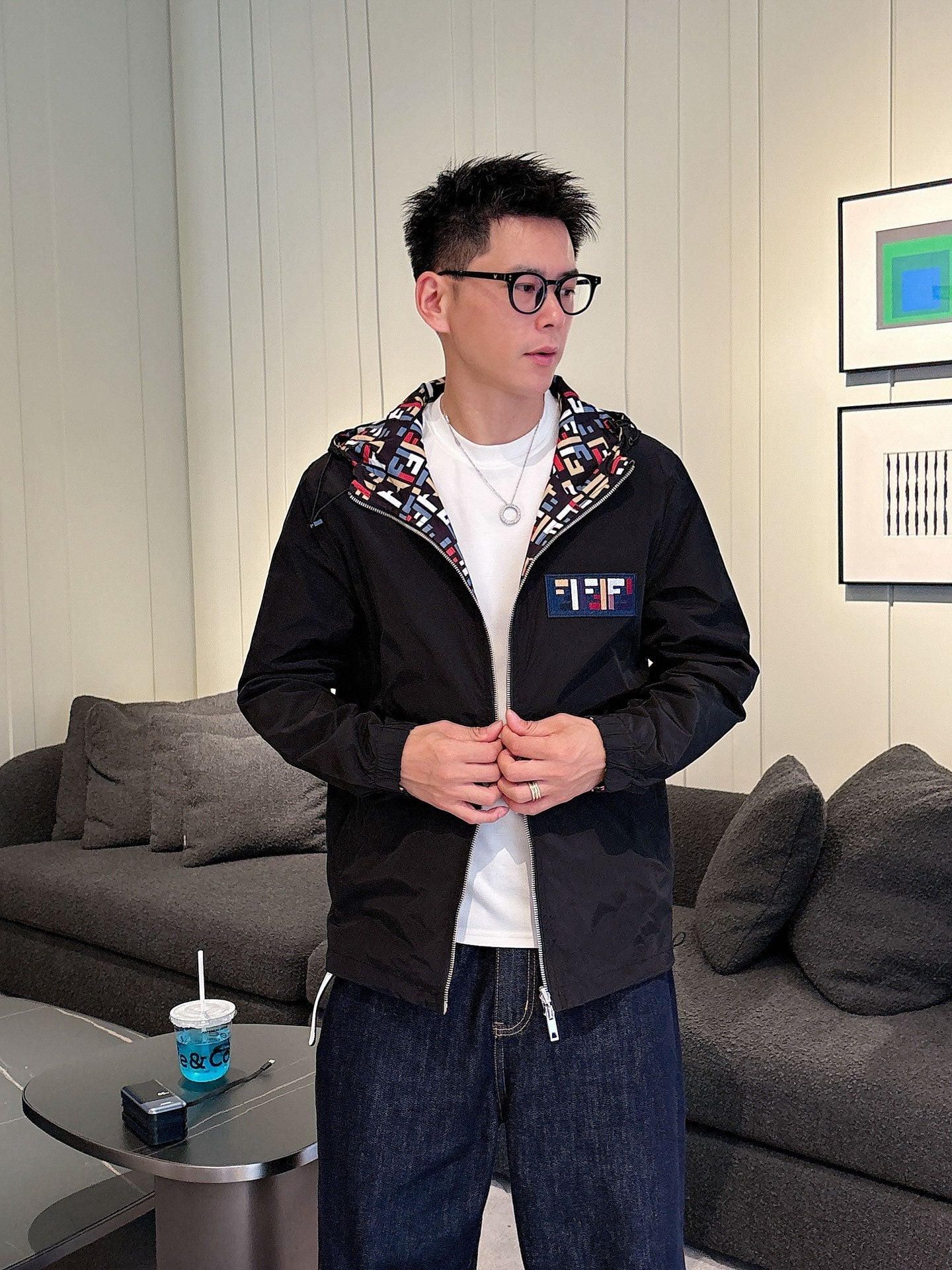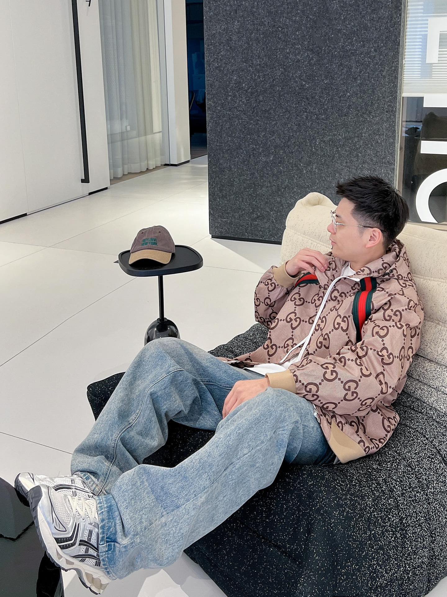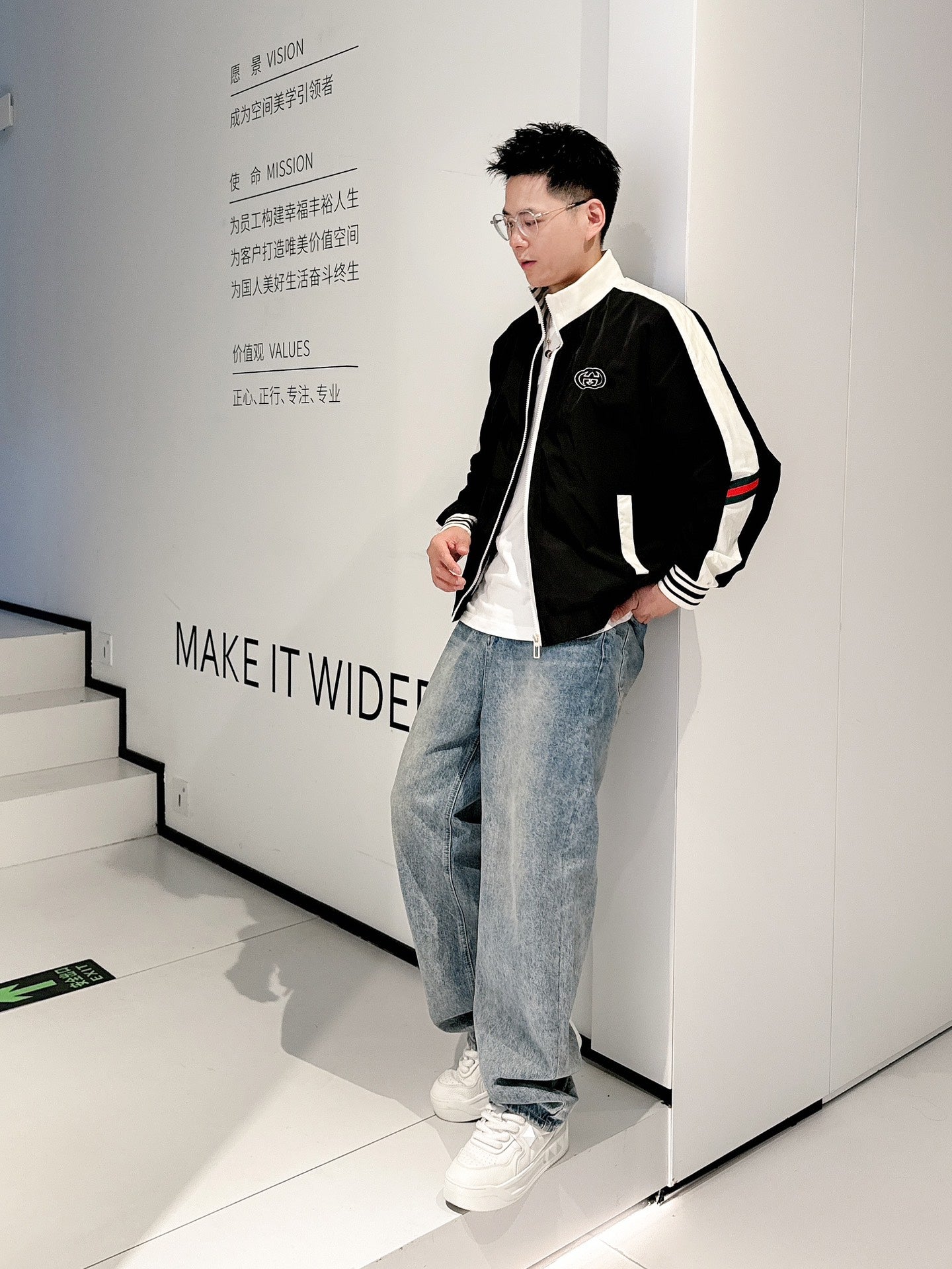 Gucci Men’s Interlocking Zip Jacket Black White Technical Fabric